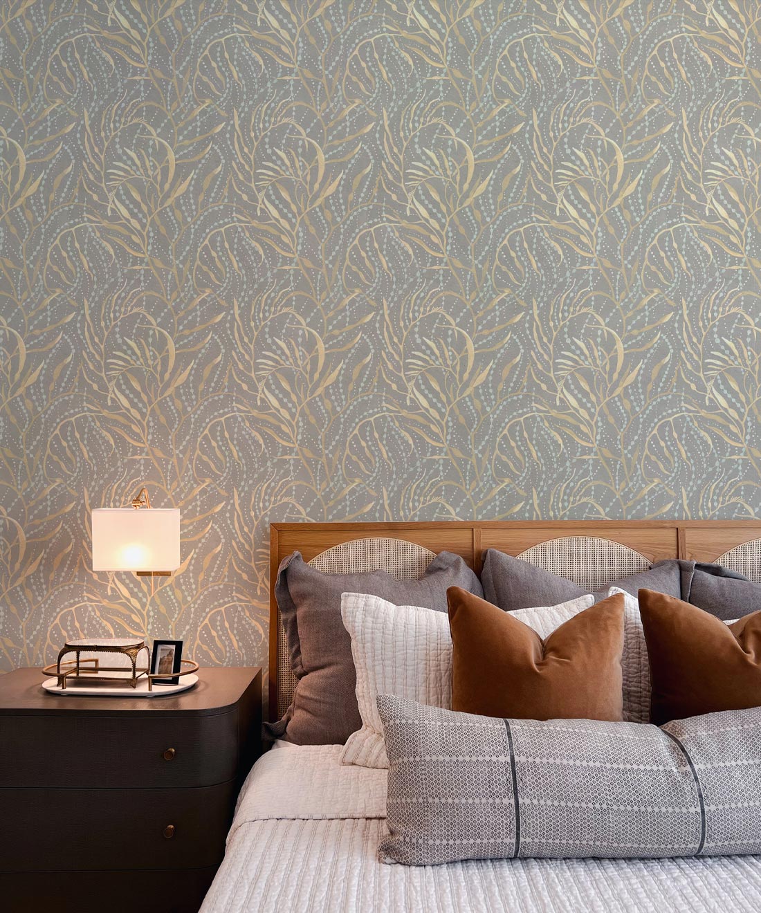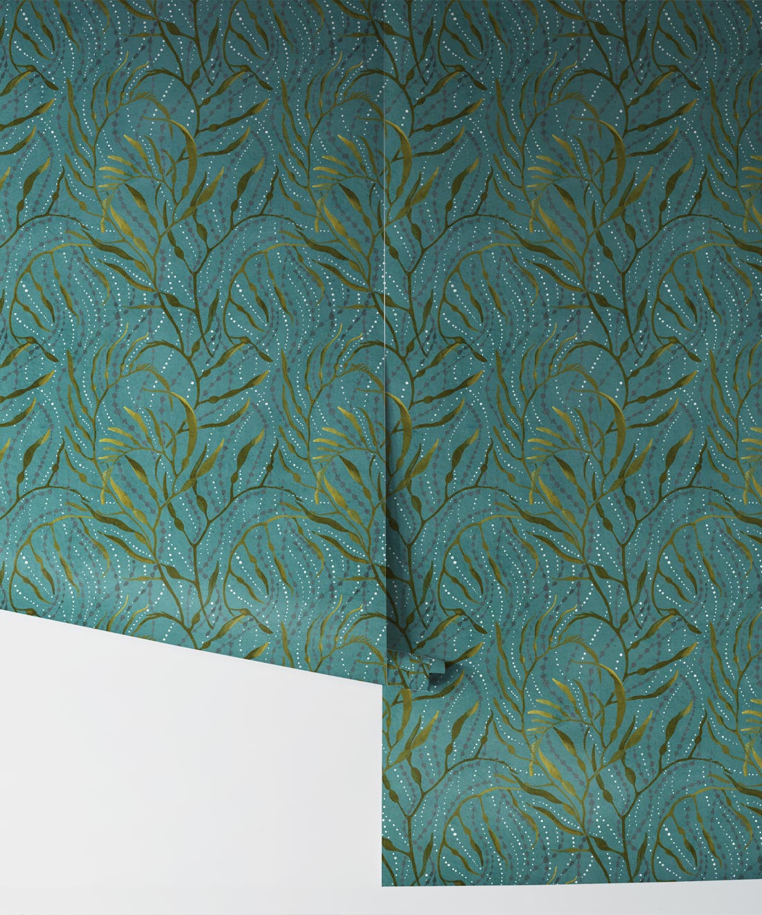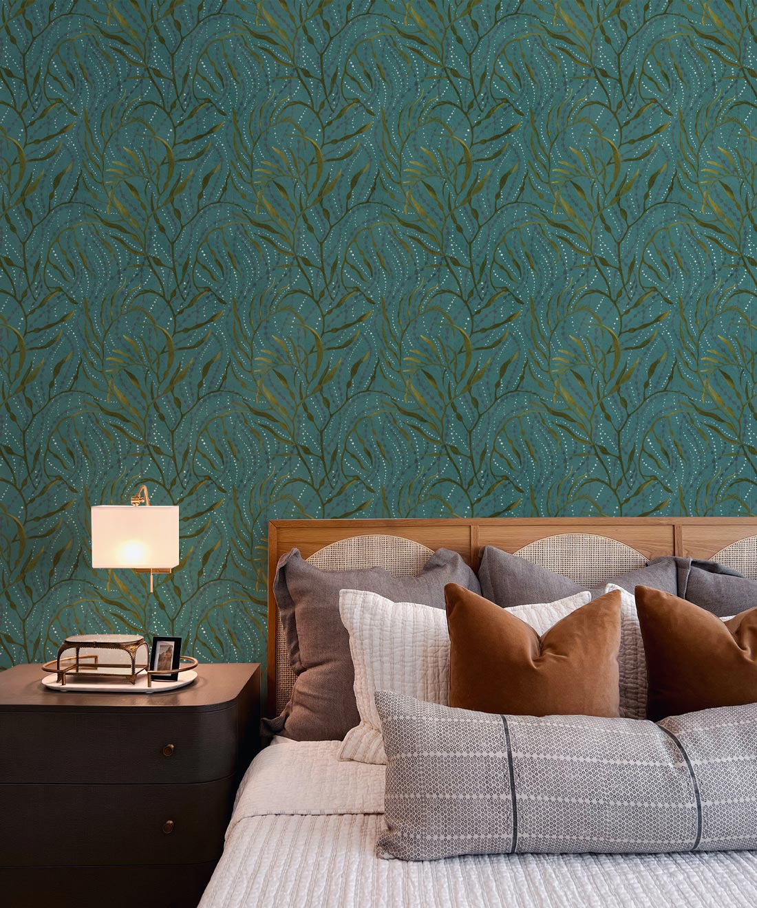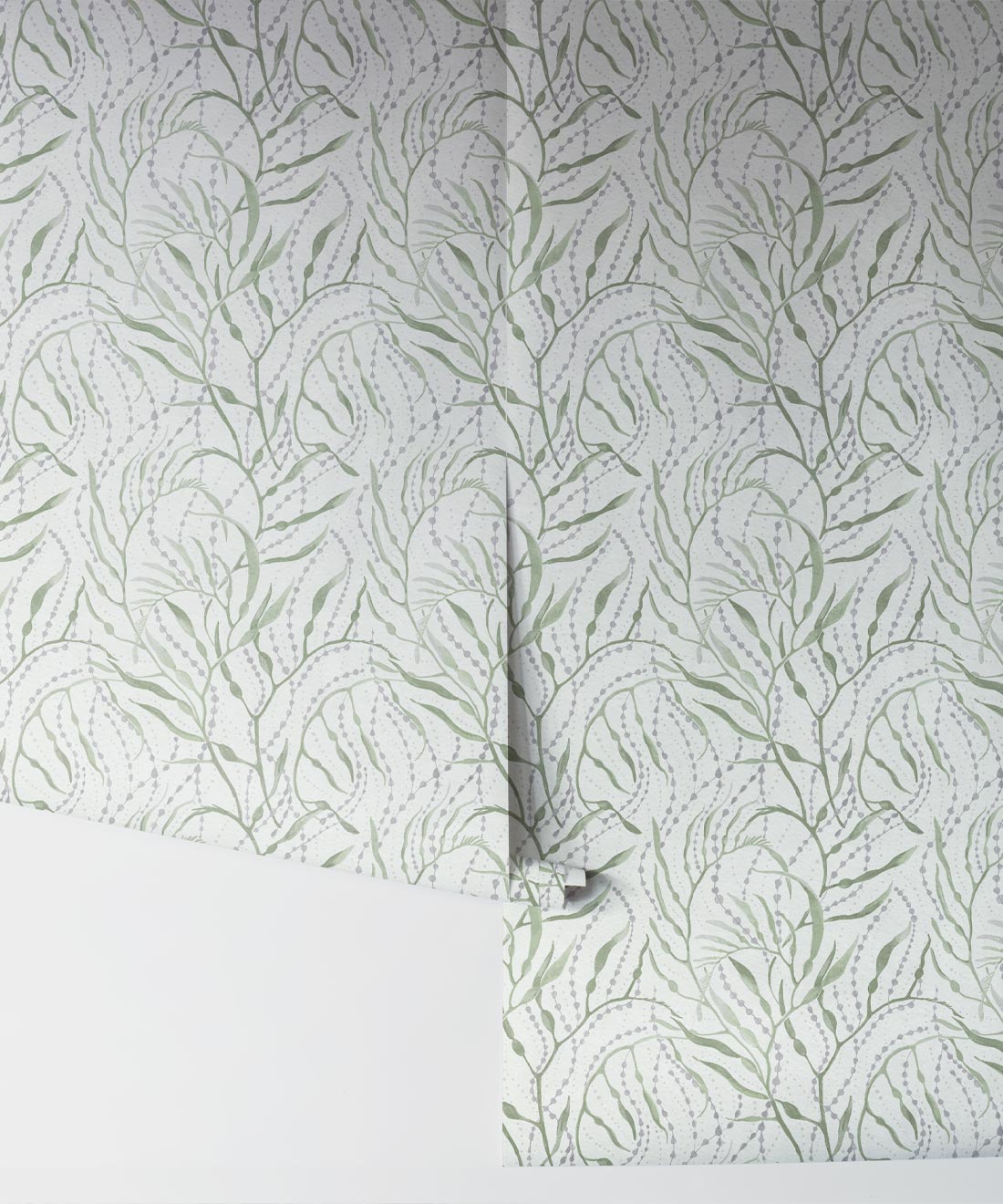 A wonderful name to describe the graceful kelp which grows on the sea bed, Neptune’s Necklace Wallpaper features a design that is constantly flowing. The pattern moves your eyes around its jewel-like shapes. Wonderfully varied in colors, it is both beautiful and functional and works in both small and large settings. It works with neutral home color palettes or certain colors could be drawn from for coordinating fabrics and home decor. It is perfect for bathroom, laundry nook or an adventurous bedroom.
