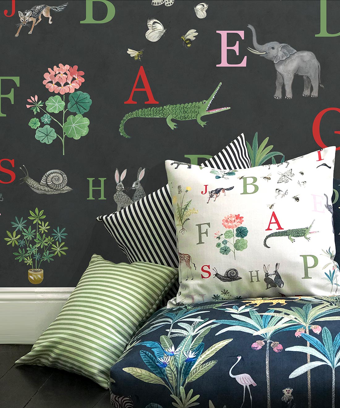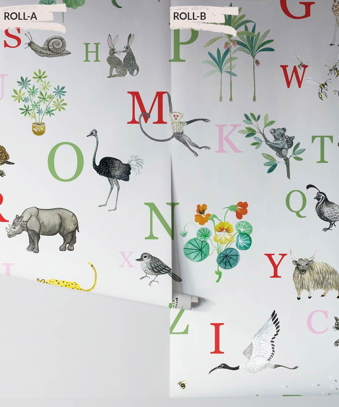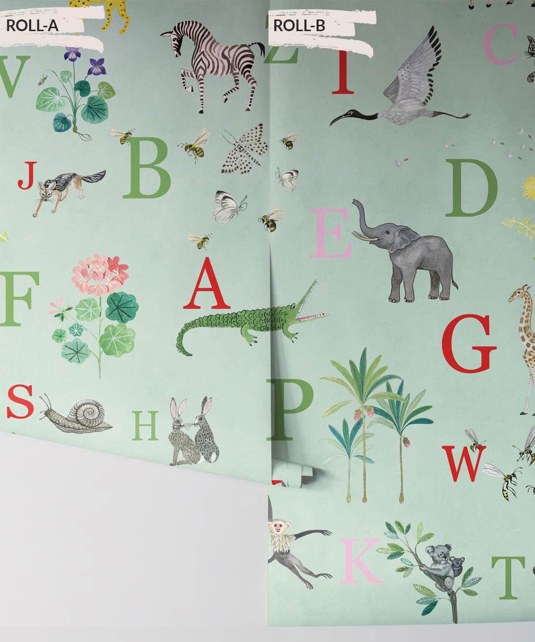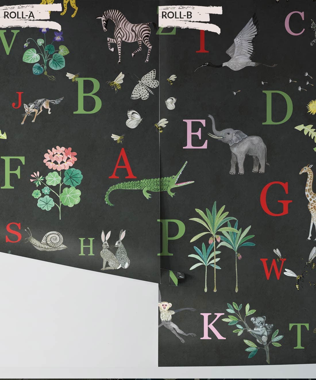 This adorable children’s alphabet wallpaper design will make your little bambino’s imaginations take flight. Kids love to point out all the different animals and learn their names and now you can help them with this stunning children’s decor item. This lovely wallpaper features 26 hand-painted illustrations. An educational wallpaper that is next level.