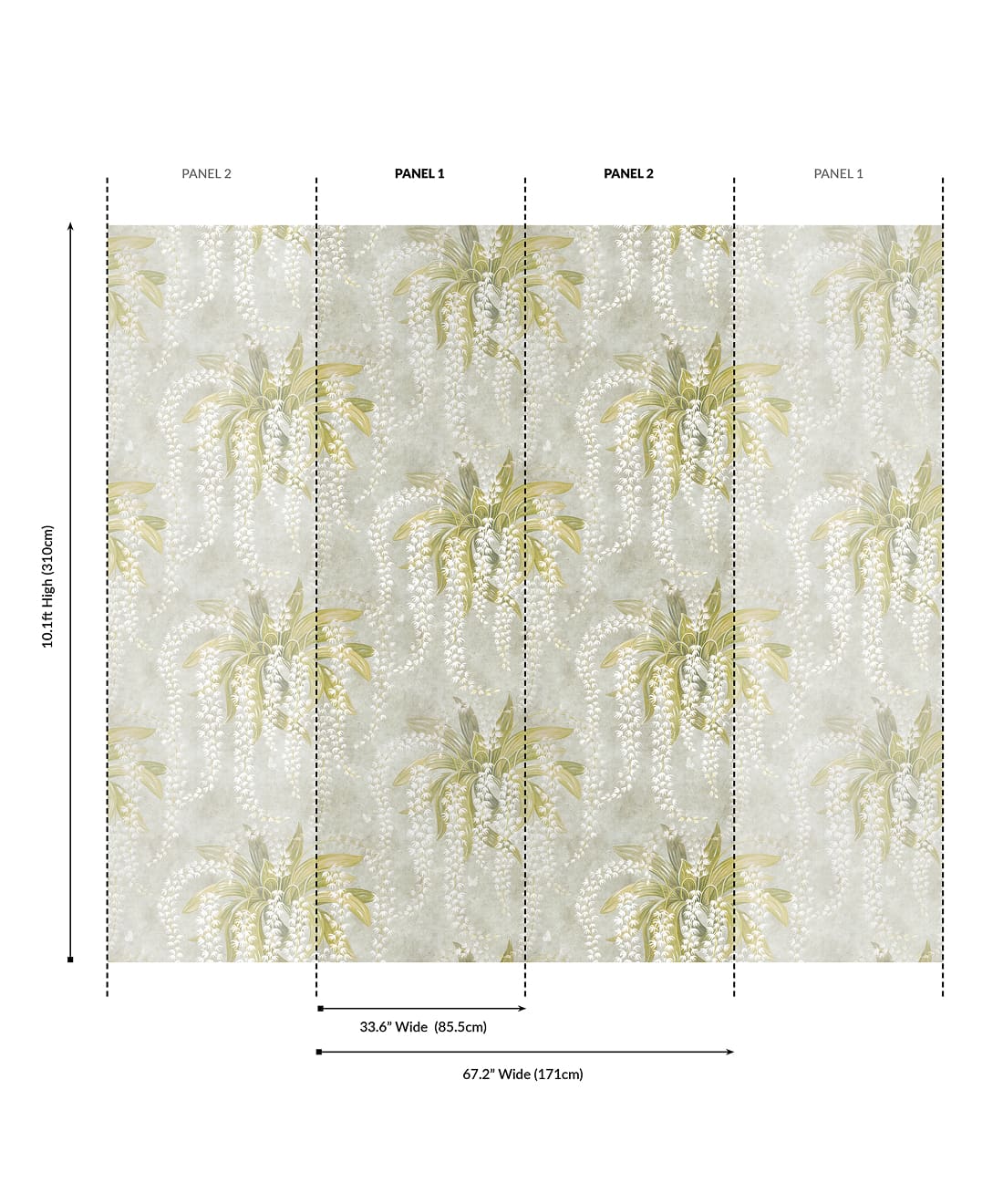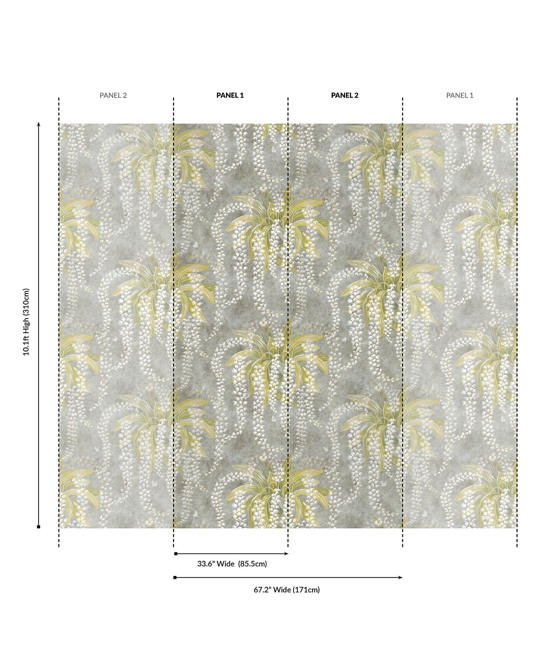 Designed as panels that are 33.6″ (85.5cm) wide x 10.1ft (310cm) high.