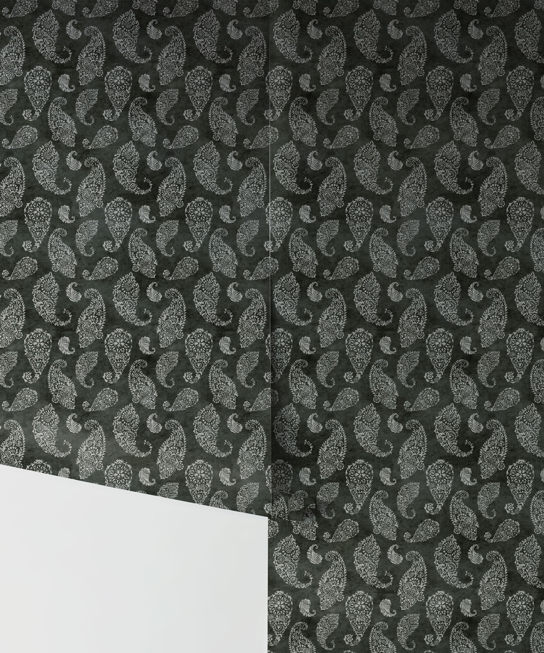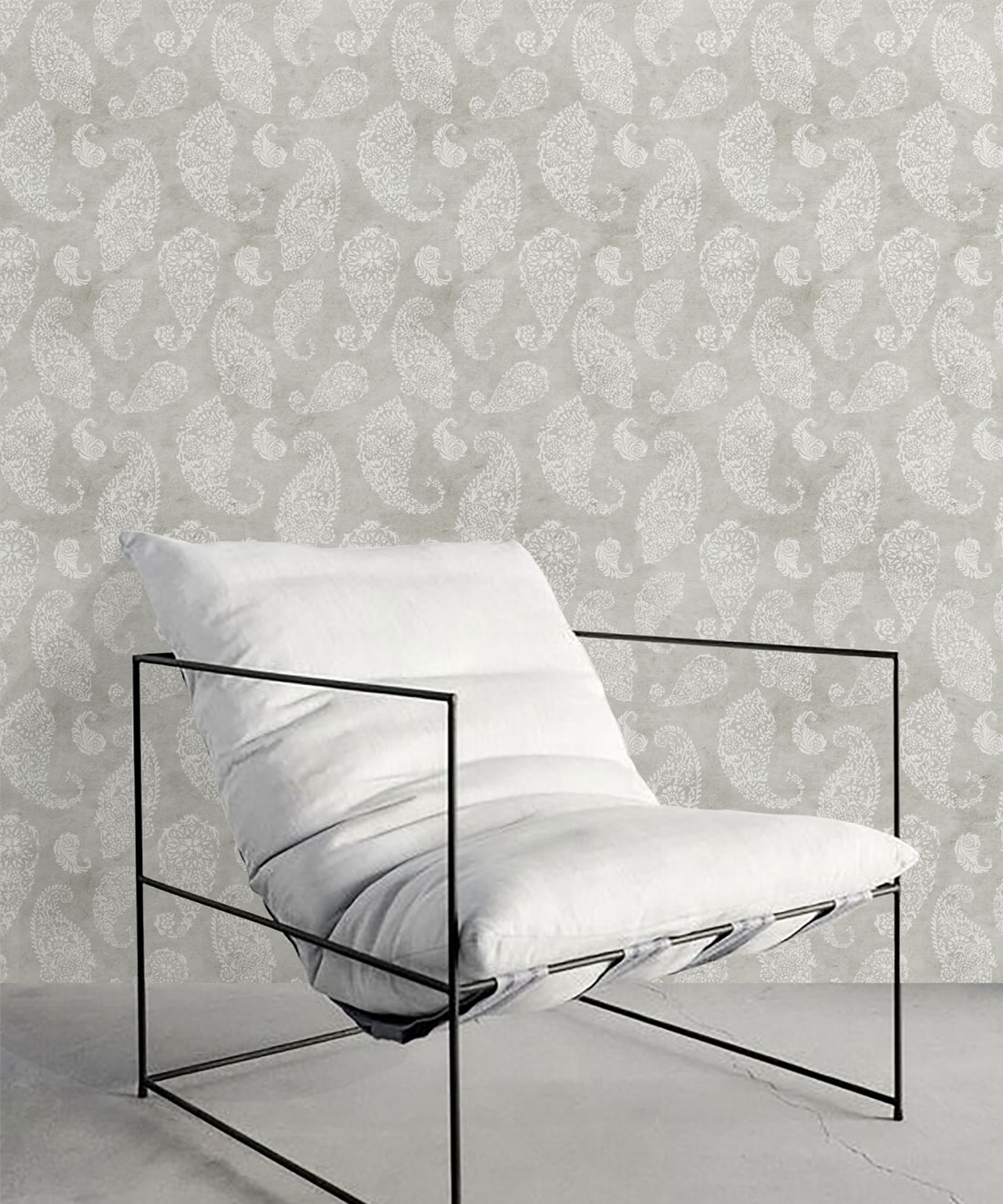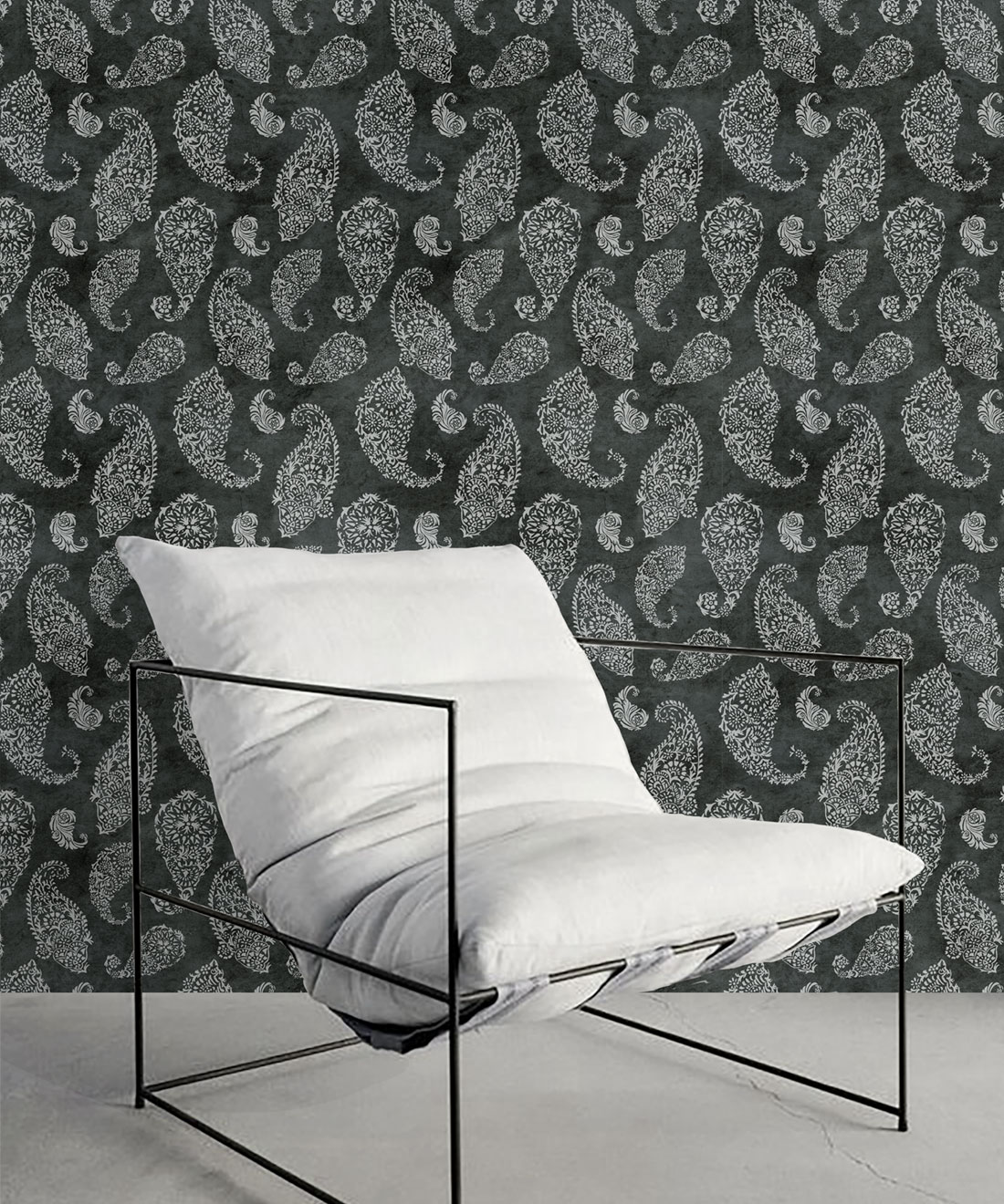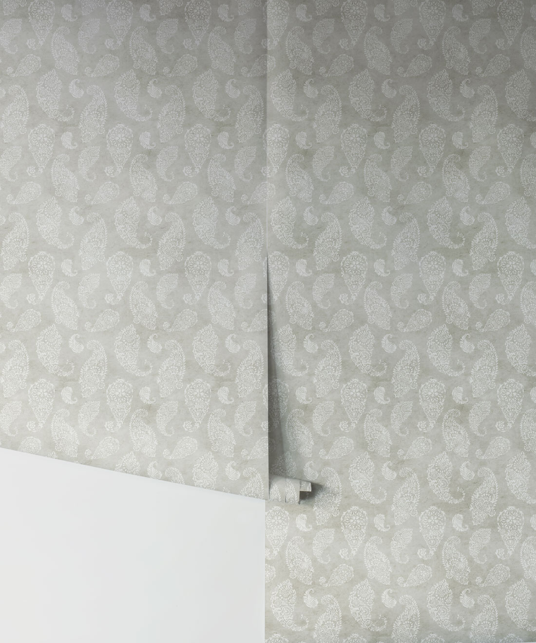 This rustic paisley wallpaper was inspired by ancient Indian woodblocks that were all hand carved. Bethany hand painted this design to create that old tactile effect, then to create an even more rustic look layered it over a stone textured background. This wallpaper looks beautiful in any style of interior, whether it be classic or modern.