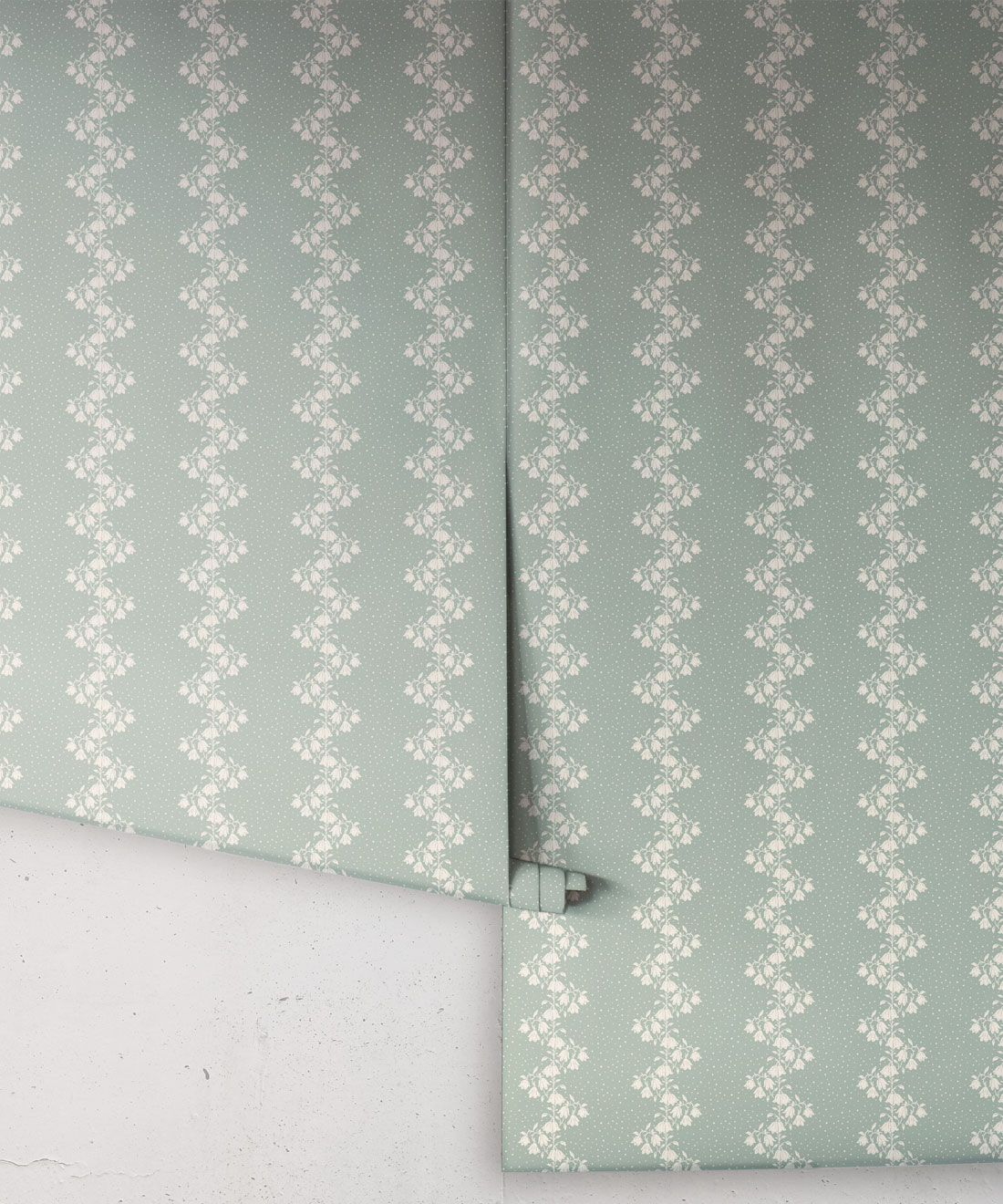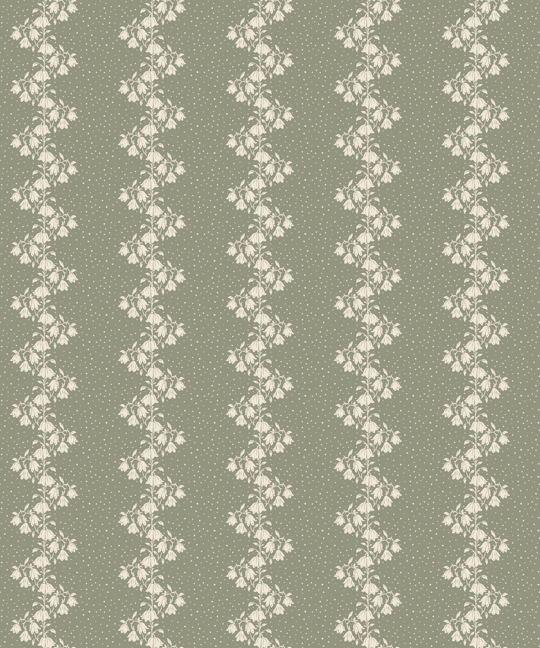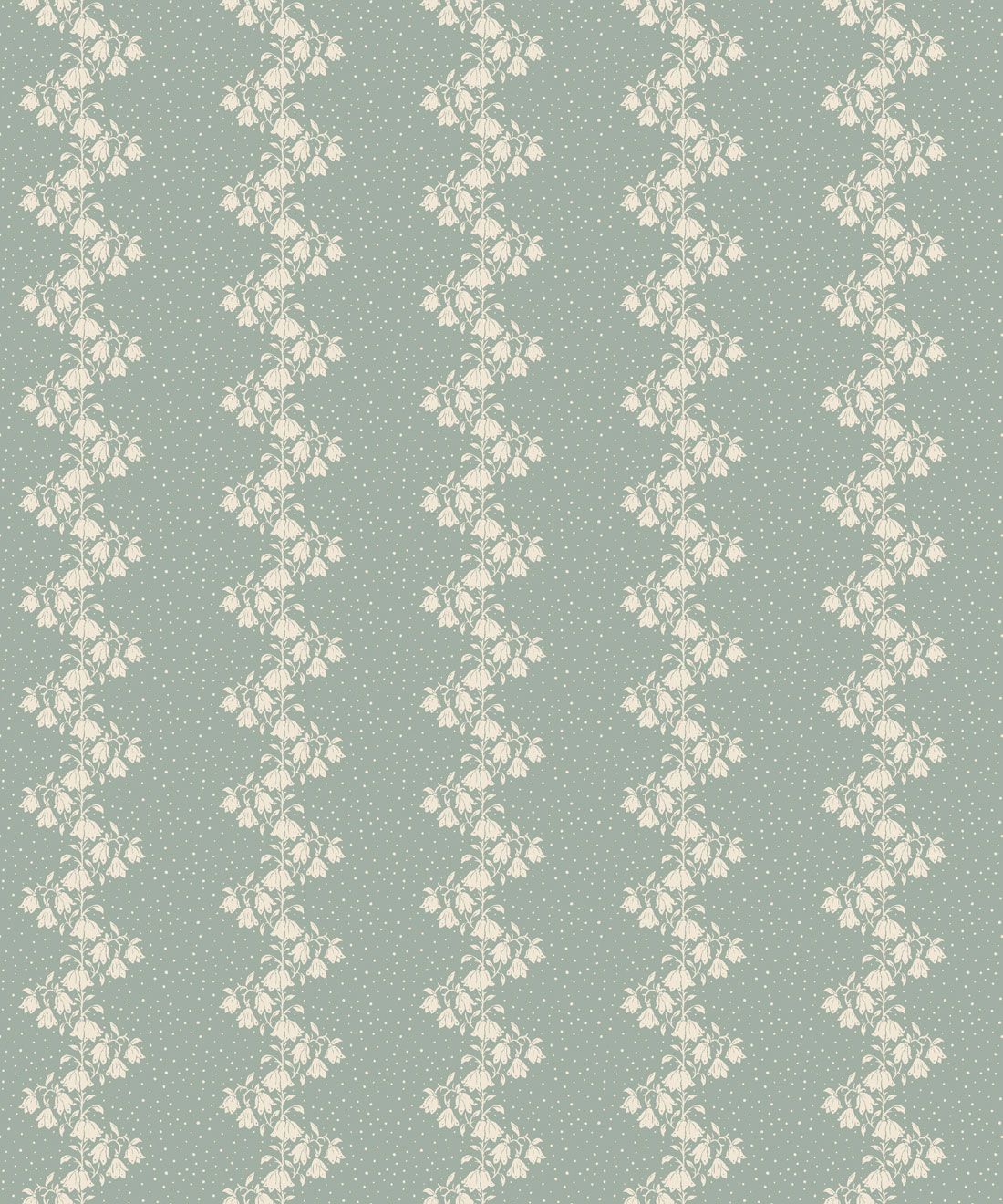 Pearl Wallpaper features petite, hand-drawn snowdrop florals with a timeless charm. Its subtle repeat creates a gentle chevron effect, adding soft movement to any space.
