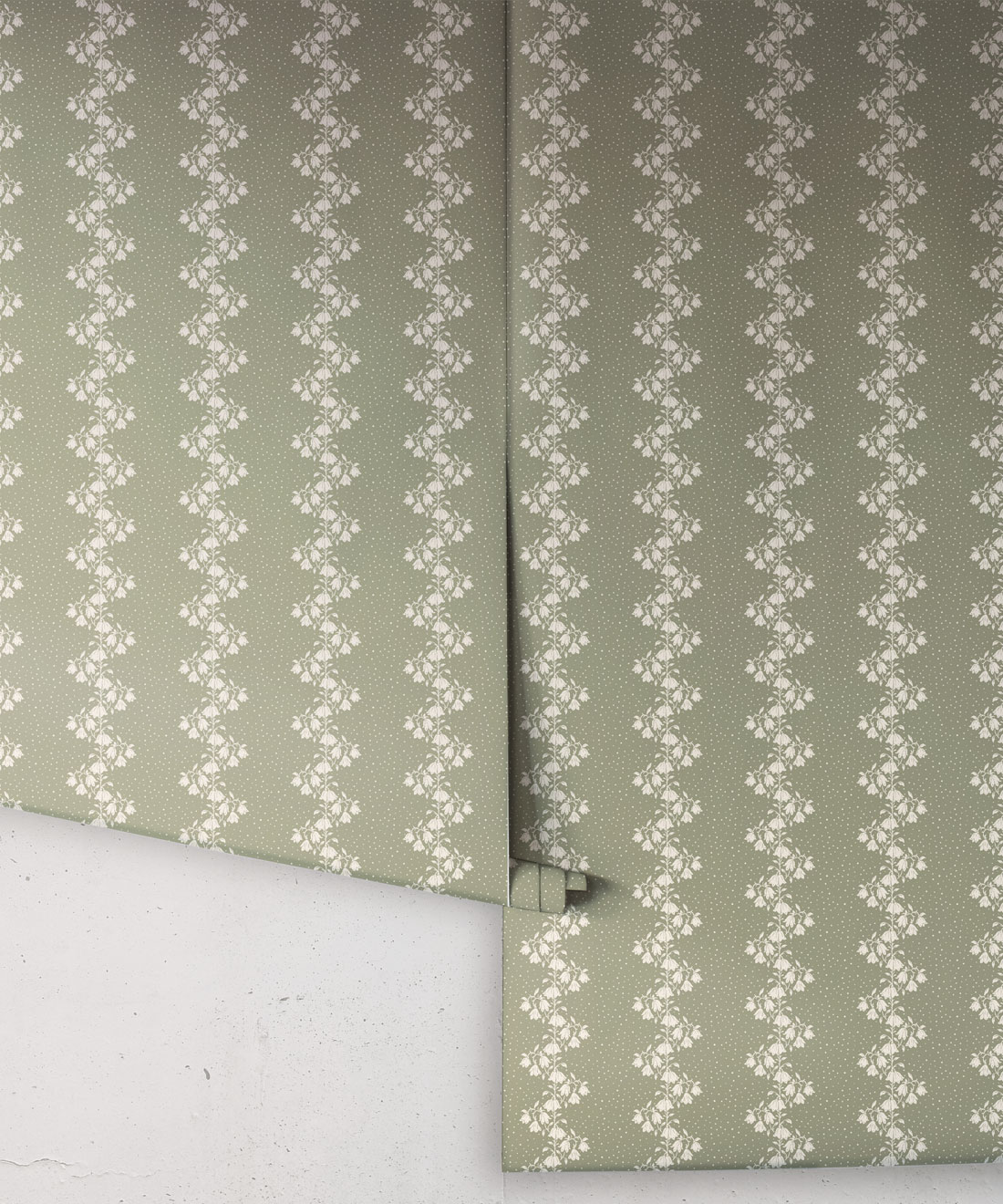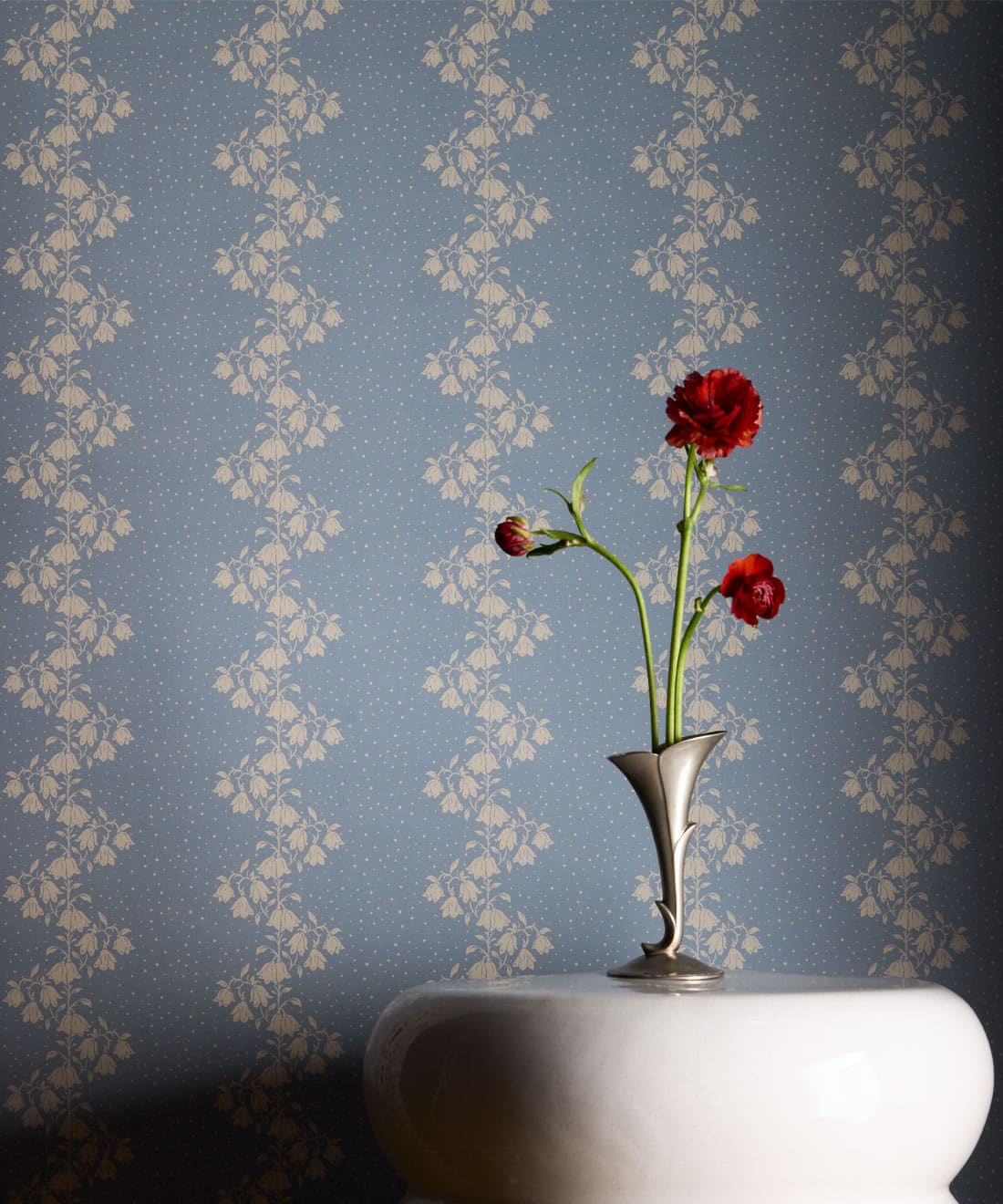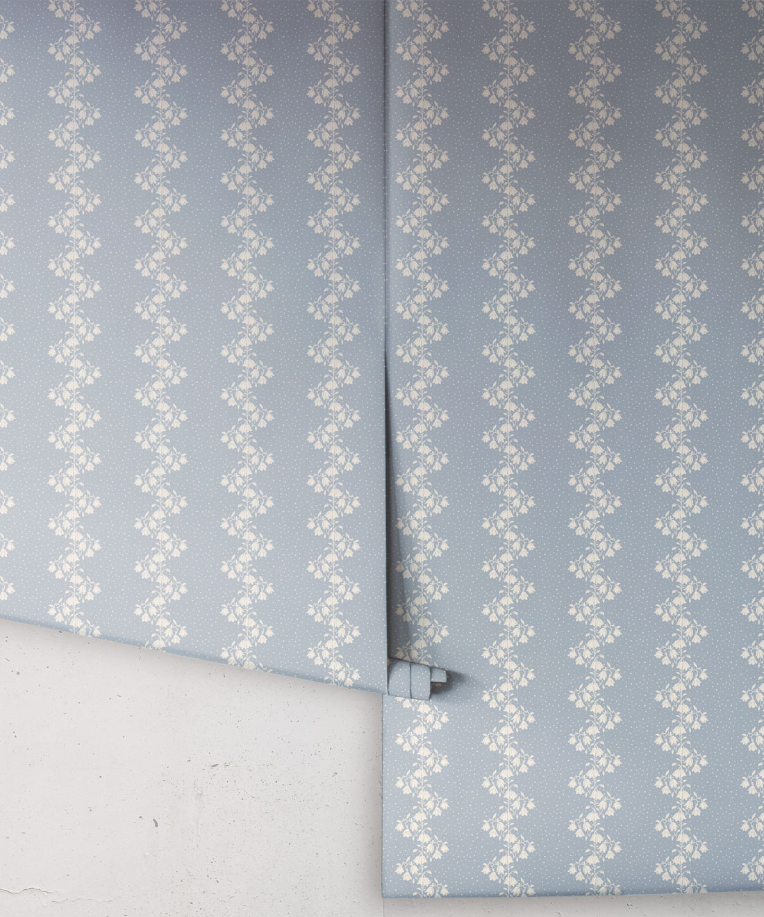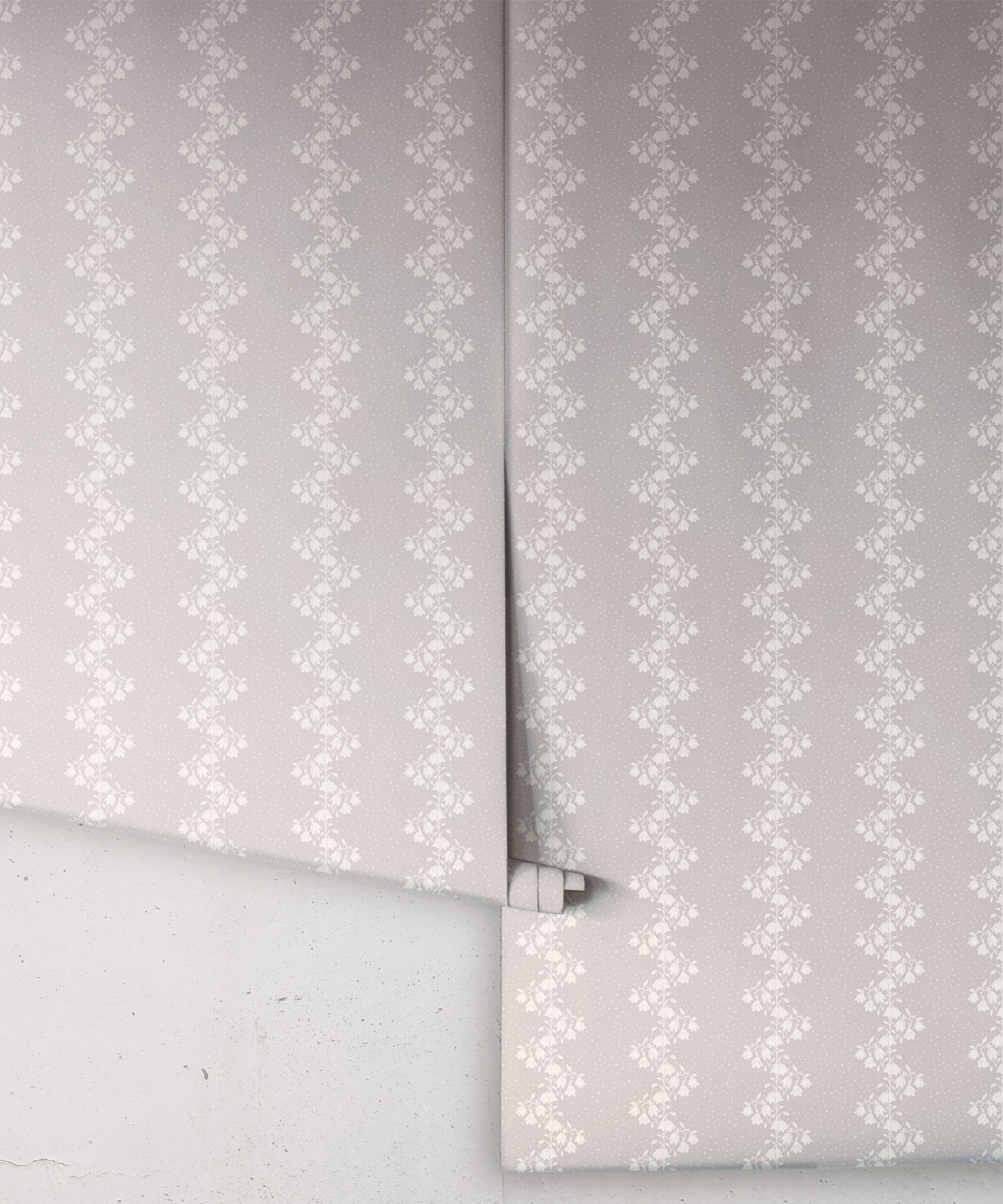 Pearl Wallpaper features petite, hand-drawn snowdrop florals with a timeless charm. Its subtle repeat creates a gentle chevron effect, adding soft movement to any space.