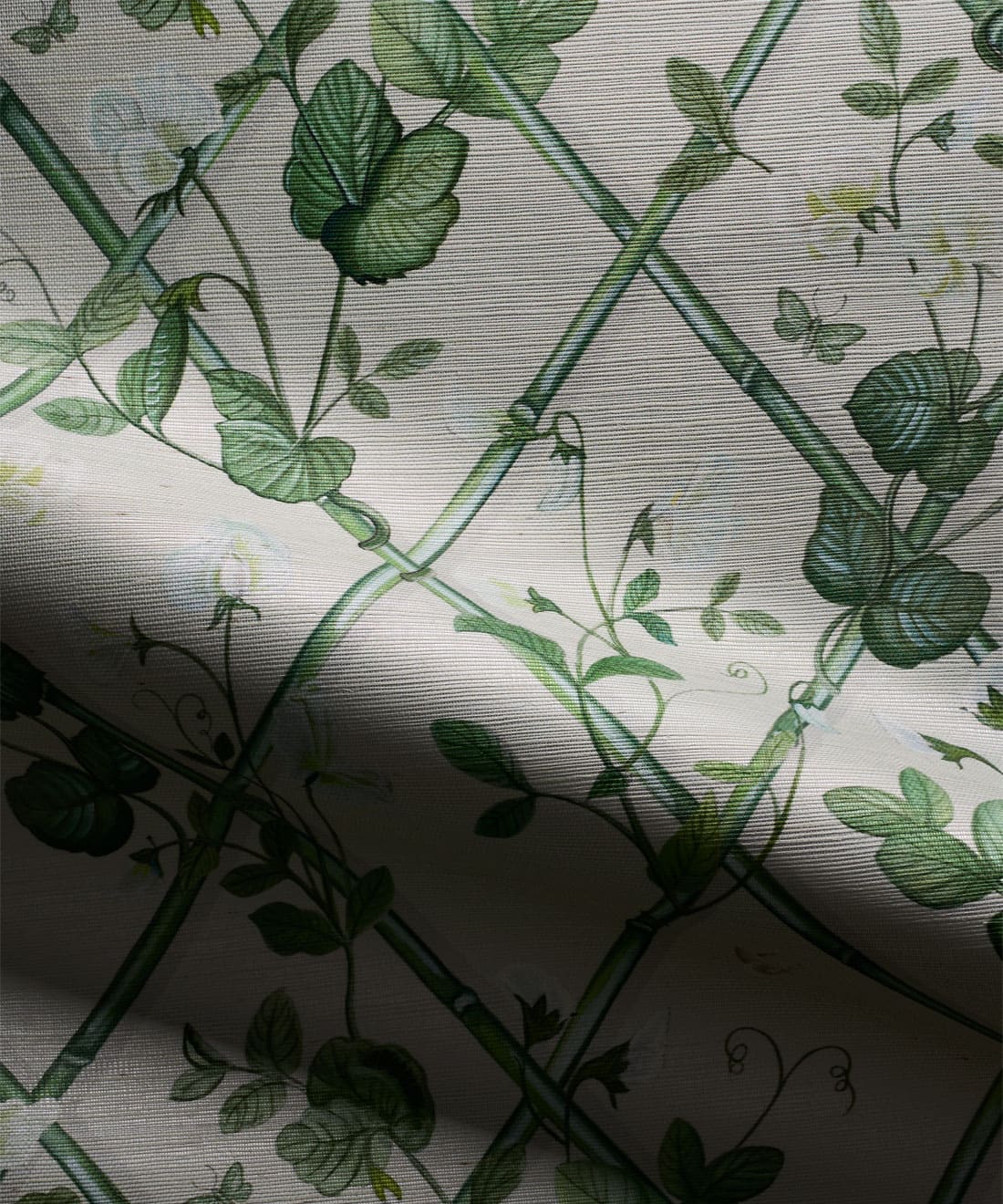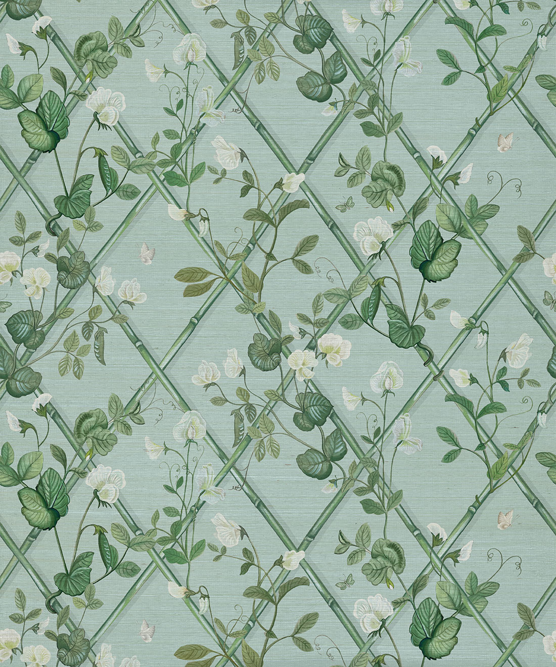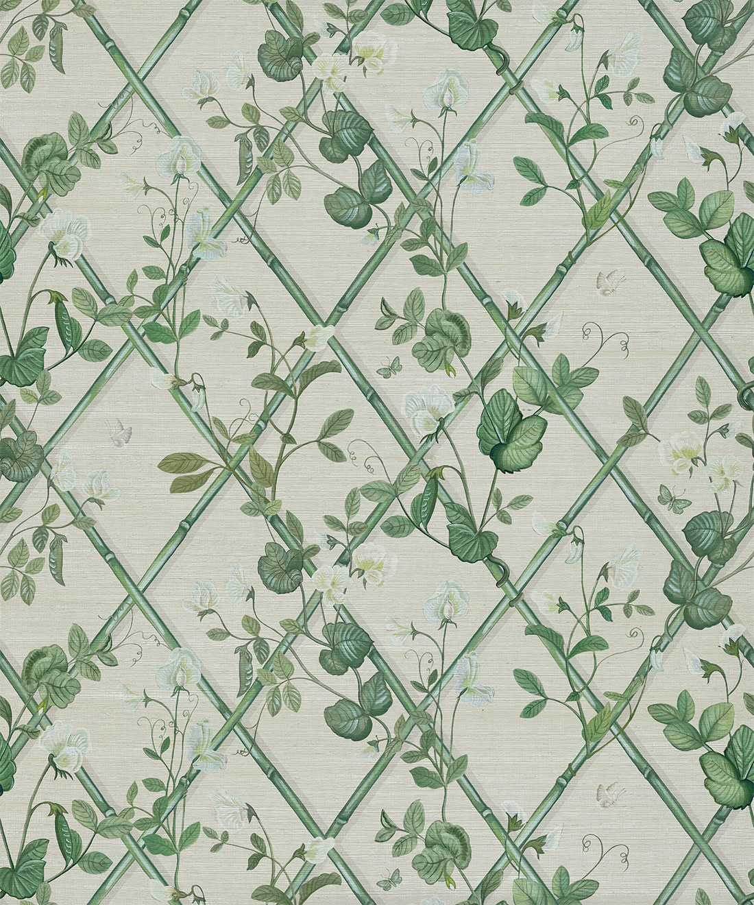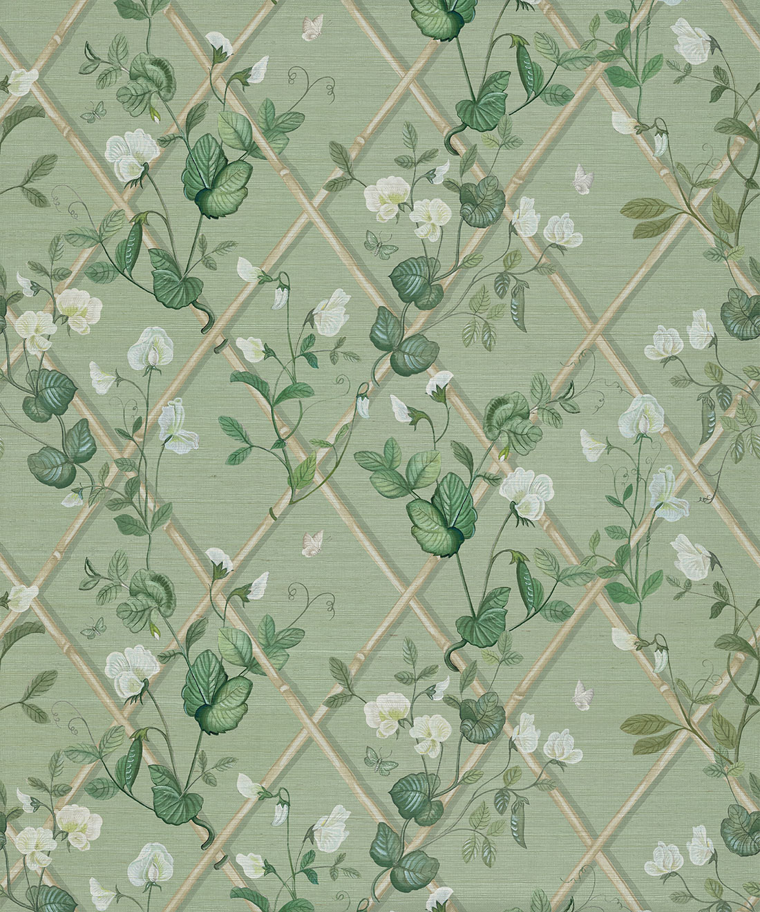 Petite Climbing Sweet Pea by Maine House Interiors draws on the delicate elegance of sweet pea vines. Hand-painted tendrils gently weave up a bamboo trellis, capturing the softness and romance of this timeless flower. With colorways ranging from gentle pastels to deep, moody tones, this wallpaper offers flexibility and refinement. It creates an inviting, graceful atmosphere for bedrooms, reading spaces, or any area that deserves a touch of natural charm.