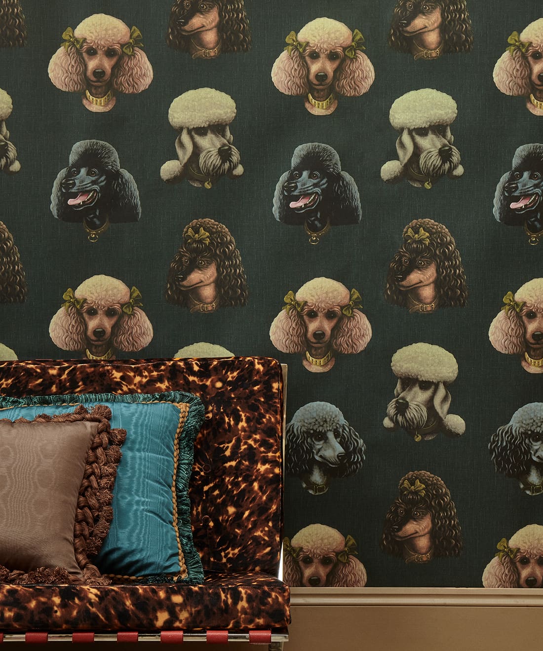 Say hello to five fabulous faces including brand mascot Brian and his equally charming friends. Painted by renowned artist Keren Luchtenstein, Poodle Parlour turns fabric into pure joy. Perfect for statement upholstery playful cushions or anywhere that deserves a little personality and humour.