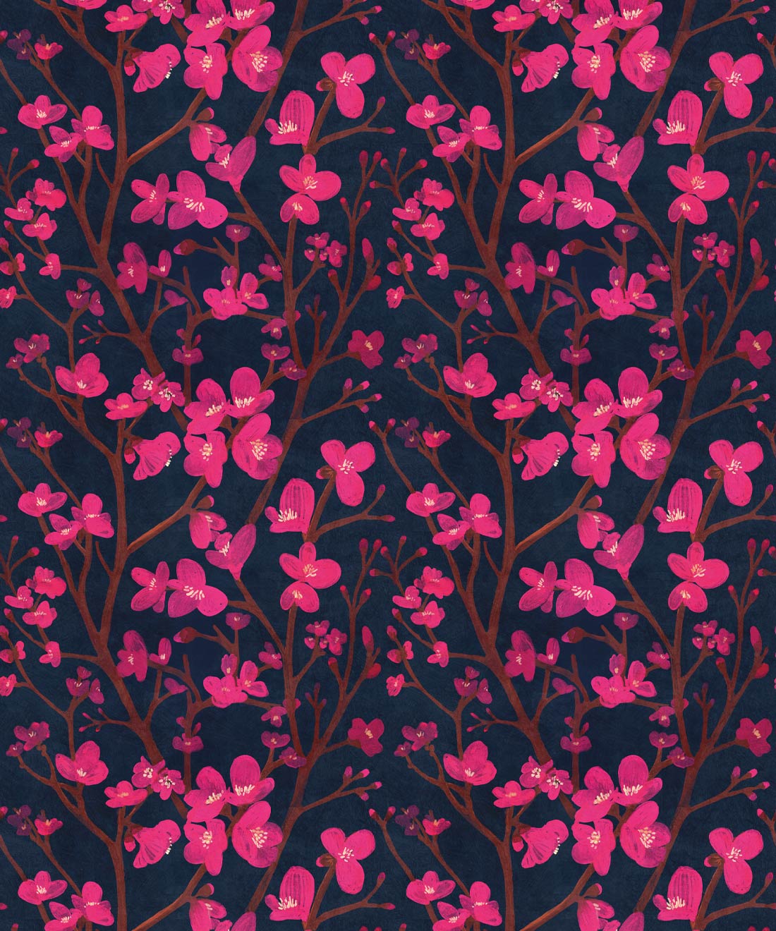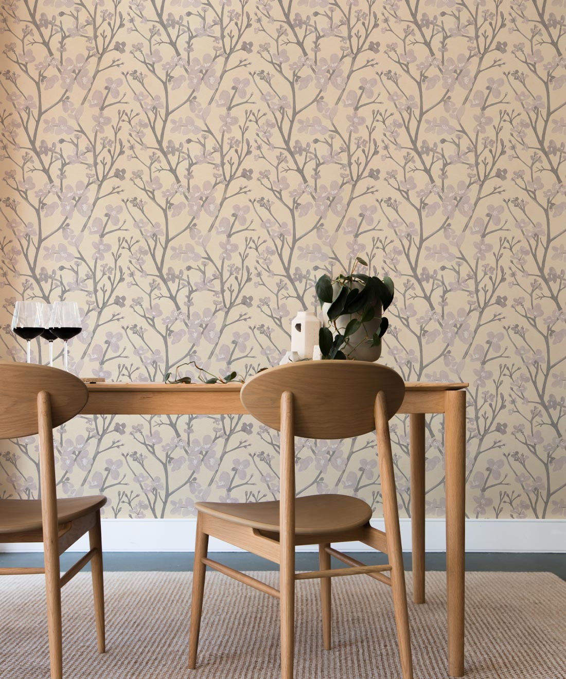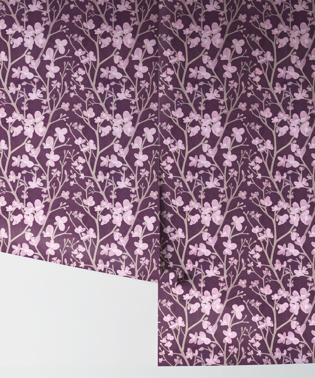 Quince is a floral wallpaper inspired by flowering quince, which is a plant made up of mostly flowers and branches. It symbolizes protection, love and happiness. Offered in multiple color ways, you can choose between bright statement colors and subtle accents. The petals are somewhat abstract and transparent with a textured background. It works well on its own or paired with other patterns from Katie O’Shea.