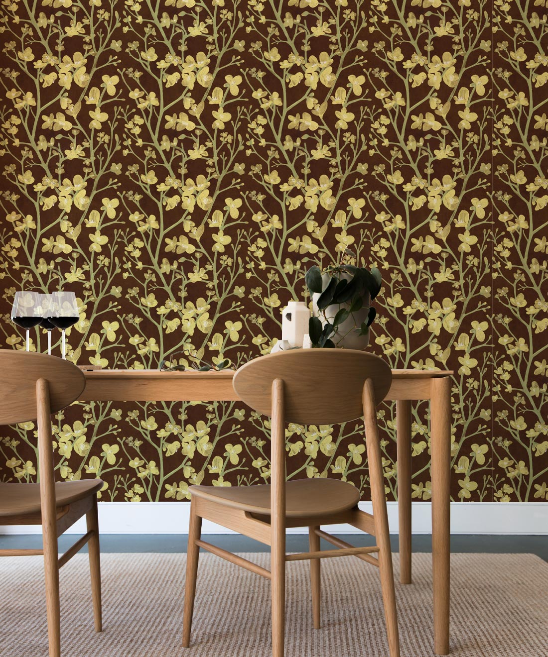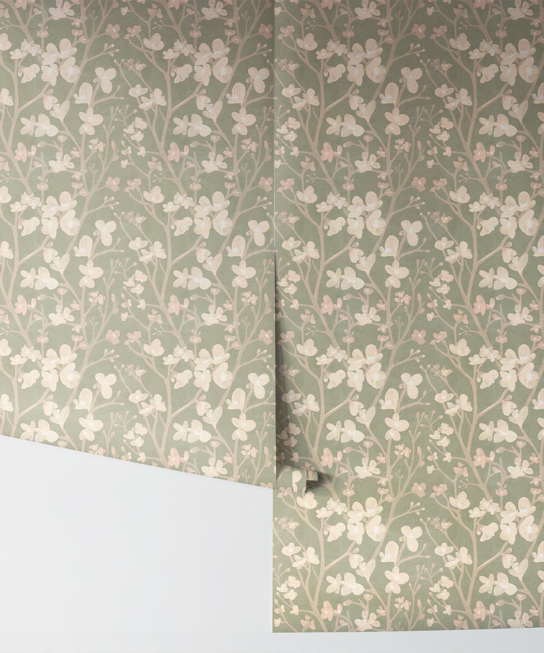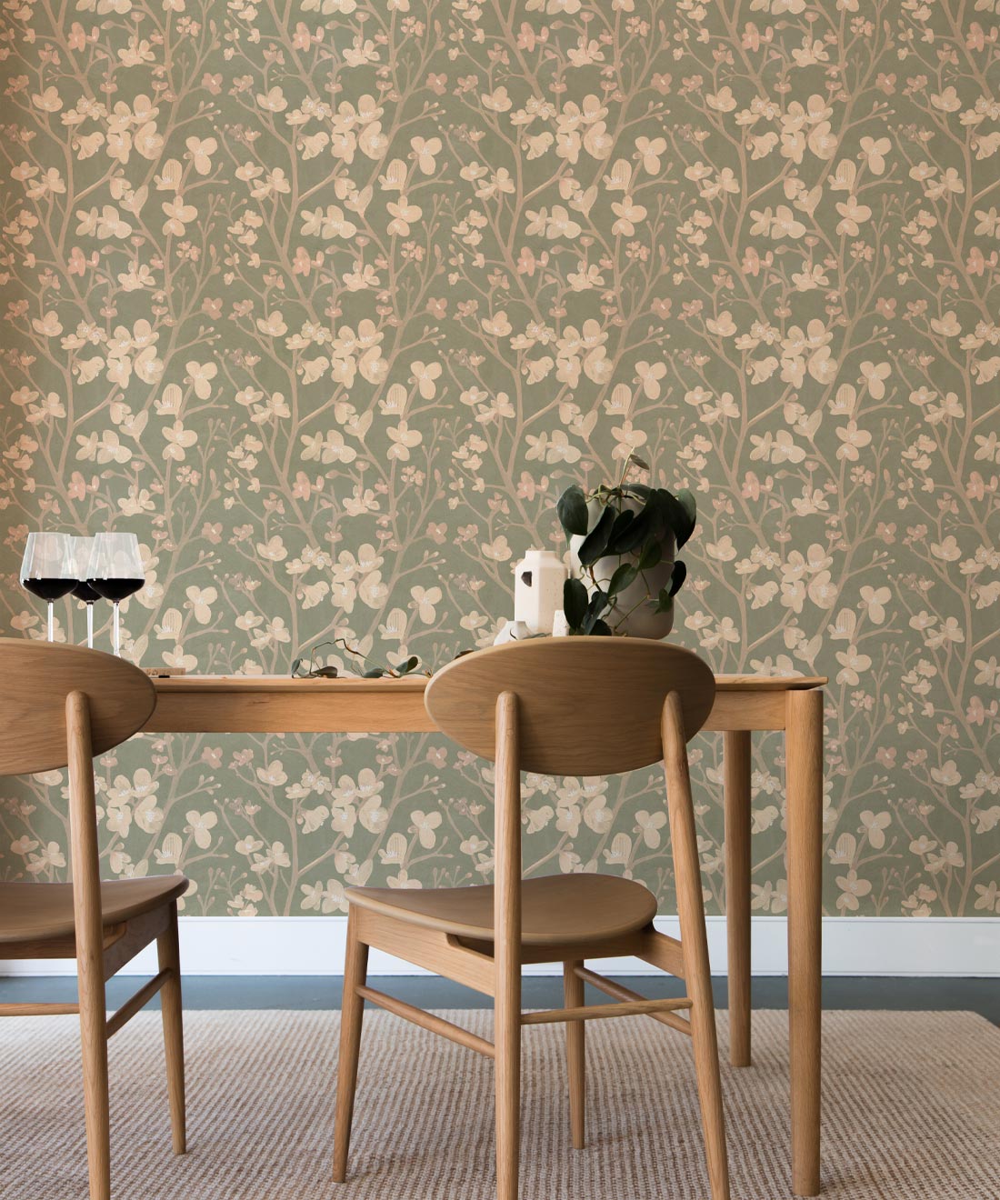 Quince is a floral wallpaper inspired by flowering quince, which is a plant made up of mostly flowers and branches. It symbolizes protection, love and happiness. Offered in multiple color ways, you can choose between bright statement colors and subtle accents. The petals are somewhat abstract and transparent with a textured background. It works well on its own or paired with other patterns from Katie O’Shea.