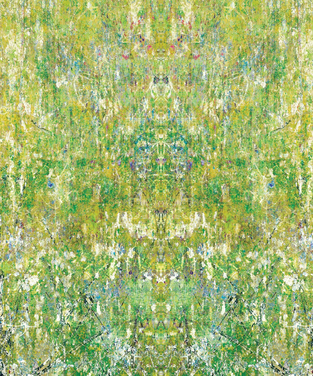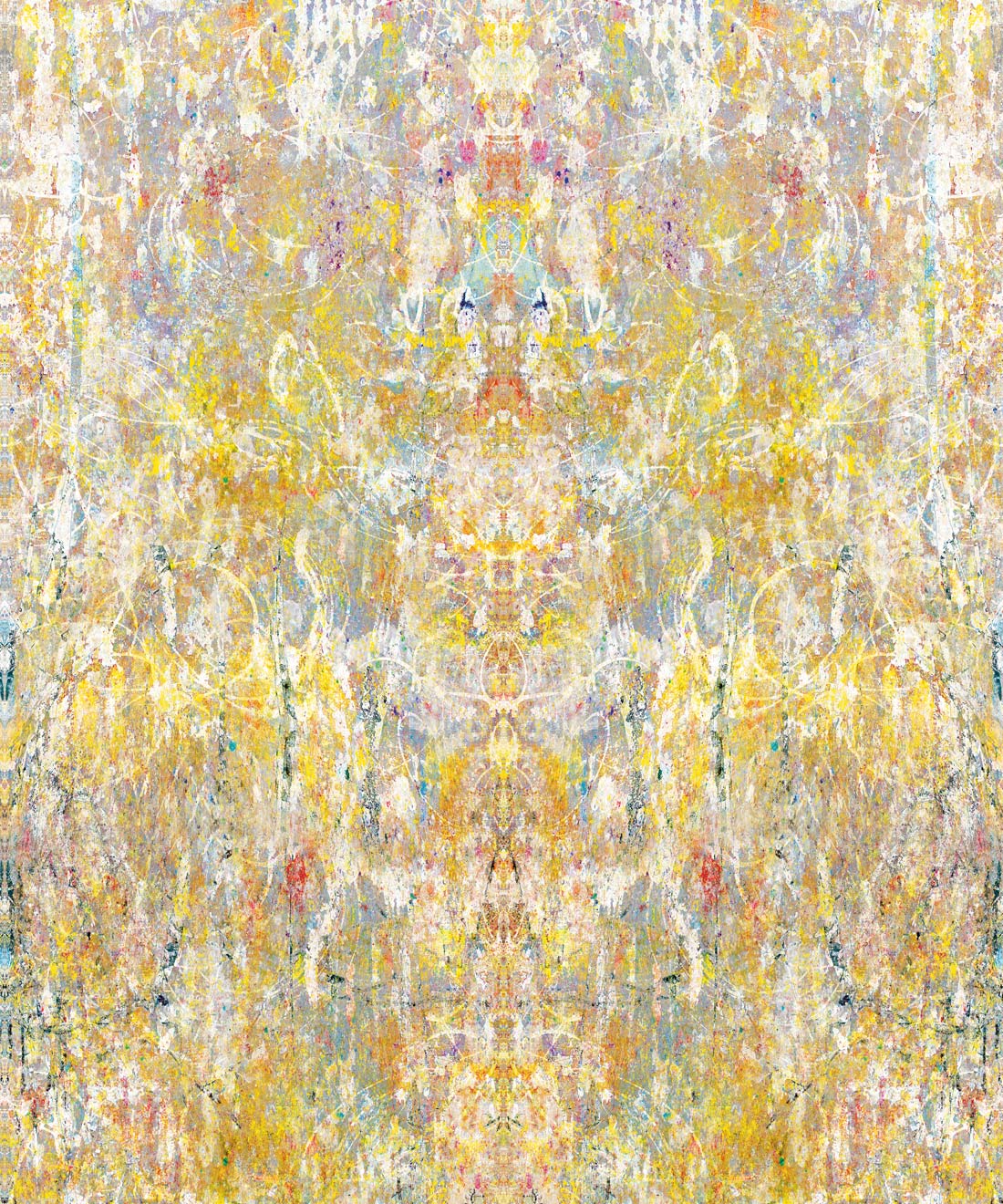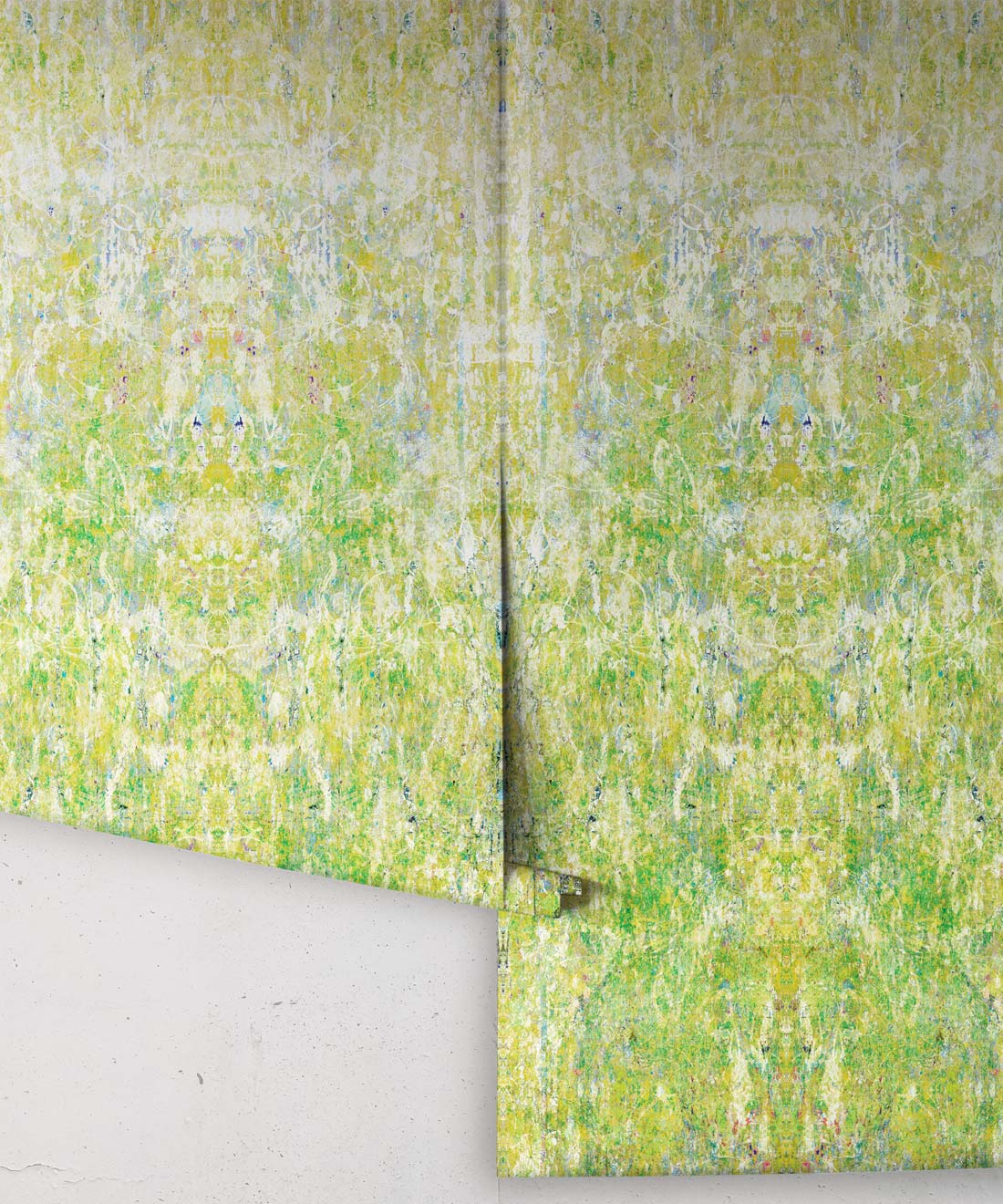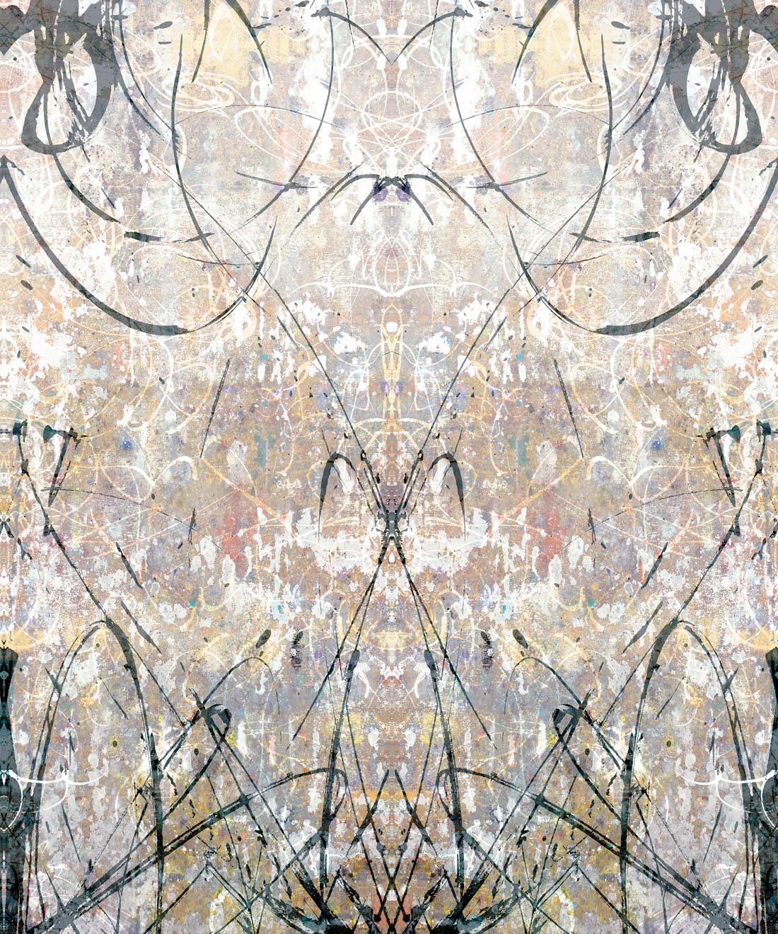 Ramose wallpaper vibrates with color and energy. It features complex colors and delicate textures overlayed with sophisticated patterning. This elegant abstract wallpaper design becomes lighter towards the top, adding a feeling of height to any space.