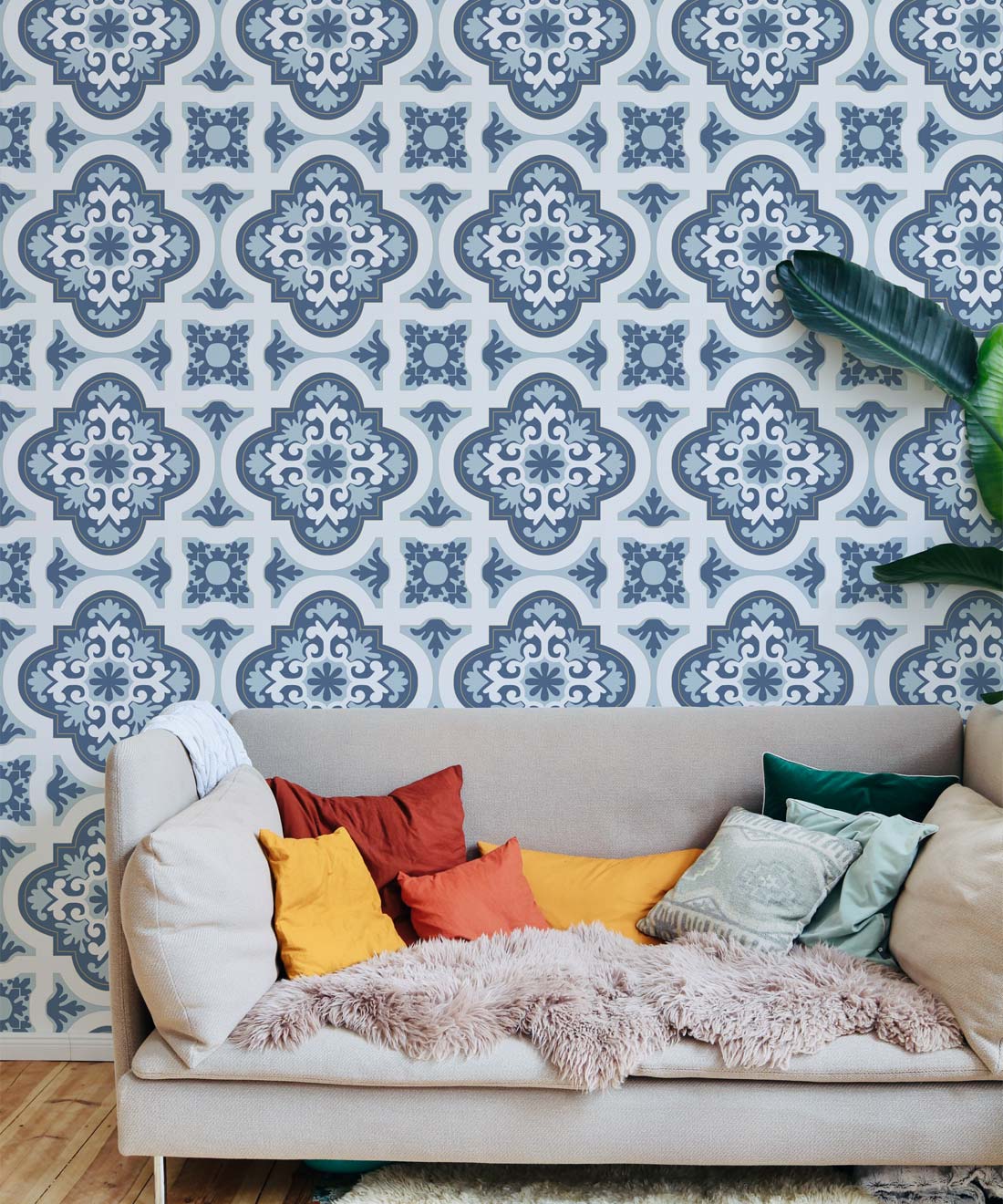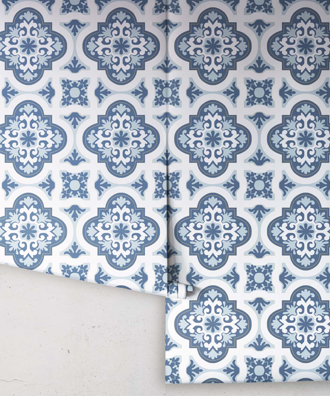 A stunning geometric floral that gives the impression of decorative tile, Rice Flower wallpaper from Maeve Oliver features a soft blue palette that will enhance and soften any space. Ideal for a kitchen or bathroom, this design is inspired by Australian flora and the iconic architectural style of authentic Queenslanders, a common feature in the suburbs of Australia’s popular Northeastern state.
