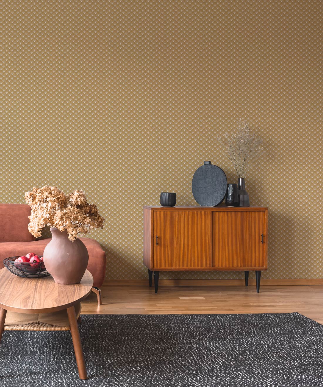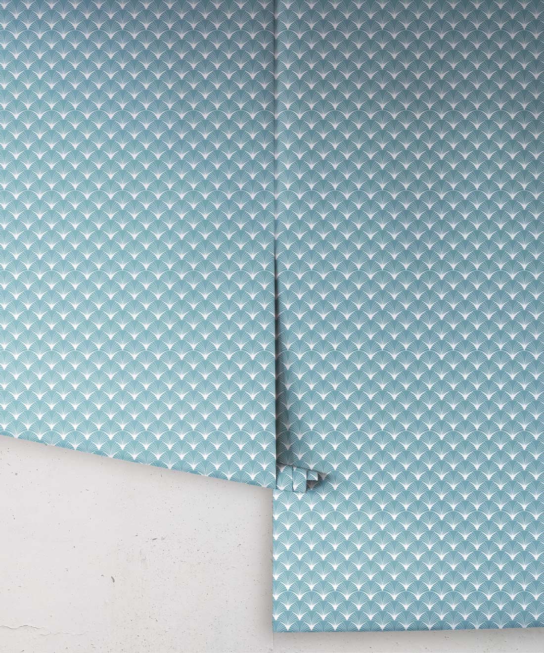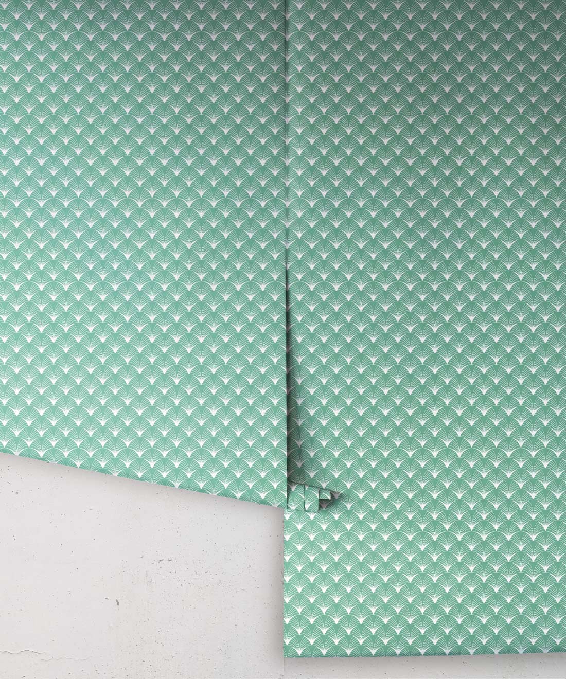 The ornamental Scallop design from Maeve Oliver’s Jewel collection is a sophisticated geometric pattern reminiscent of the Art Deco style, combined with the timelessness of ancient mosaics. Perfect for small spaces for a pop of colour or large spaces for a stylish feature. Available in three signature colours, Antique Moss, Bosco Blue and Dynasty.