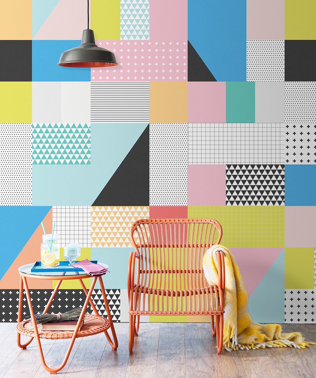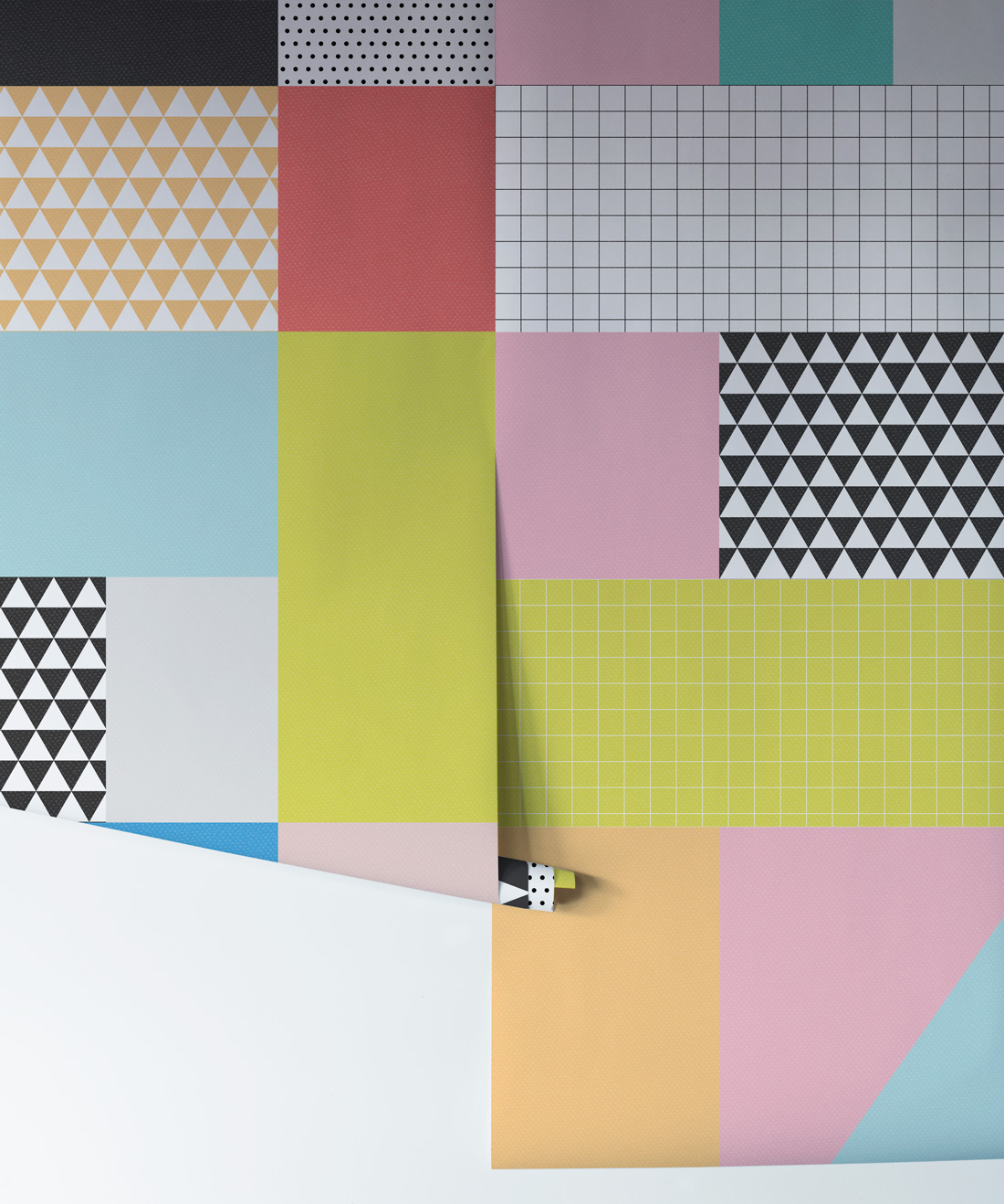 A unique, patchwork of color, clean crisp lines and modern shapes. The wallpaper epitomises the simplicity, minimalism and functionality of the Memphis Design movement. A bold and brash wallpaper, full of graphic aplomb and primary Colors Memphis isn’t for the faint hearted.