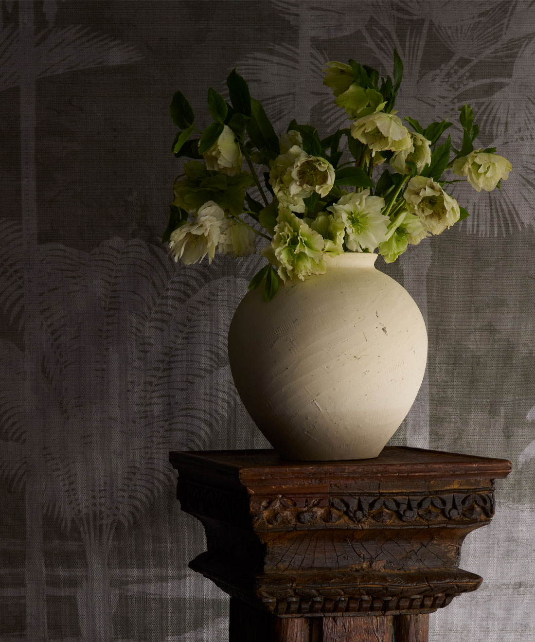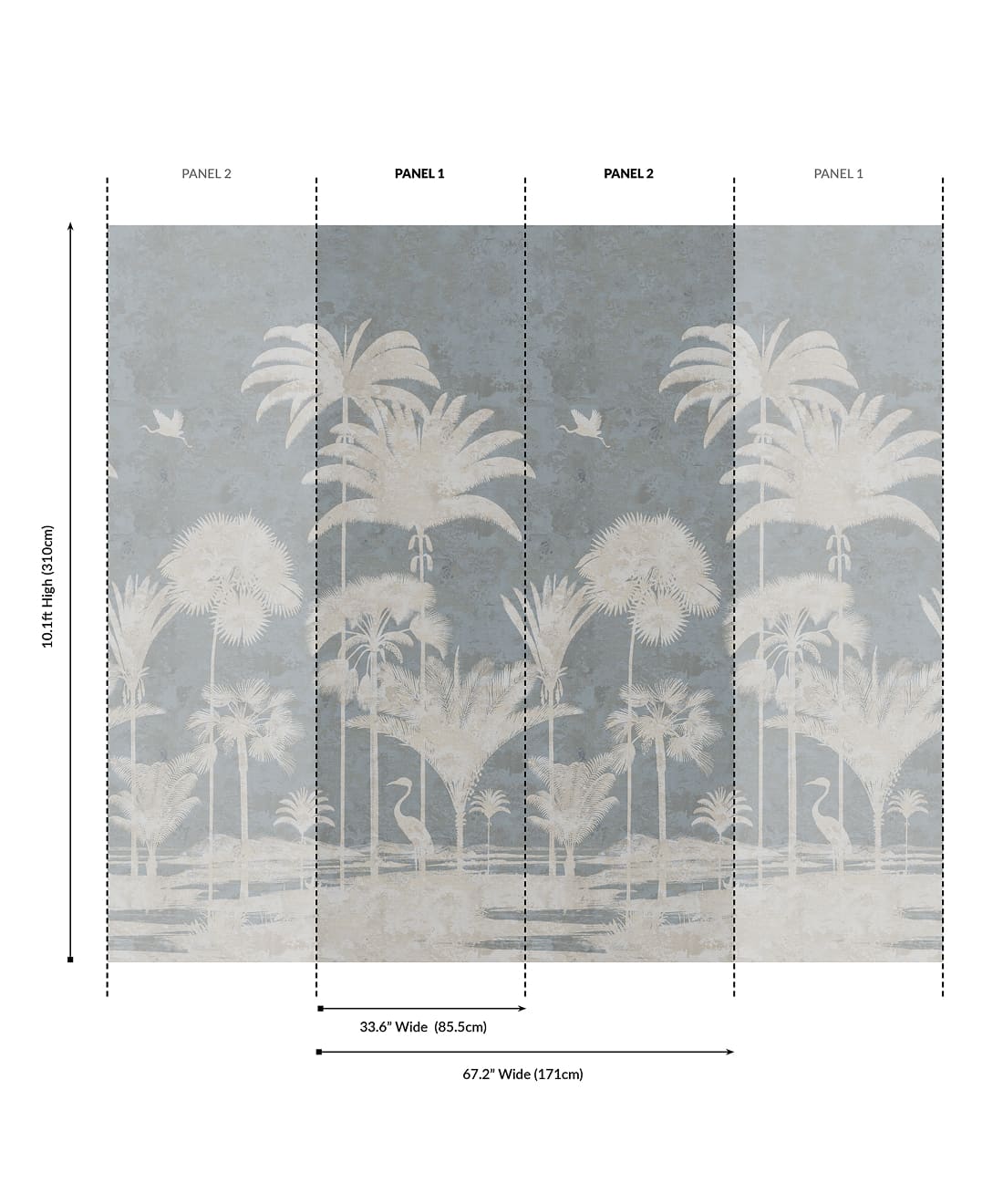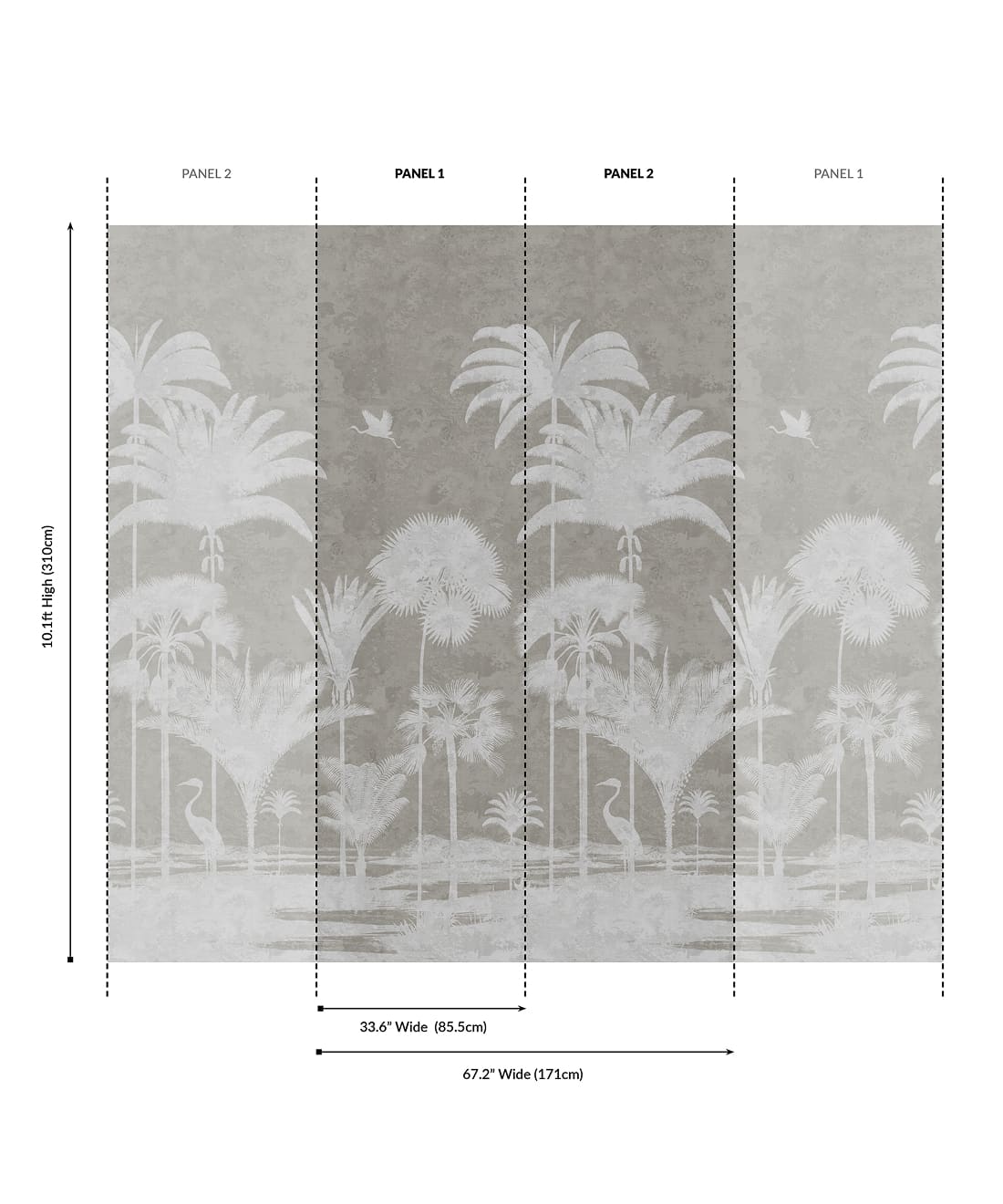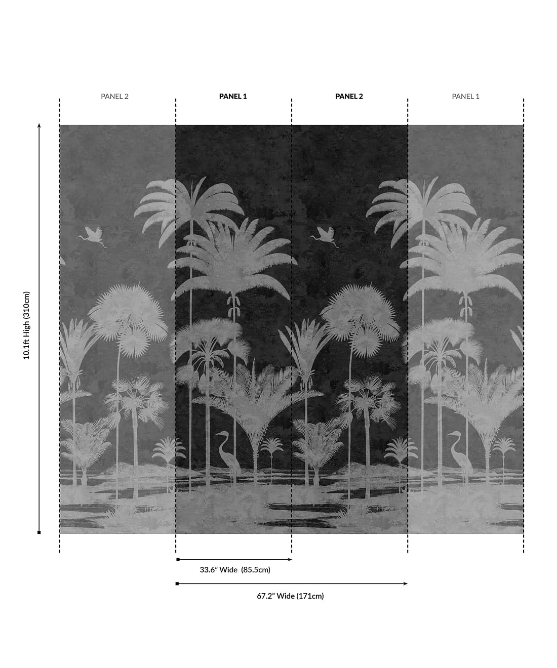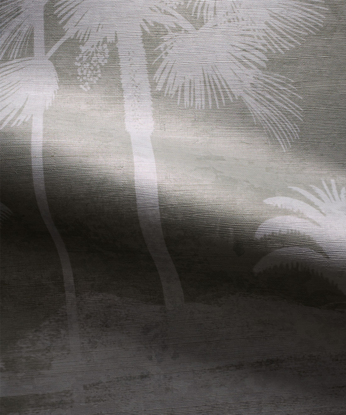 The Shadow Palms Grasscloth Mural captures the stunning silhouettes of an early morning in a tropical haven. All the color and detail of these lush landscapes has been removed, leaving simple shadows that reflect the excitement and beauty of sunrise over a tropical landscape. The combination of texture and simple forms combine to add a sense of depth and intrigue, allowing this design to blend seamlessly with a range of interior styles, whether modern and edgy, or refined and timeless.