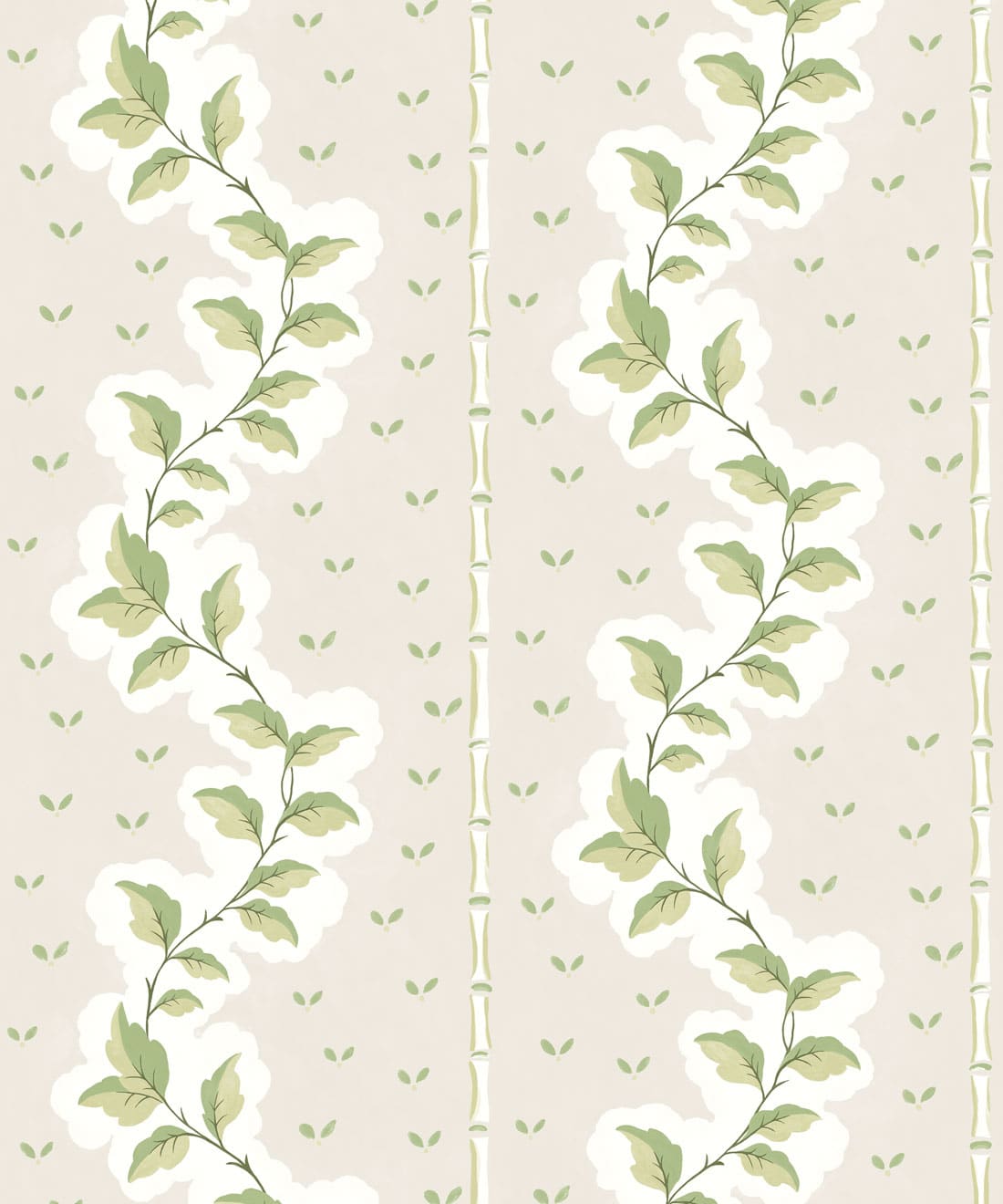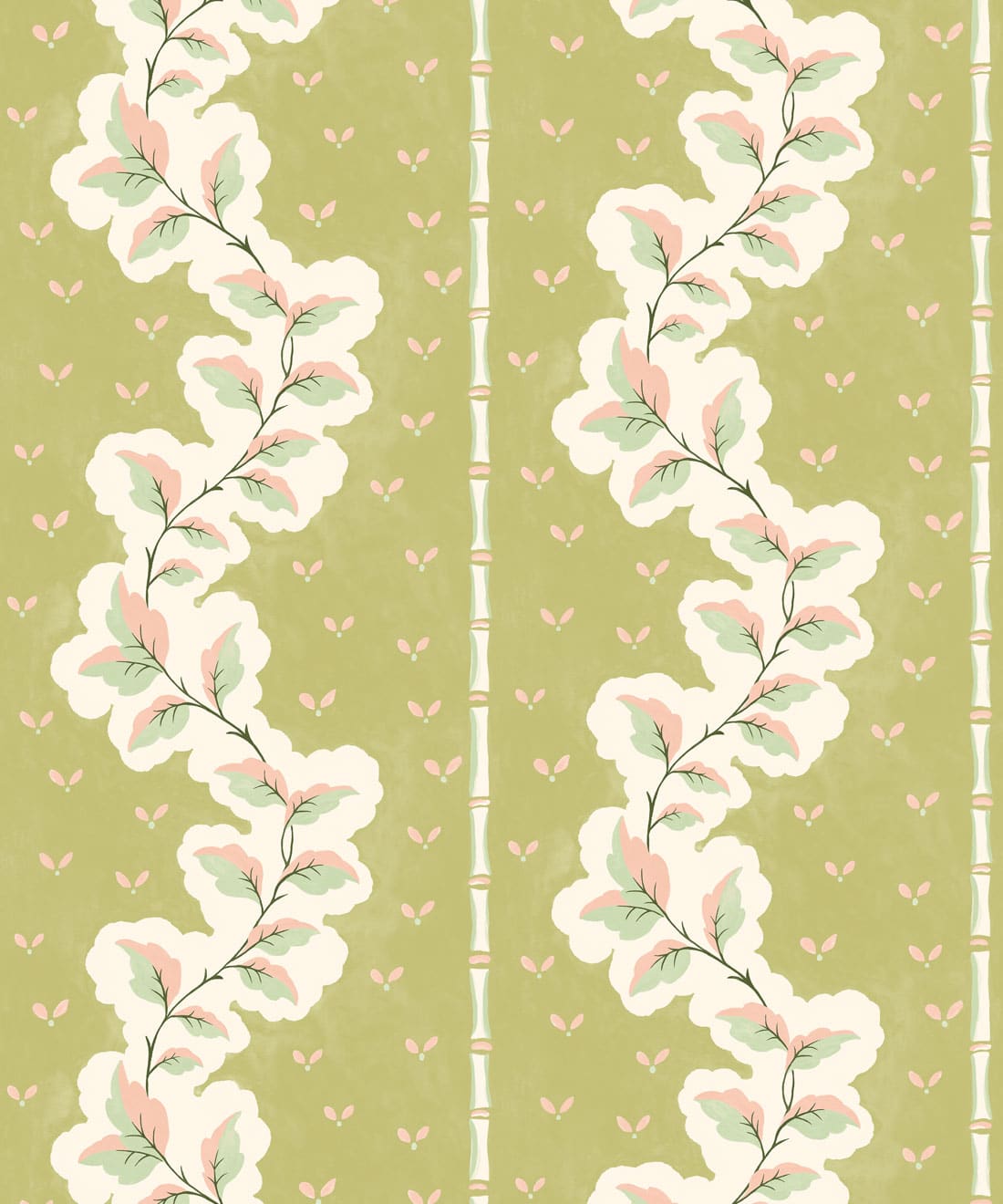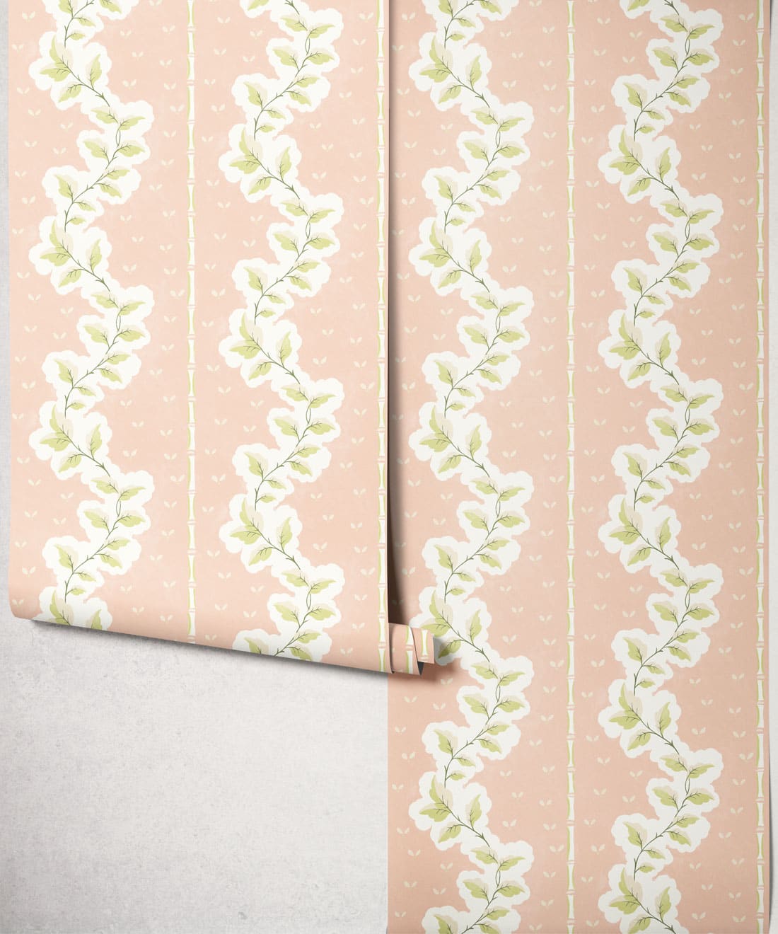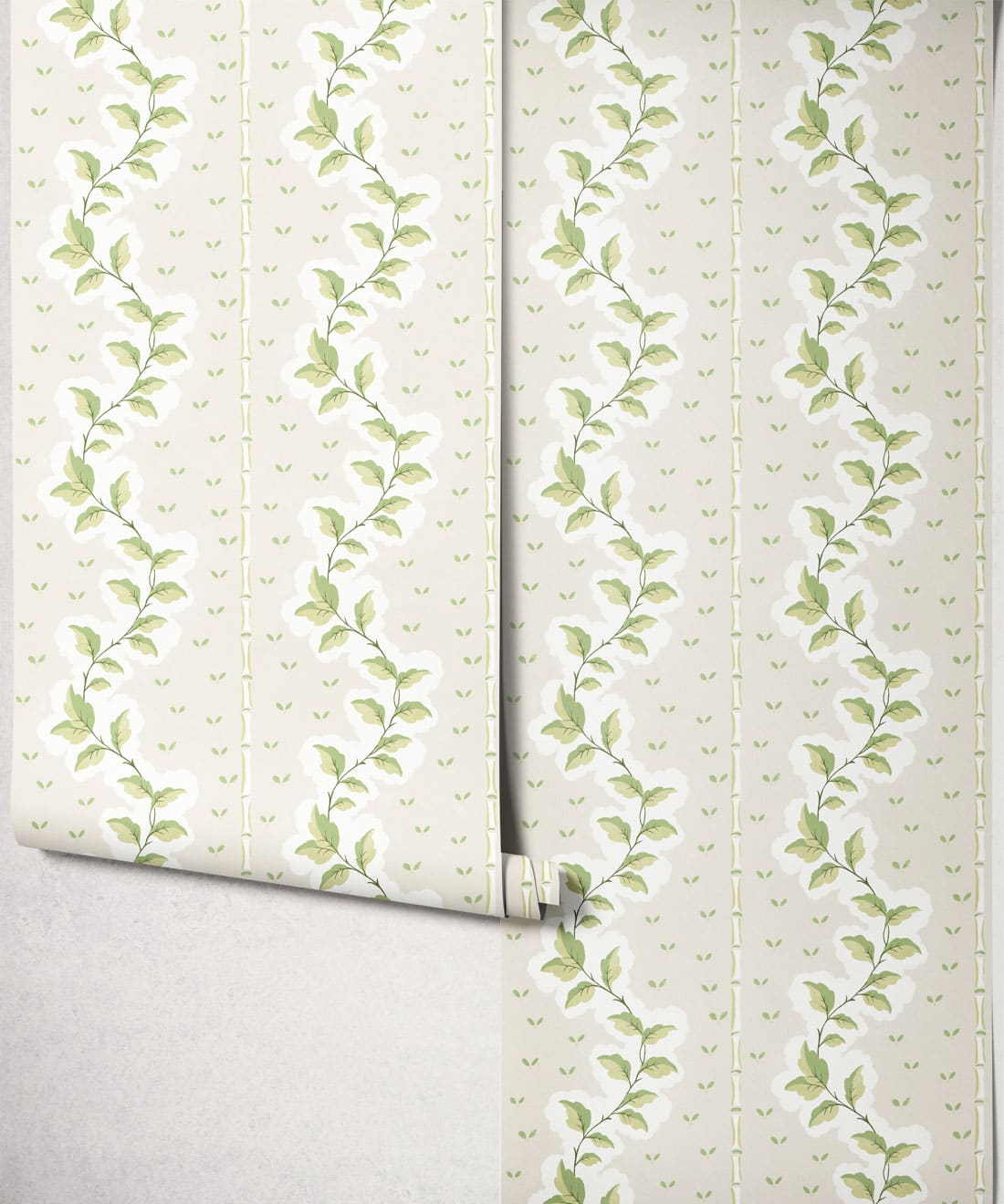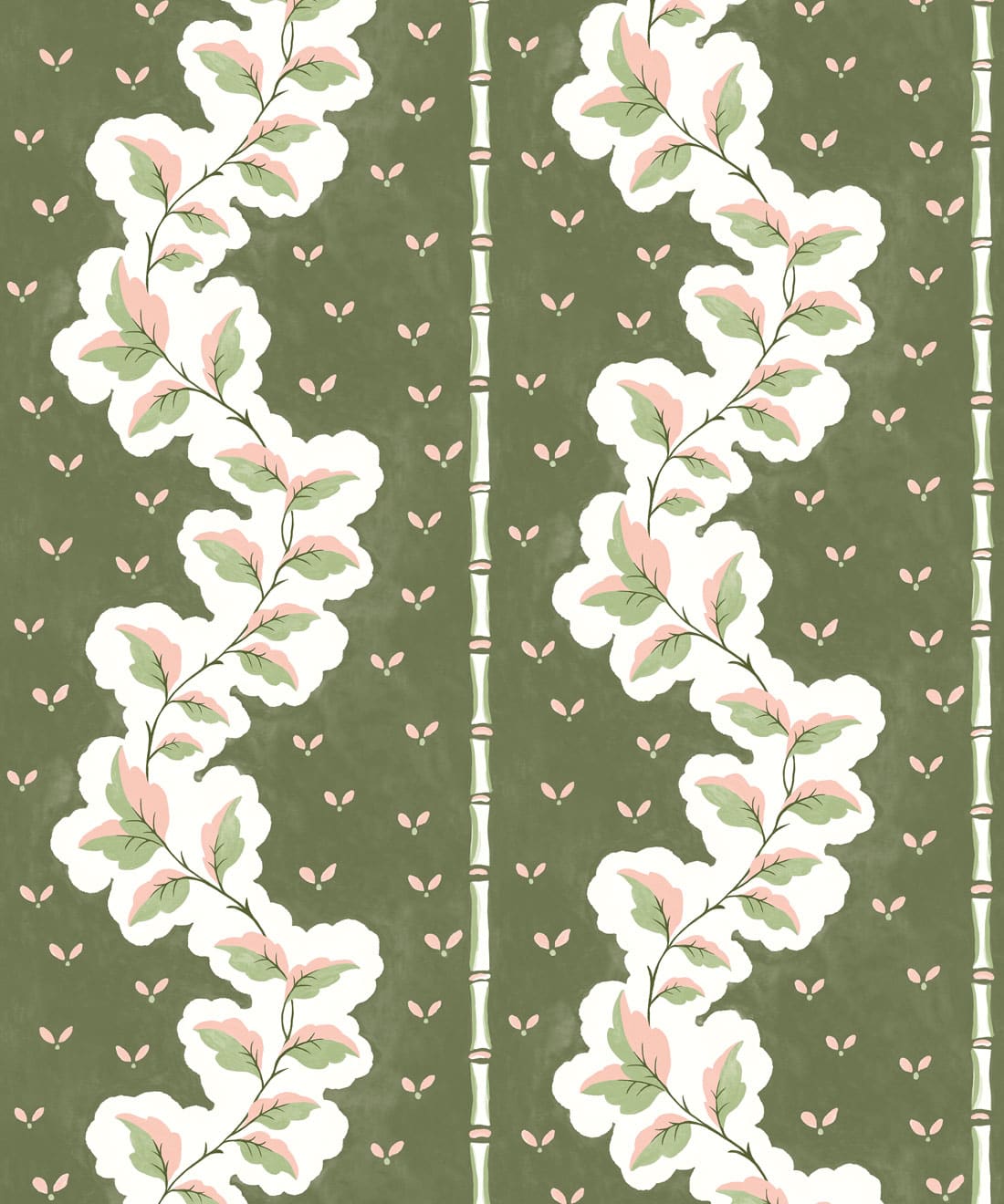 Silk Road is a hand-painted decorative stripe wallpaper that weaves foliage and pattern into a richly detailed design. Leaves and floral motifs flow through the stripe, giving the pattern movement and texture.