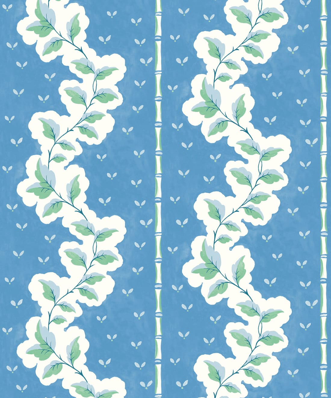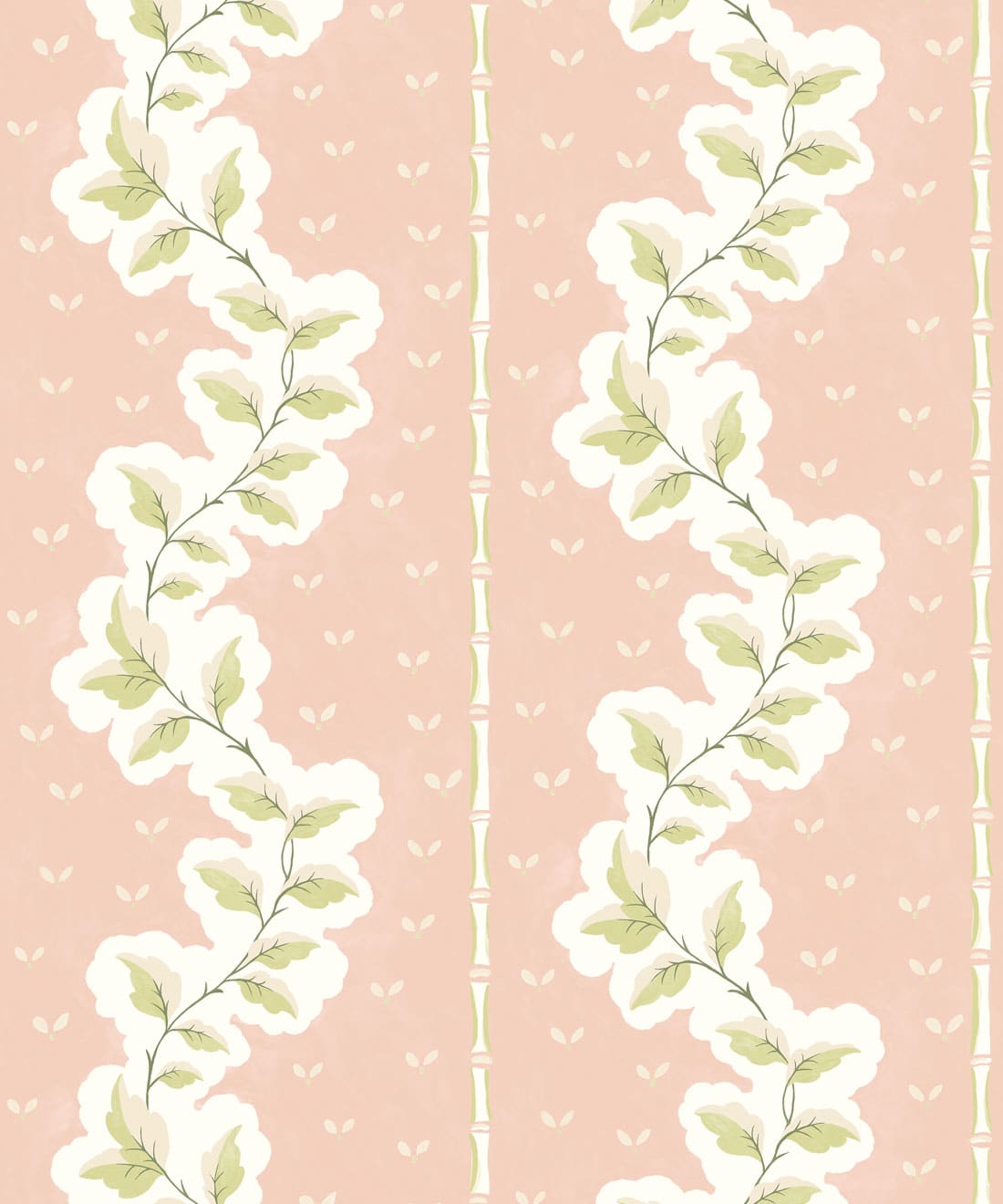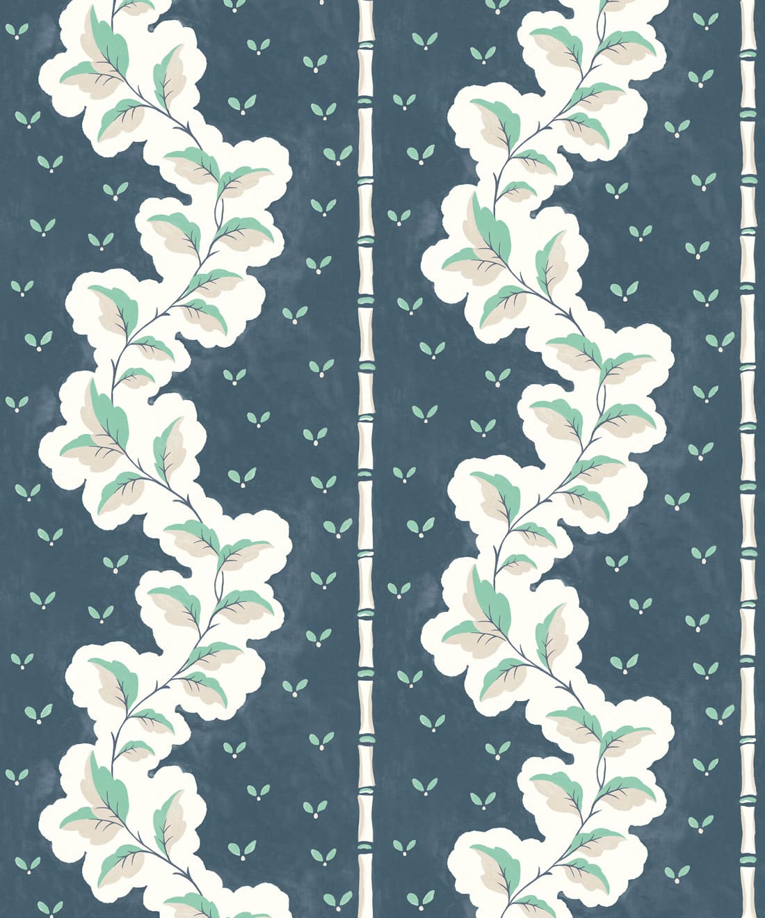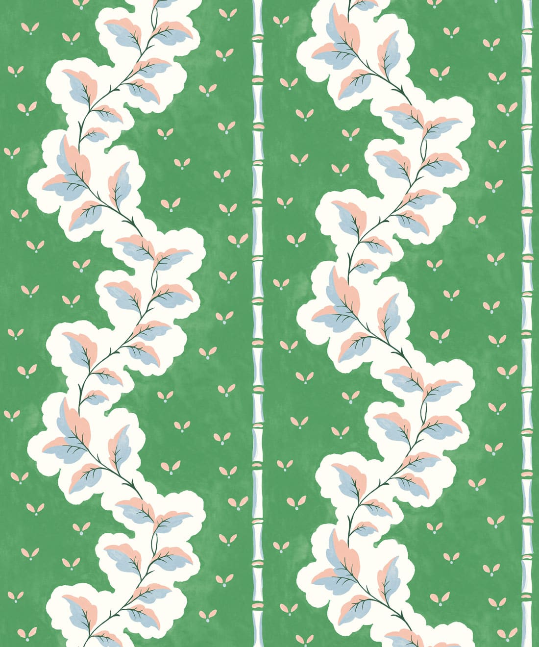 Silk Road is a hand-painted decorative stripe wallpaper that weaves foliage and pattern into a richly detailed design. Leaves and floral motifs flow through the stripe, giving the pattern movement and texture.