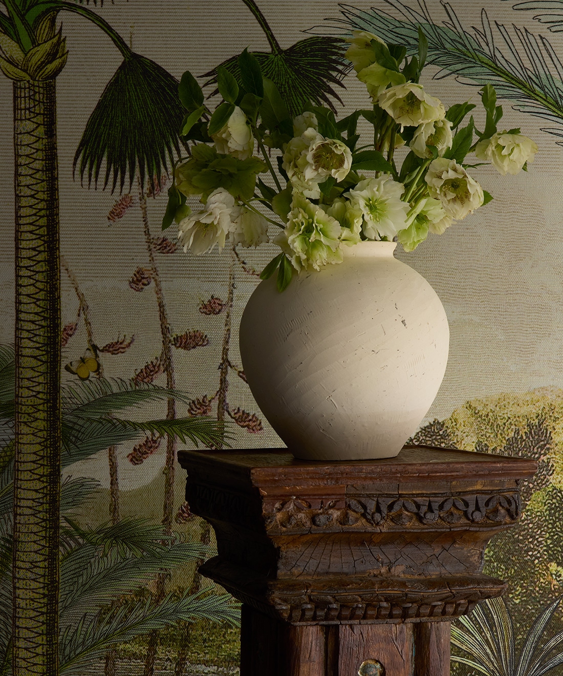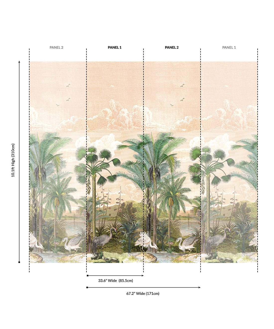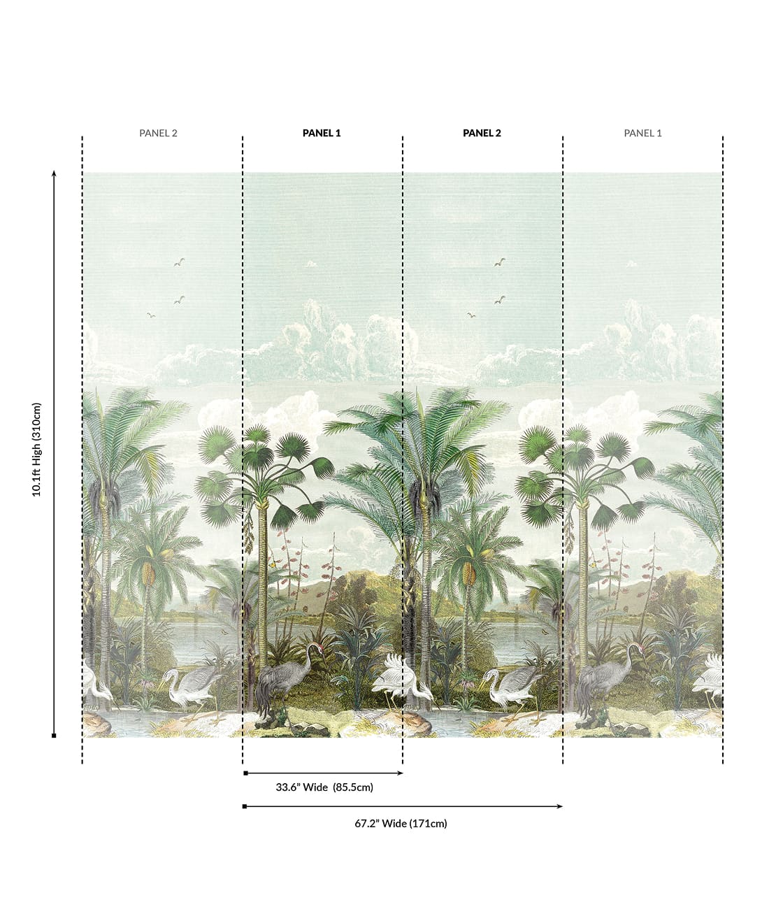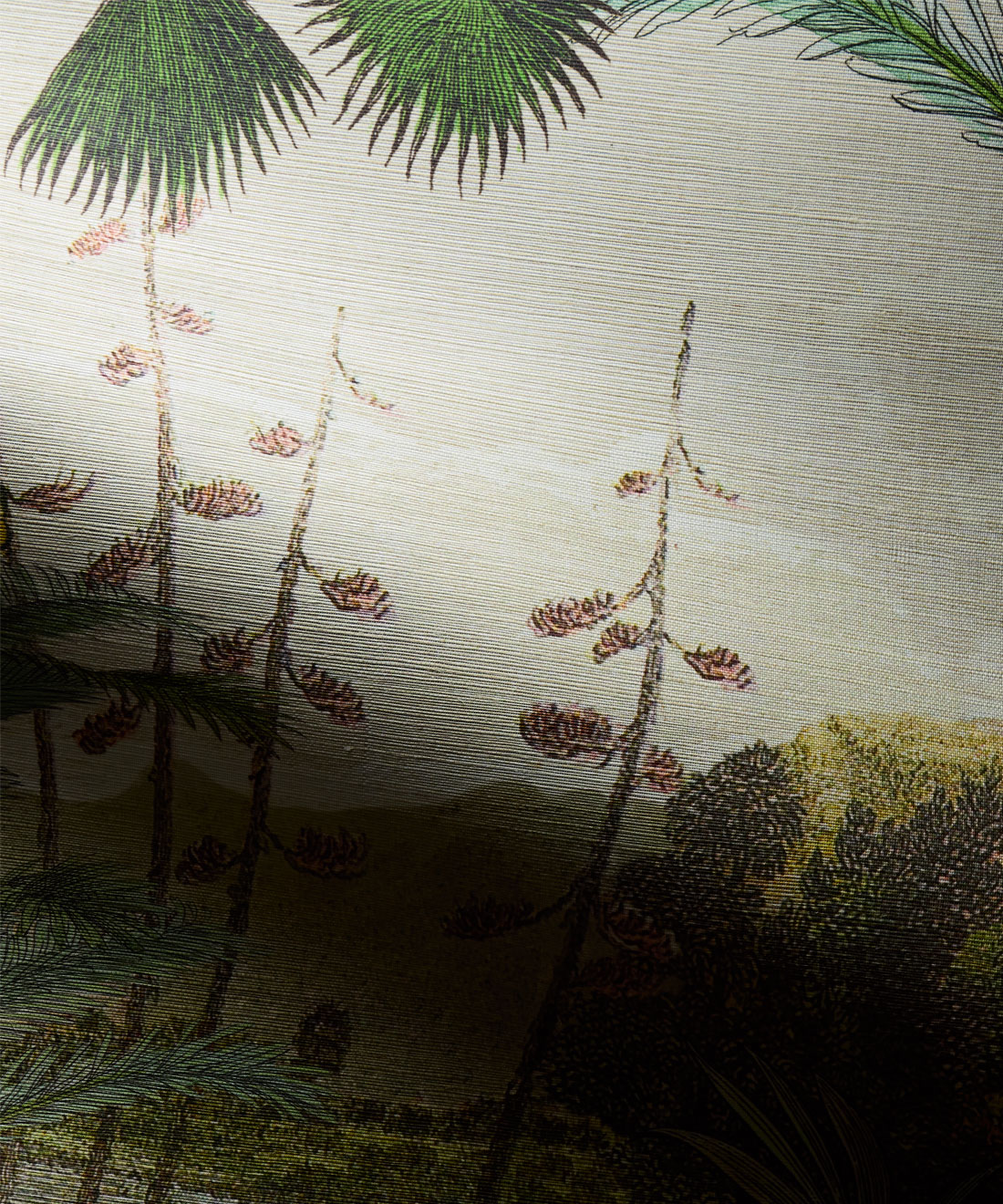 The South Asian Subcontinent Grasscloth mural pays homage to 18th century landscape paintings, designed to romanticise and attract new pioneers to travel from faraway destinations. Styled to mimic etchings of the Georgian and Victorian era, the design consists of several fine lines to create a complex panorama. This stunning design combines with the textured Grasscloth substrate to create a serene and tranquil backdrop that will transform any interior into a peaceful sanctuary full of wonder and mystery.