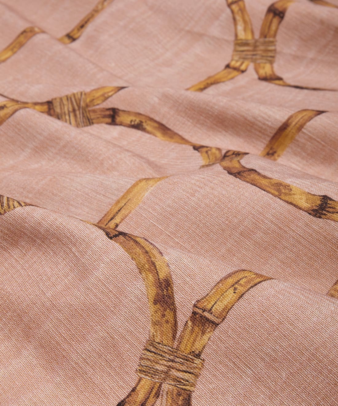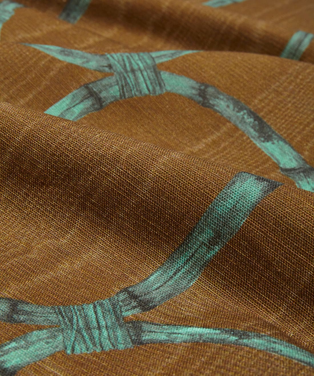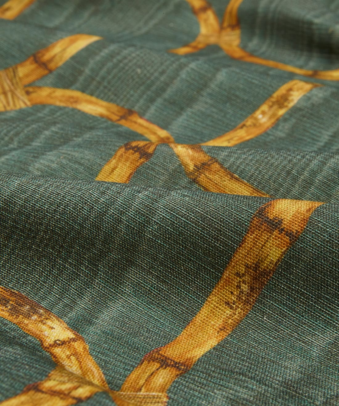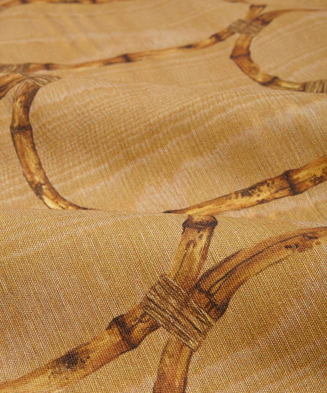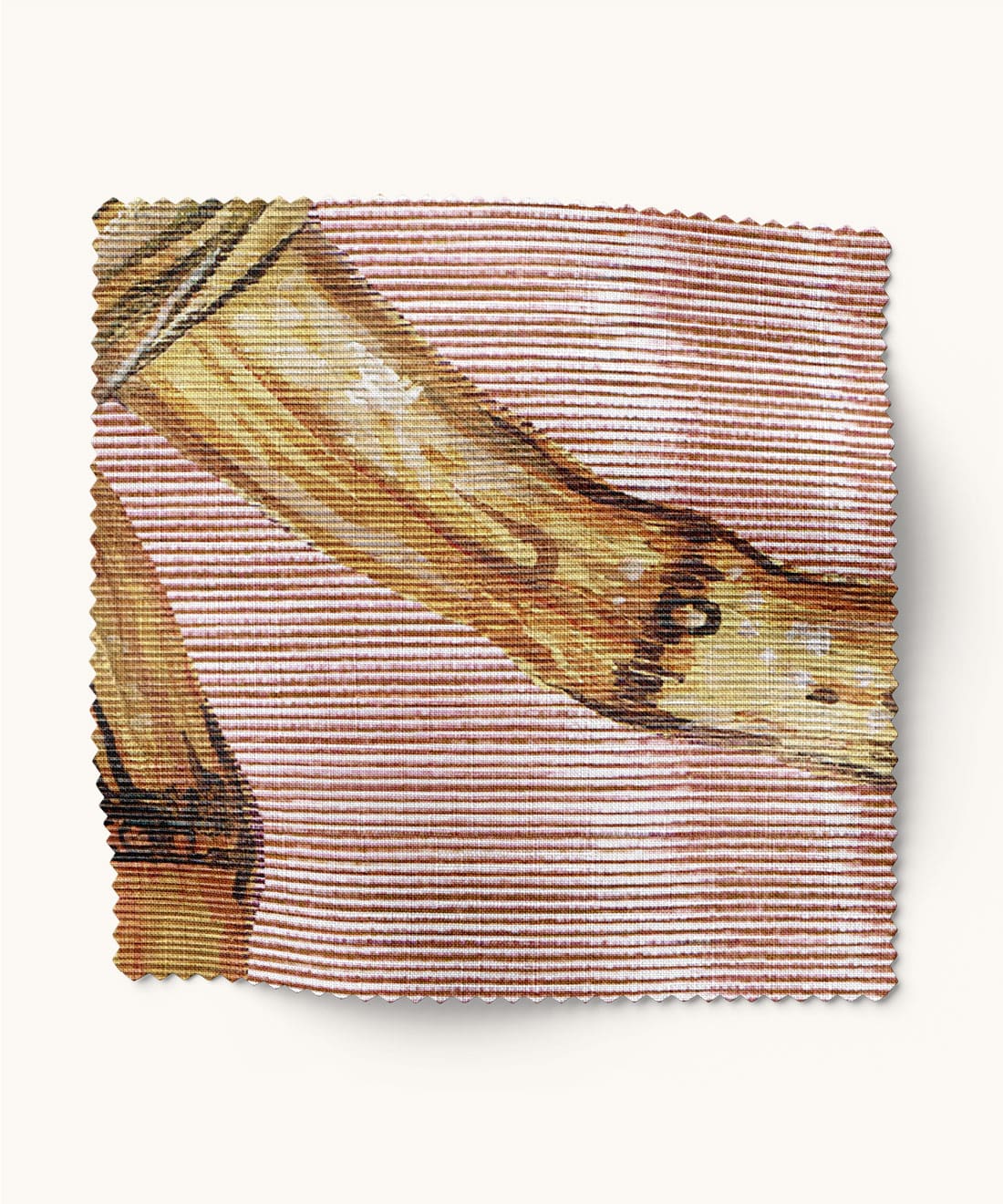 Inspired by the Brighton Royal Pavilion’s Long Room, Tea Room blends heritage with subtle sheen. Bamboo ovals painted onto a moiré silk texture create movement and softness that shimmer with the light. A refined choice for elegant drapery upholstery or serene layered interiors.