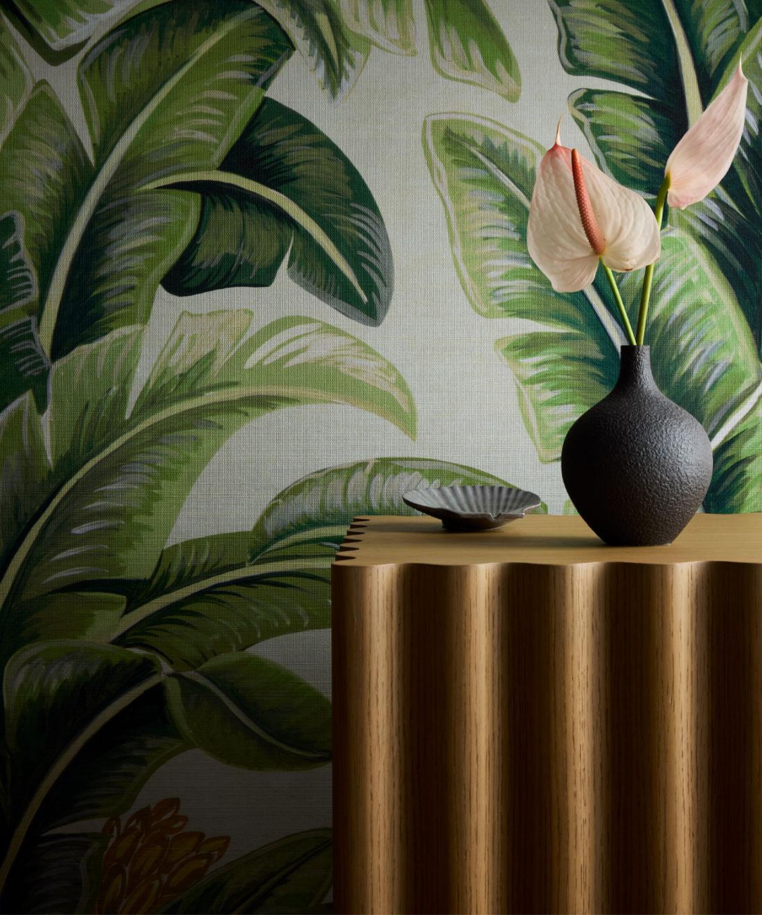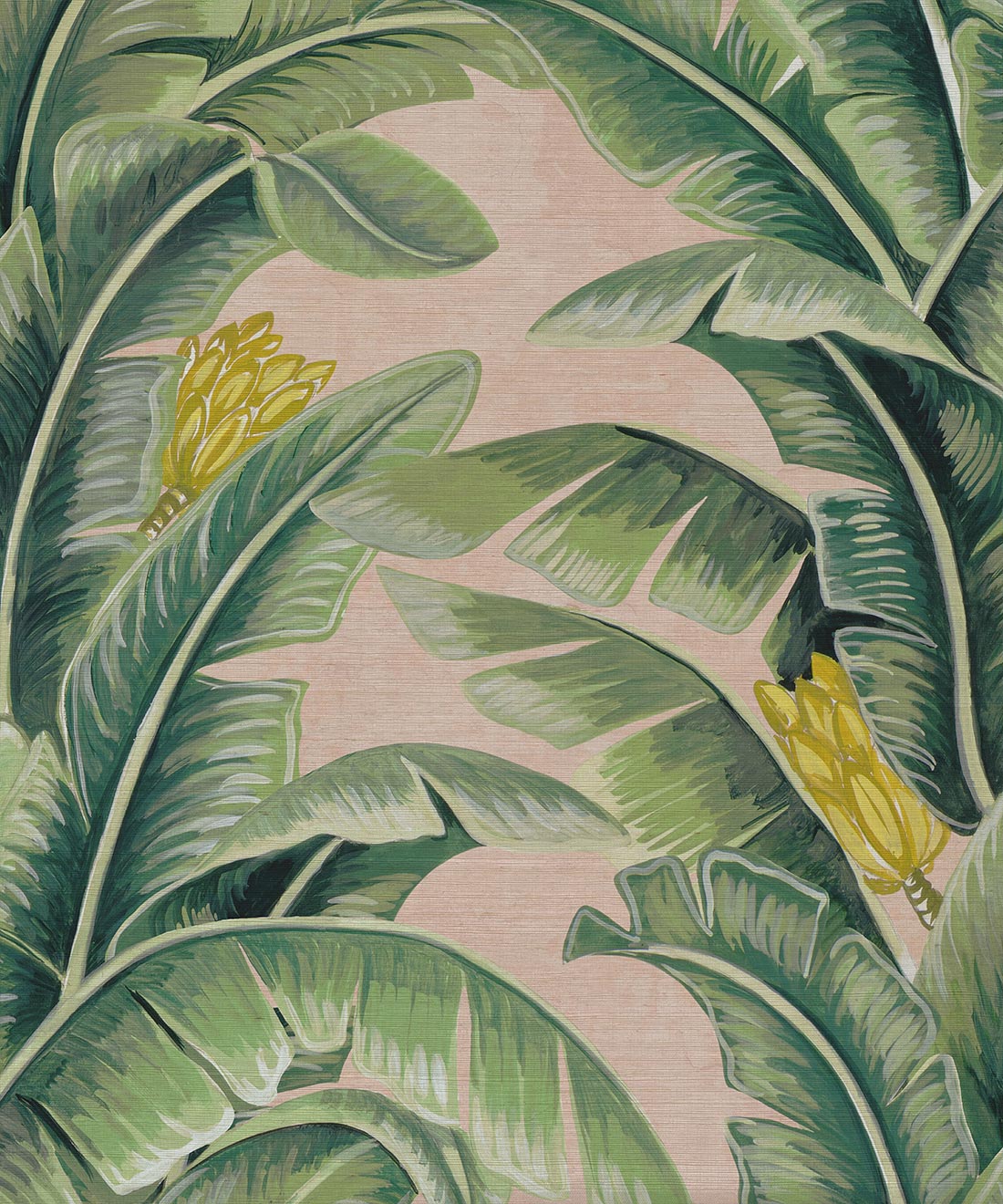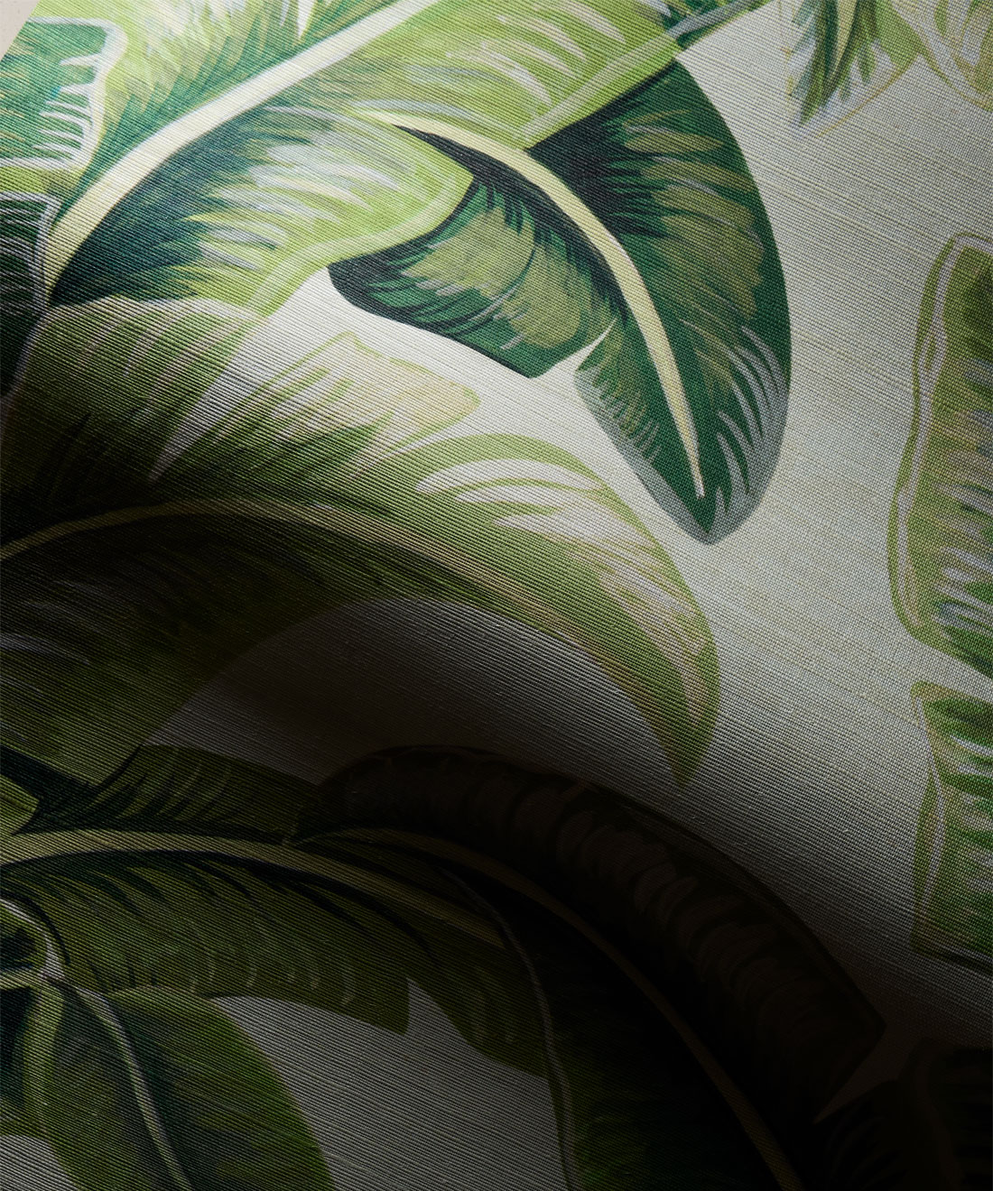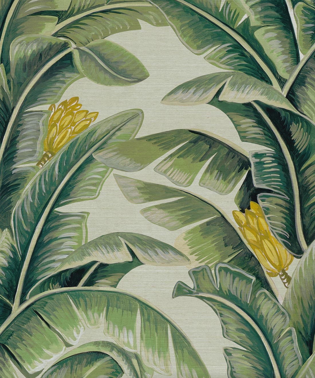 Initially constructed to house The Great Exhibition of 1851, the Crystal Palace or ‘The Great Shalimar’ was a giant temporary greenhouse built in Hyde Park, London that featured the world’s most exciting and impressive inventions of the time. Measuring over 1851ft (564m) long and 128ft (39m) tall, it was an architectural marvel filled to the brim with plants, highlighting the exceptional beauty of the natural world. Inspired by the name and imagery surrounding this extraordinary structure, The Great Shalimar Grasscloth Wallpaper features towering tropical palms and golden bunches of the once-exotic banana ripening amongst them. The subtle texture and hand-painted elements combine to create a stunning backdrop that will imbue your space with warmth and transform any interior into a natural haven.