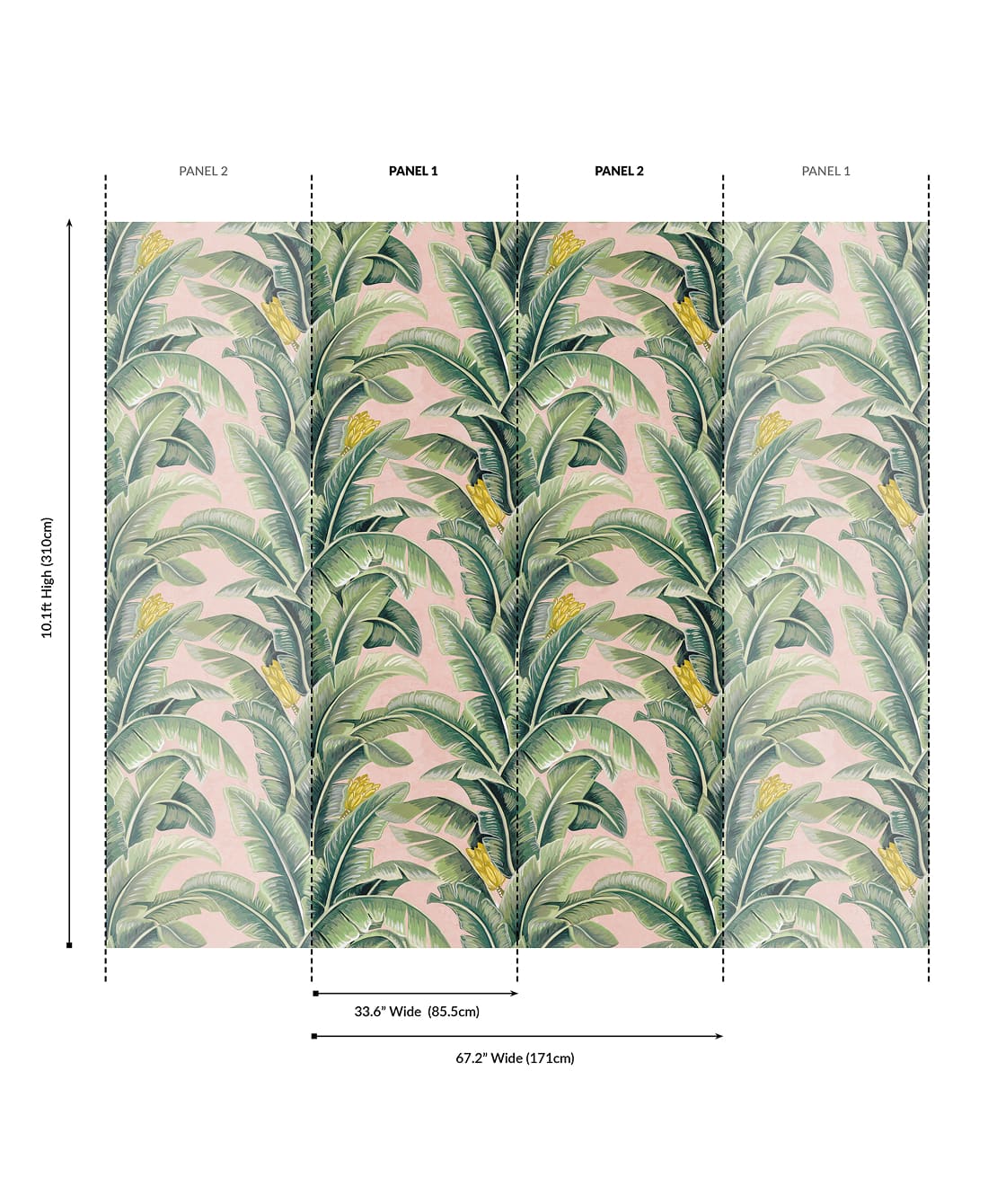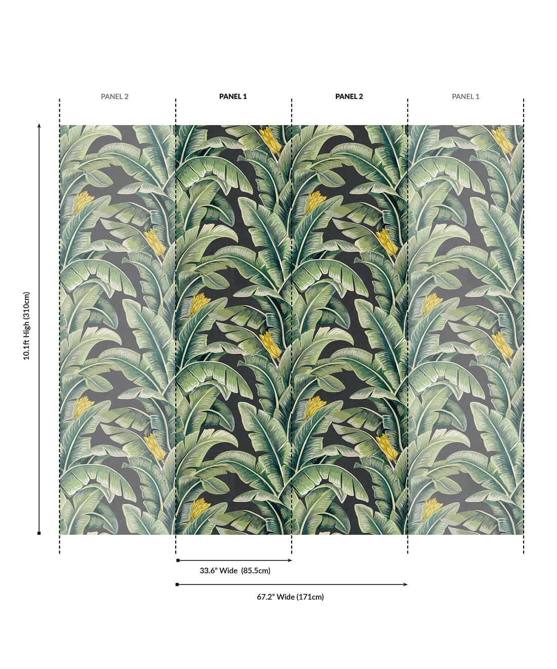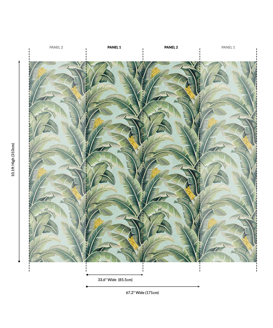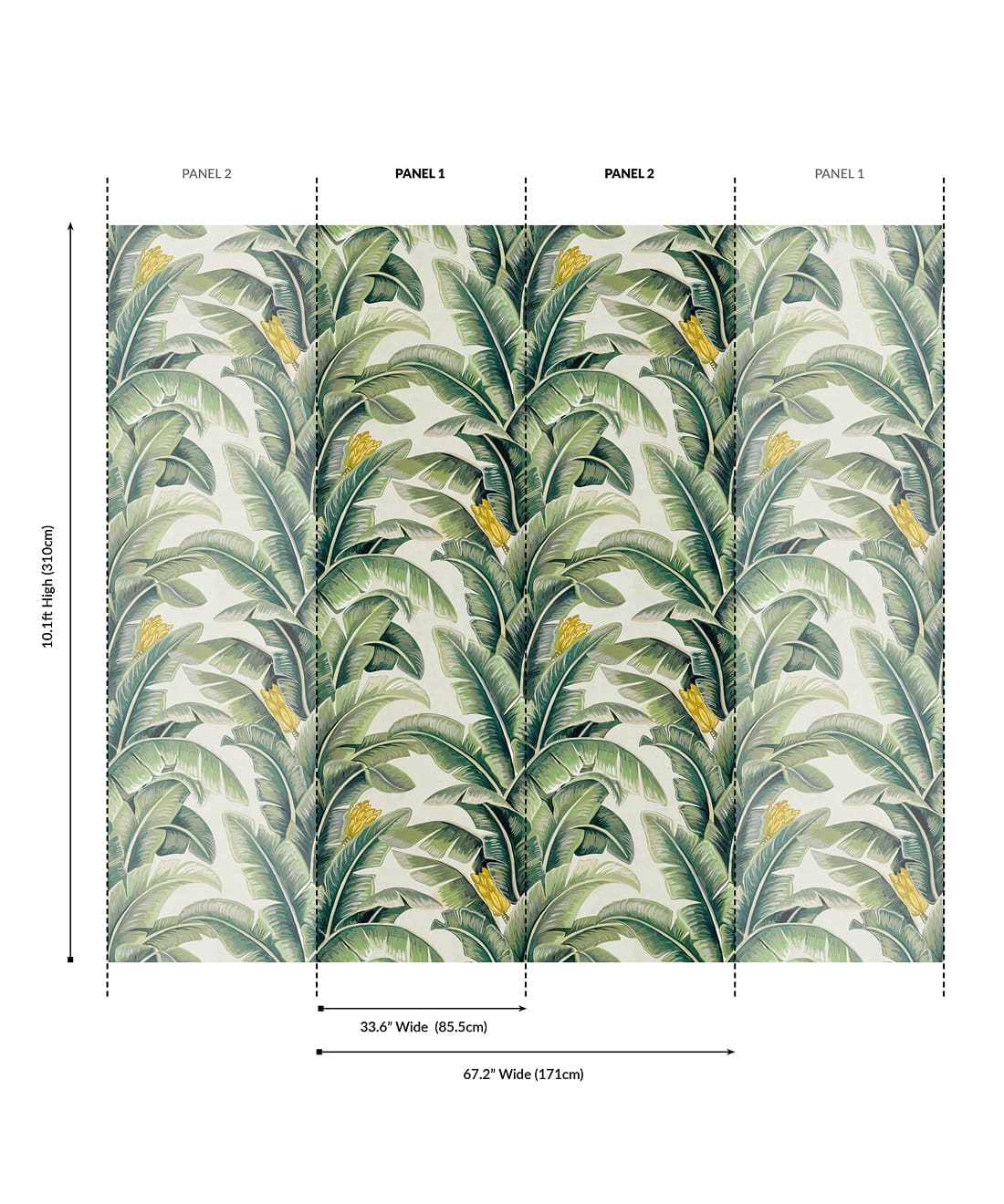Initially constructed to house The Great Exhibition of 1851, the Crystal Palace or ‘The Great Shalimar’ was a giant temporary greenhouse built in Hyde Park, London that featured the world’s most exciting and impressive inventions of the time. Measuring over 1851ft (564m) long and 128ft (39m) tall, it was an architectural marvel filled to the brim with plants, highlighting the exceptional beauty of the natural world. Inspired by the name and imagery surrounding this extraordinary structure, The Great Shalimar Grasscloth Wallpaper features towering tropical palms and golden bunches of the once-exotic banana ripening amongst them. The subtle texture and hand-painted elements combine to create a stunning backdrop that will imbue your space with warmth and transform any interior into a natural haven.