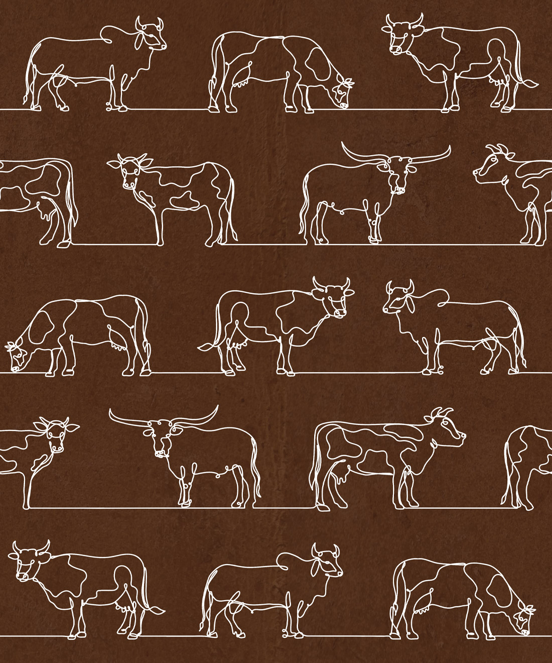 The Herd Wallpaper is a cattle-inspired design bring minimalist cows to any room. It is the perfect combination of country and city. Created using a minimalist single-line drawing style, popular in contemporary illustrations, this pattern features a range of familiar breeds of cow, including Longhorns, Friesians, Brahmans, Herefords and more. The sleek lines will complement modern elements of decor, while the alternating patterns of livestock will add a touch of rural life to any space and highlight the rustic features of your home or business.