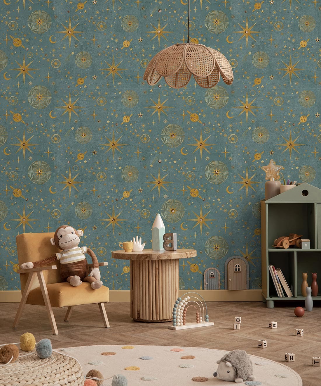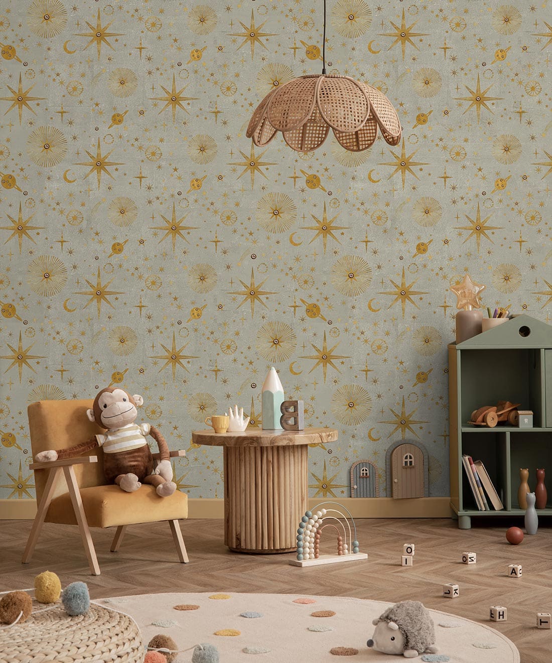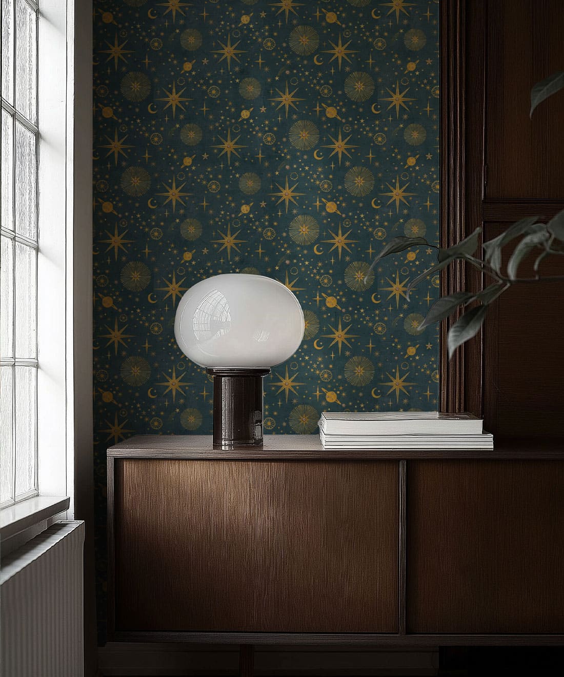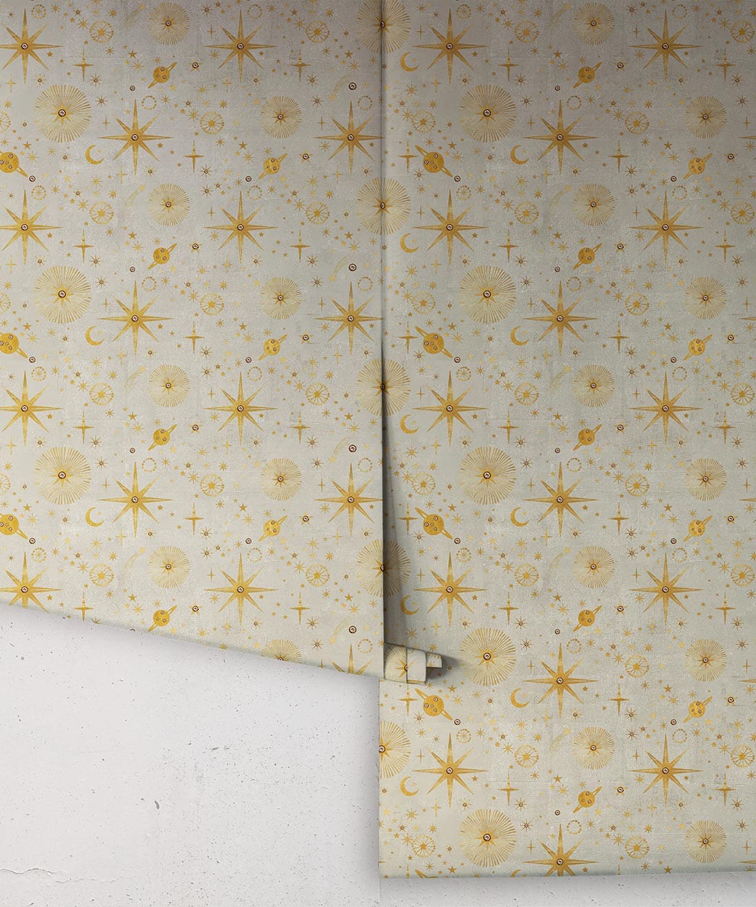 Capture the wonder of a starlit sky with the Milky Way, a celestial design inspired by Bethany Linz’s cherished childhood memories of stargazing. This wallpaper features golden and silver stars delicately scattered across a rich, textured background, evoking the grandeur of stylized abbey ceilings. Perfect for sparking imagination and a sense of serenity, The Milky Way transforms walls into a dreamscape of our galaxy, bringing the magic of the cosmos into your home.
