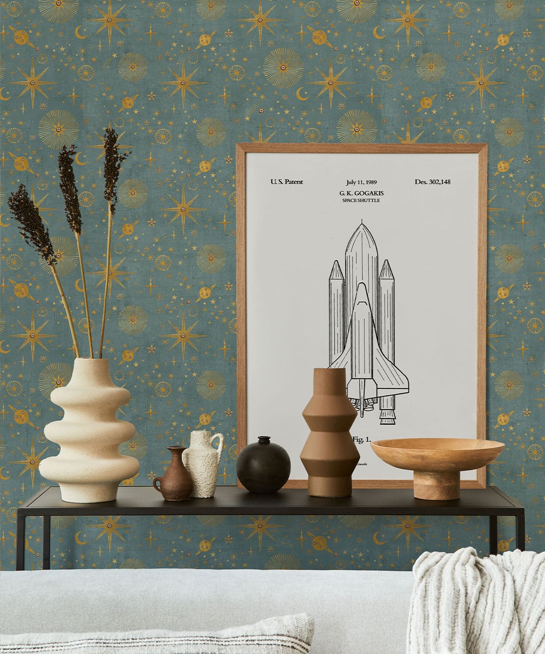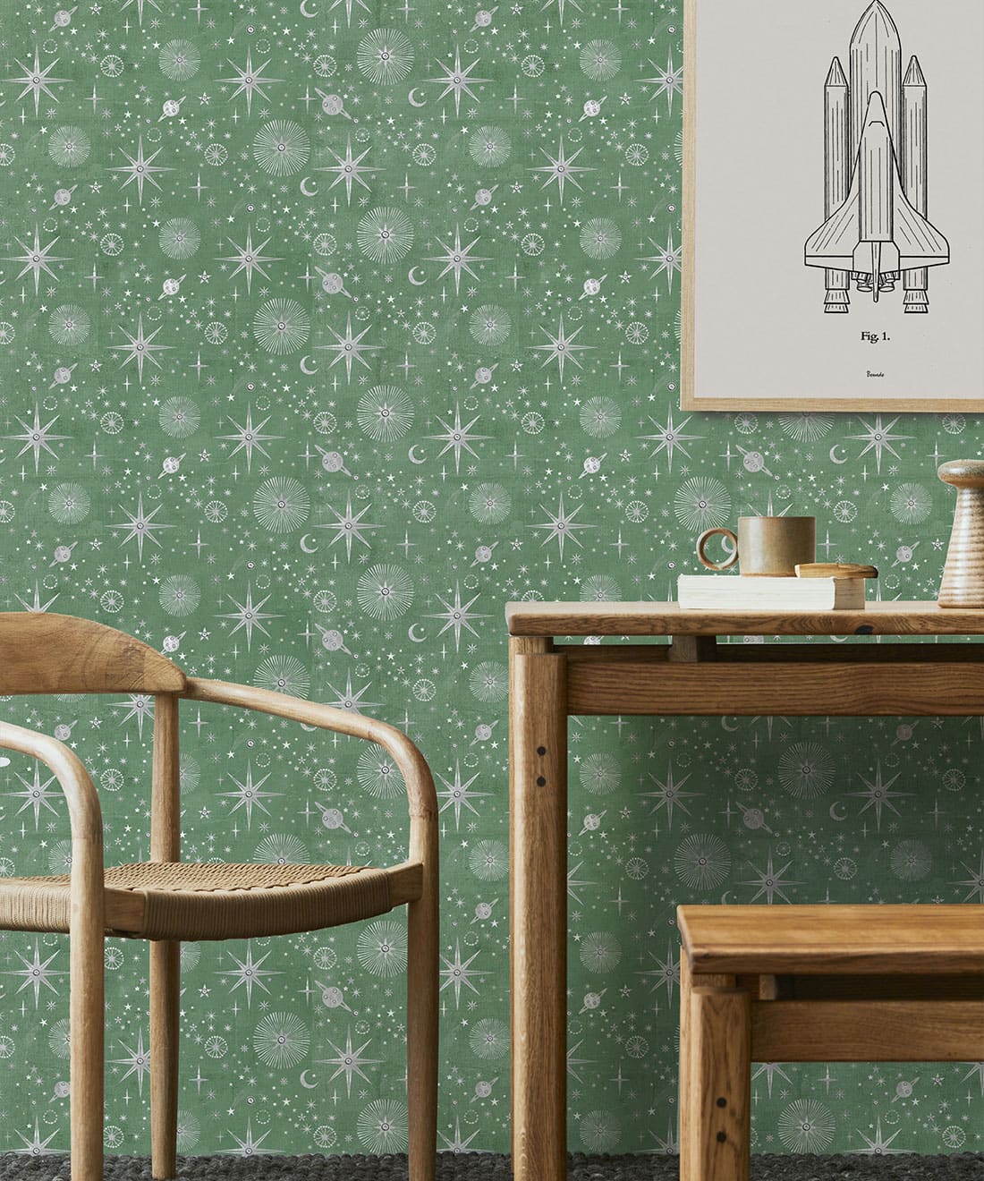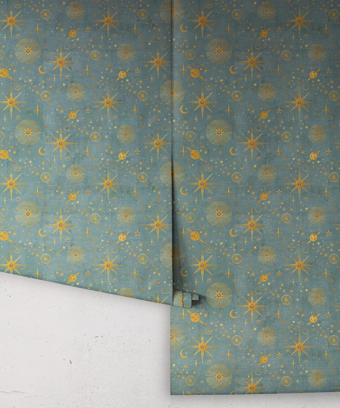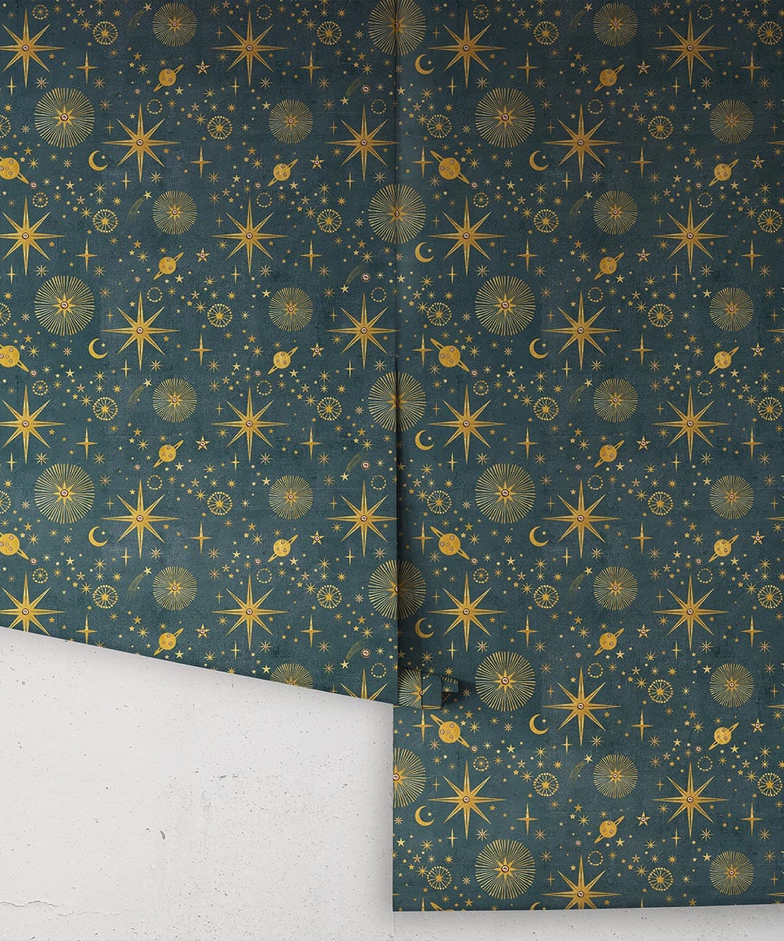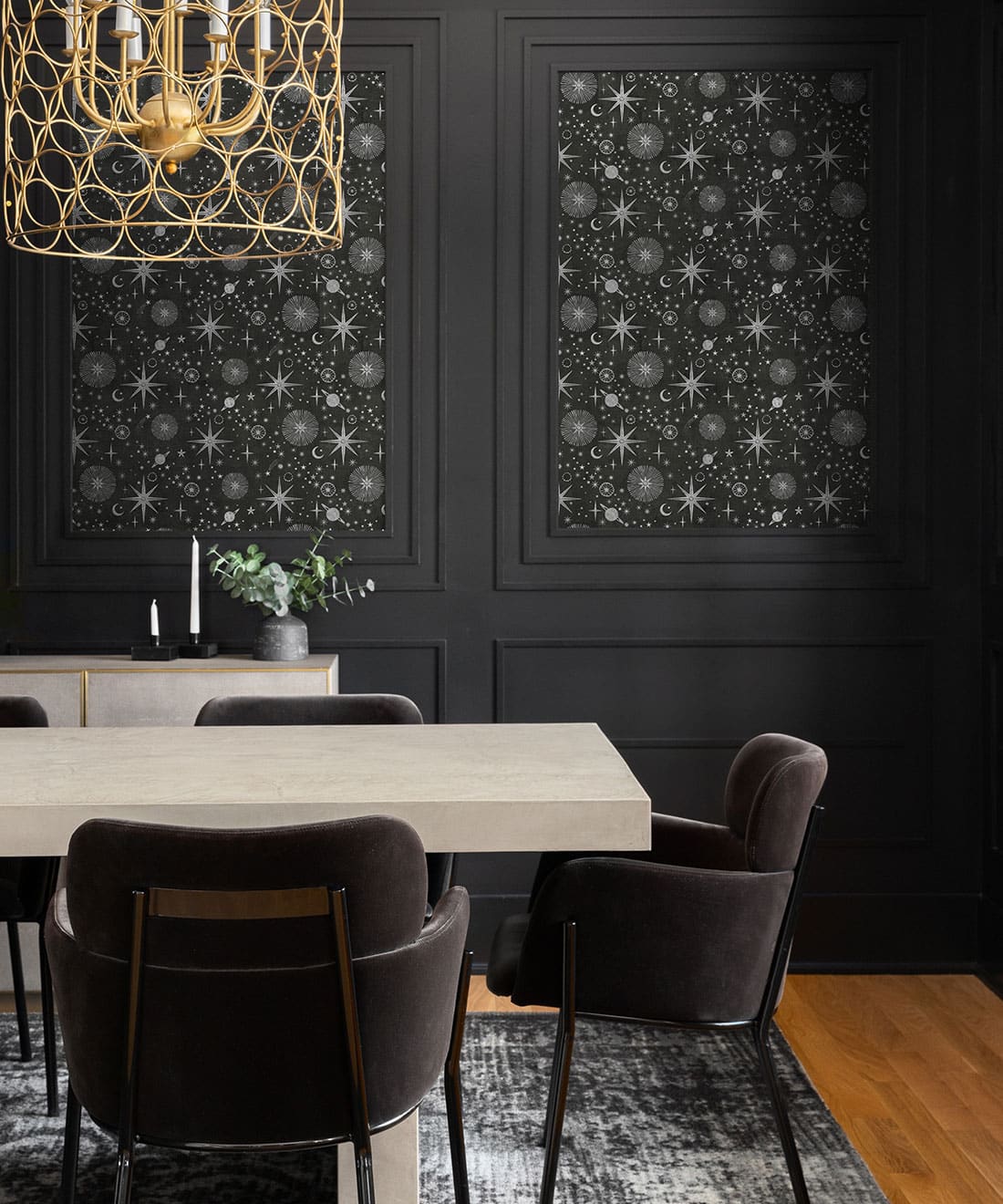 Capture the wonder of a starlit sky with the Milky Way, a celestial design inspired by Bethany Linz’s cherished childhood memories of stargazing. This wallpaper features golden and silver stars delicately scattered across a rich, textured background, evoking the grandeur of stylized abbey ceilings. Perfect for sparking imagination and a sense of serenity, The Milky Way transforms walls into a dreamscape of our galaxy, bringing the magic of the cosmos into your home.