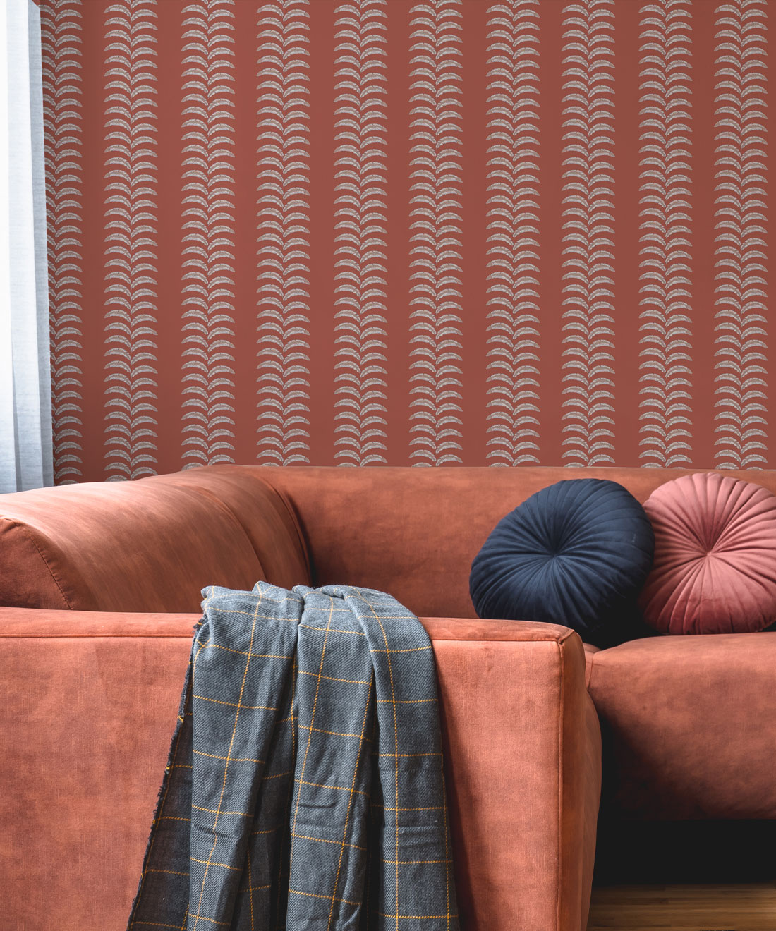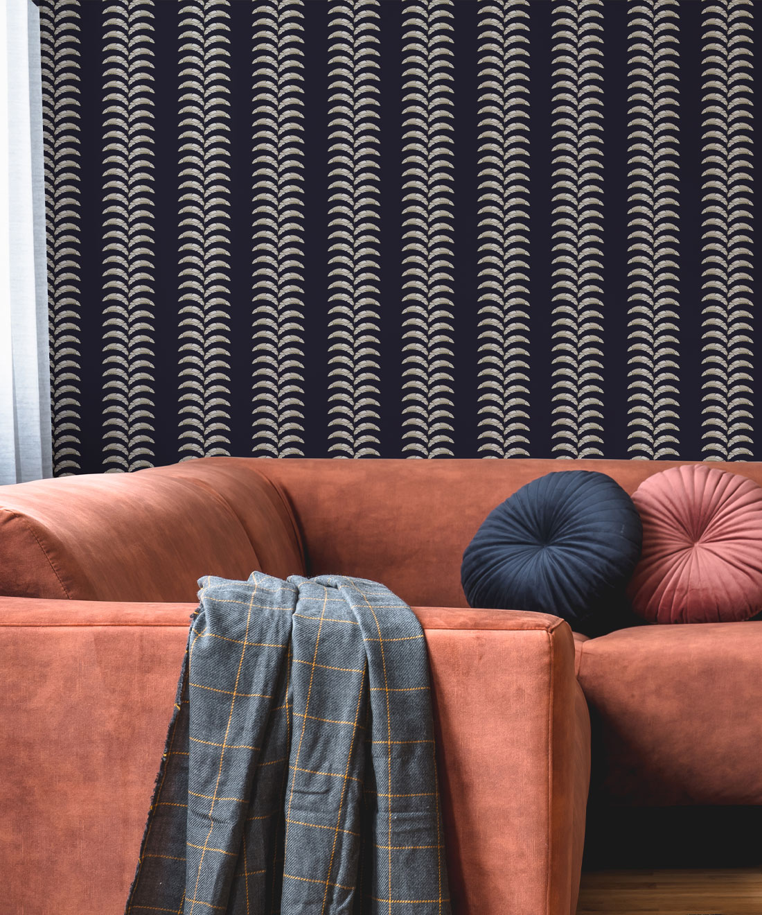 The Travelling Vine wallpaper from Maeve Oliver’s Sabi Sands collection features repeating columns of the iconic fan-shaped leaves from the plant of the same name. The traveller’s palm has long been revered as a symbol of good fortune, peace and protection on journeys. Bring a touch of nature and good luck to your interior with this beautifully simple design, available in five stunning colourways.