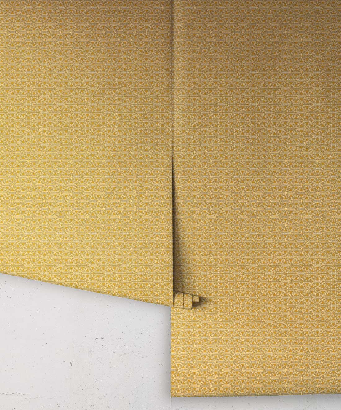 The Triangles wallpaper from Maeve Oliver’s Sabi Sands collection features tessellating white triangles over a range of colored backgrounds that will enhance your interiors without overwhelming the space. Triangles are a symbol of strength, unity and the balance of all things. Add structure and harmony to your interior through the use of one of the world’s most prolific symbols. Available in five colorways to suit a range of interiors.