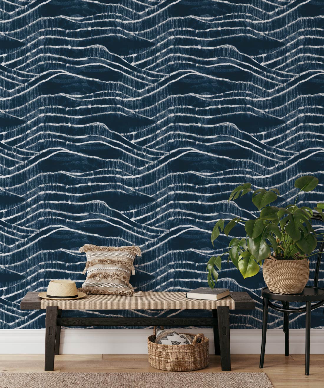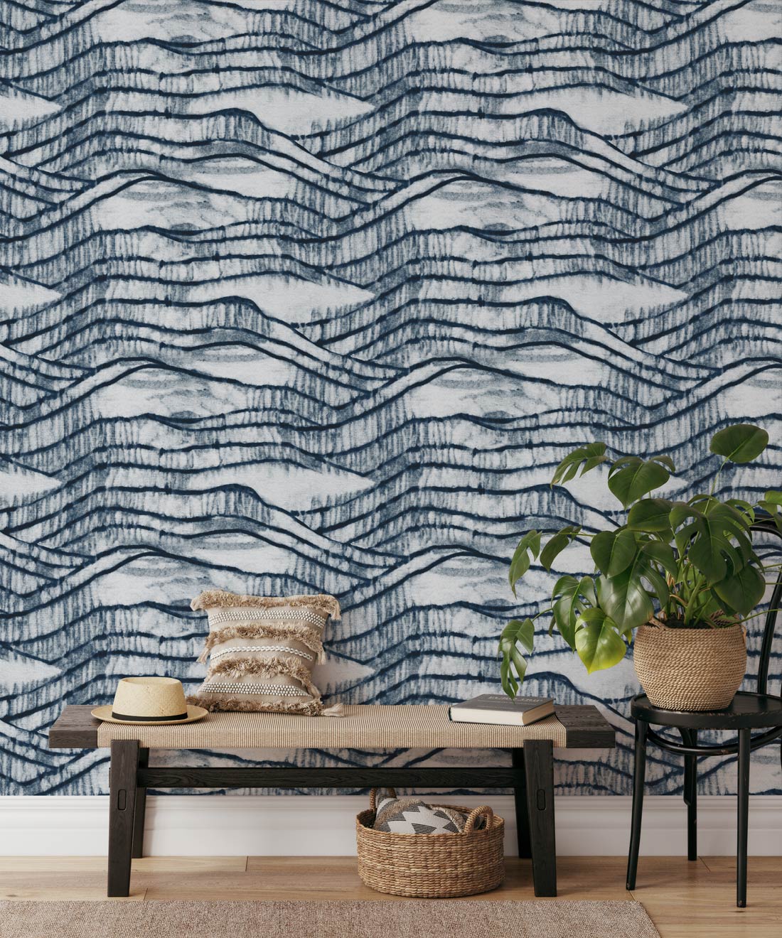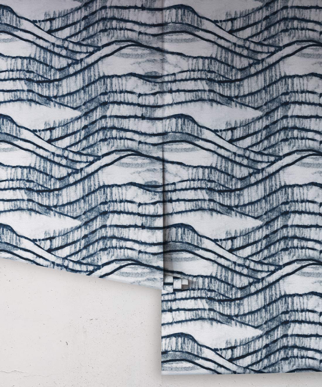 Vista Wallpaper is a tie-dye design that instills charming vision of a rolling mountain view that will weave majestic rhythm into your space. This design would suit both commercial and residential spaces that take inspiration from bohemian and eco-style interior design. Available in a range of natural colorways, Vista combines the free-flowing and imperfect style of Japanese tie-dye with the unparalleled beauty of the natural world.