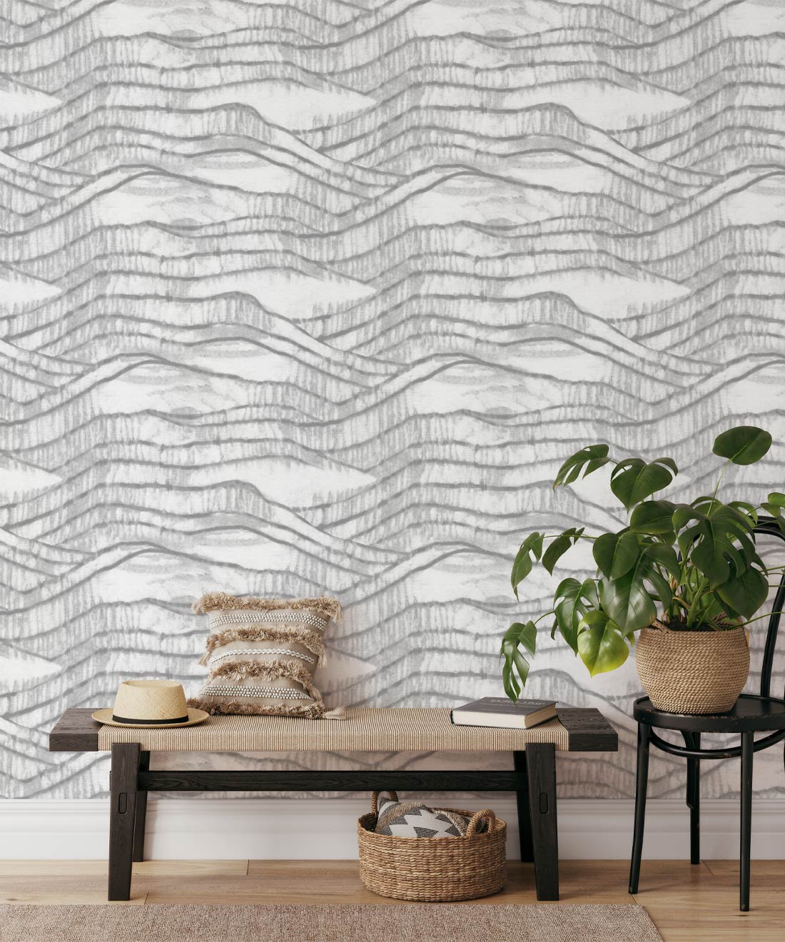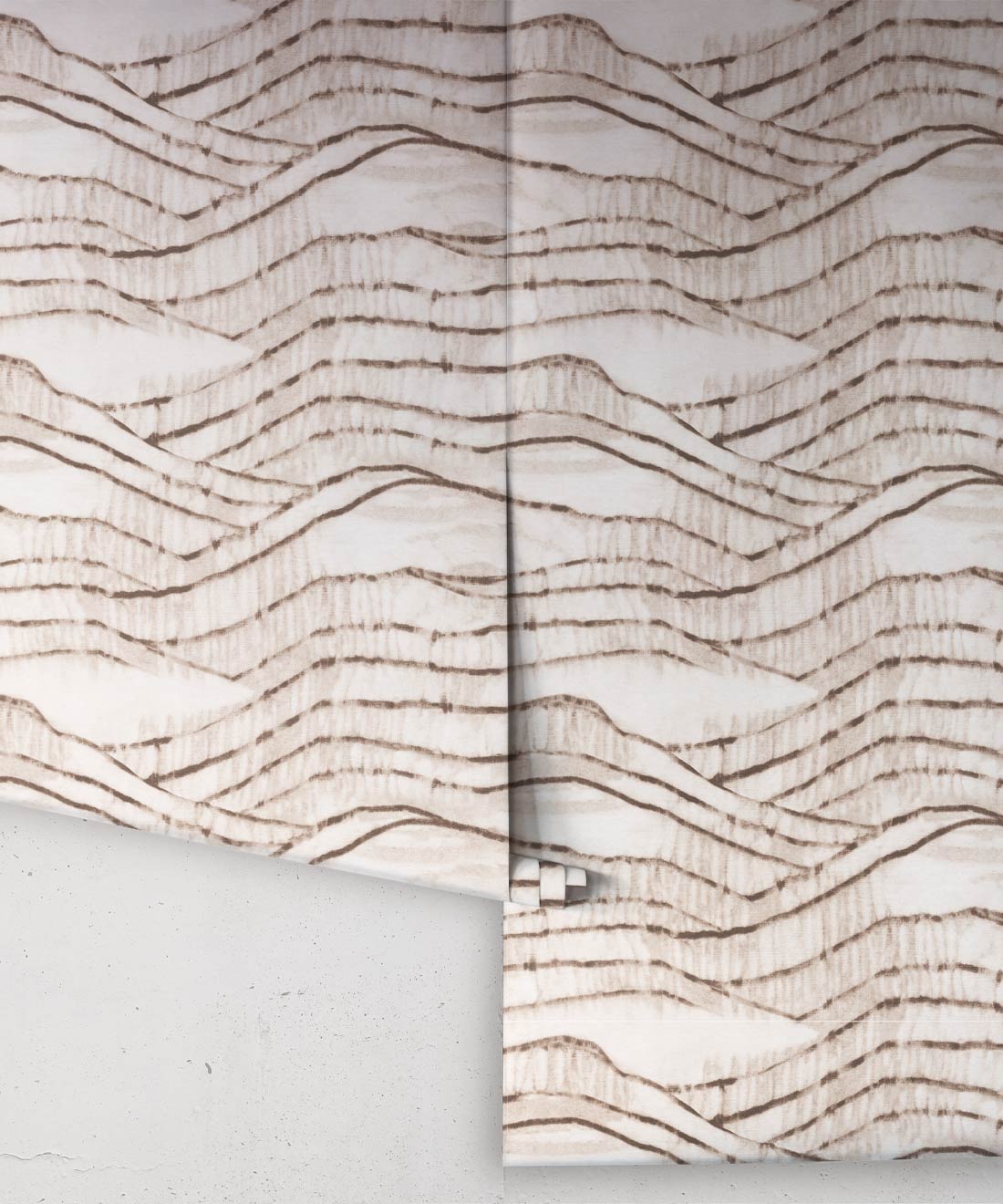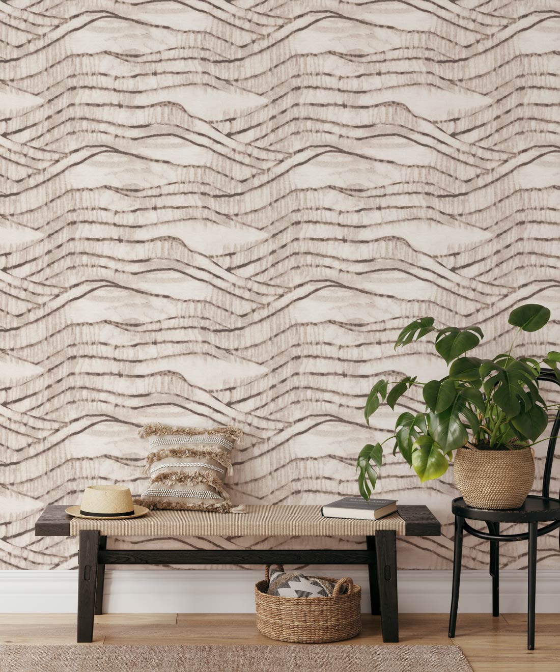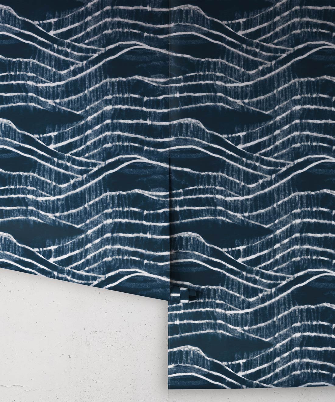 Vista Wallpaper is a tie-dye design that instills charming vision of a rolling mountain view that will weave majestic rhythm into your space. This design would suit both commercial and residential spaces that take inspiration from bohemian and eco-style interior design. Available in a range of natural colorways, Vista combines the free-flowing and imperfect style of Japanese tie-dye with the unparalleled beauty of the natural world.