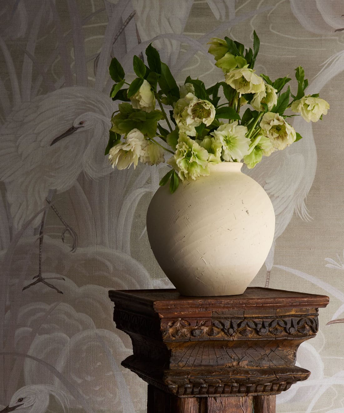 Graceful and serene, Water Birds wallpaper brings the elegance of Sydney’s native birdlife into your home. Inspired by Bethany Linz’s daily walks along the harbor, this design celebrates the quiet beauty of egrets and herons as they wade through tranquil waters. Rooted in the timeless tradition of Chinese and Japanese screen painting, Water Birds blends delicate artistry with a modern sensibility. Its gentle palette and flowing composition make it ideal for spaces that call for calm sophistication and a connection to nature.