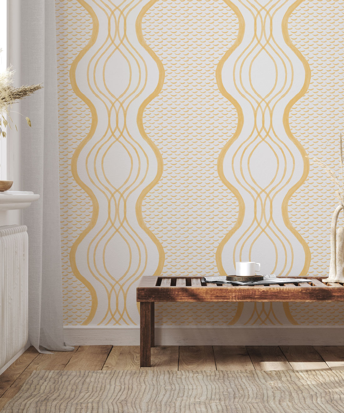 The Wavy Lines wallpaper design is a true classic, with its timeless appeal and harmonious composition. Originally painted in watercolor, this design from artist Allira Tee features combinations of rich and muted colors that create a soothing and calming effect. This wallpaper is a great choice for rooms that could use a little energy and movement, like bedrooms, living spaces and playrooms. Part of the Ethereal collection, this design is inspired by the simplicity and elegance of the natural world.