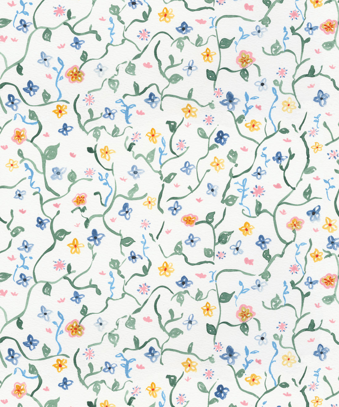 This pretty print is the result of an original watercolor illustration by Dubai based Australian artist and textile designer Georgia Macmillan. Wild Garden was inspired by a Spring holiday in the South West of France where wild flowers were blossoming and the abundance of color could be seen throughout the countryside. A fanciful and joyous print of flowers, vines and leaves, it uplifts even the darkest of rooms.