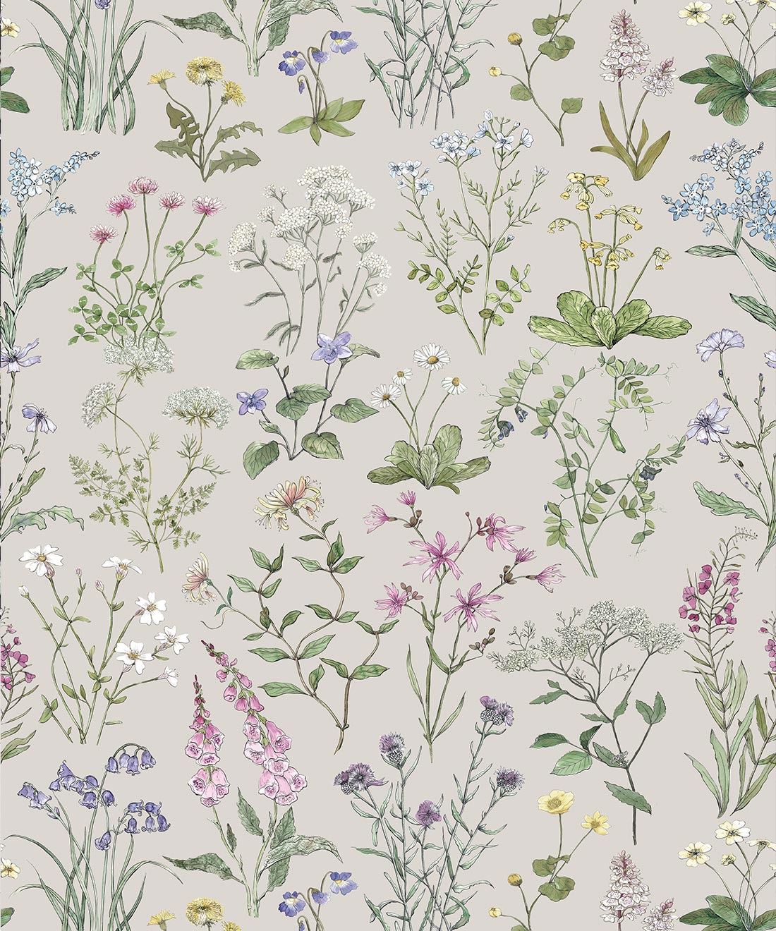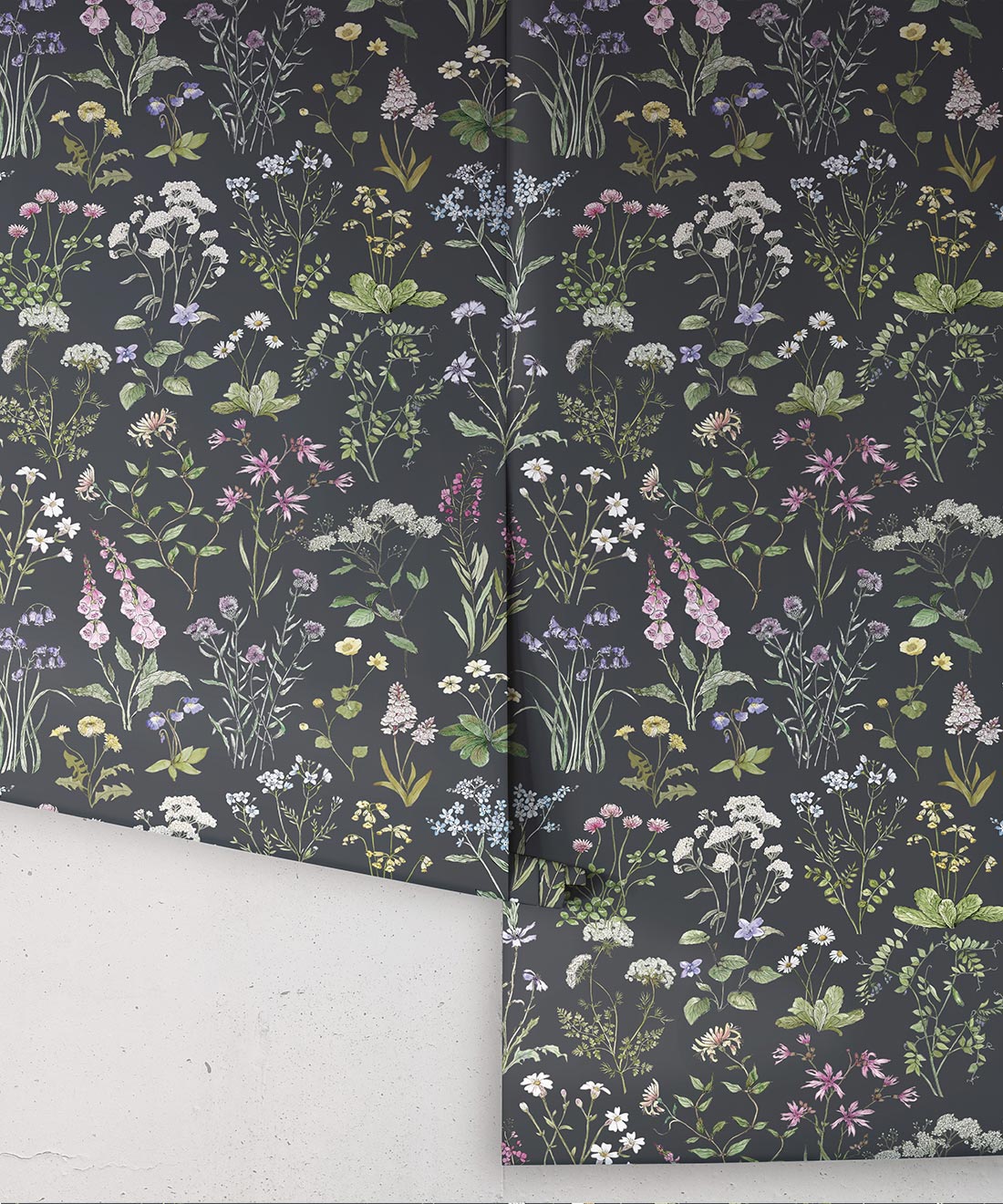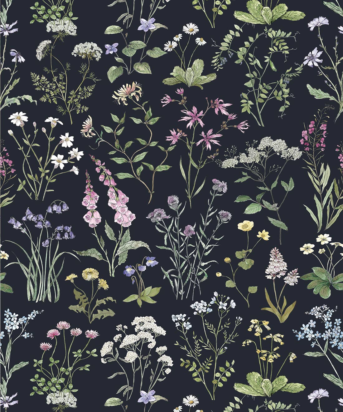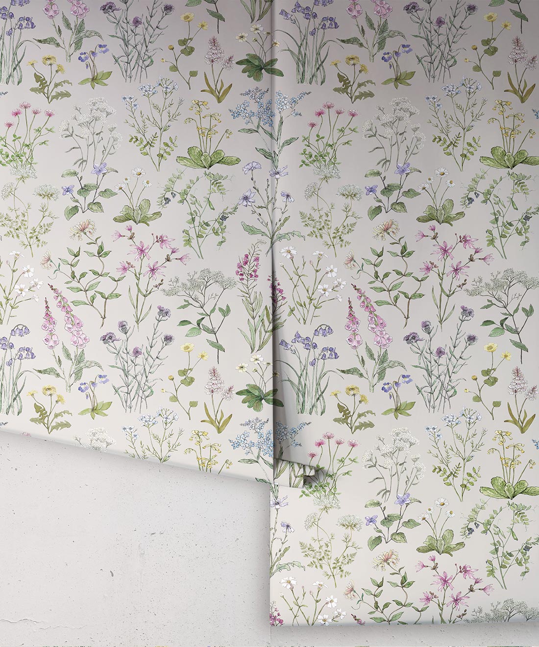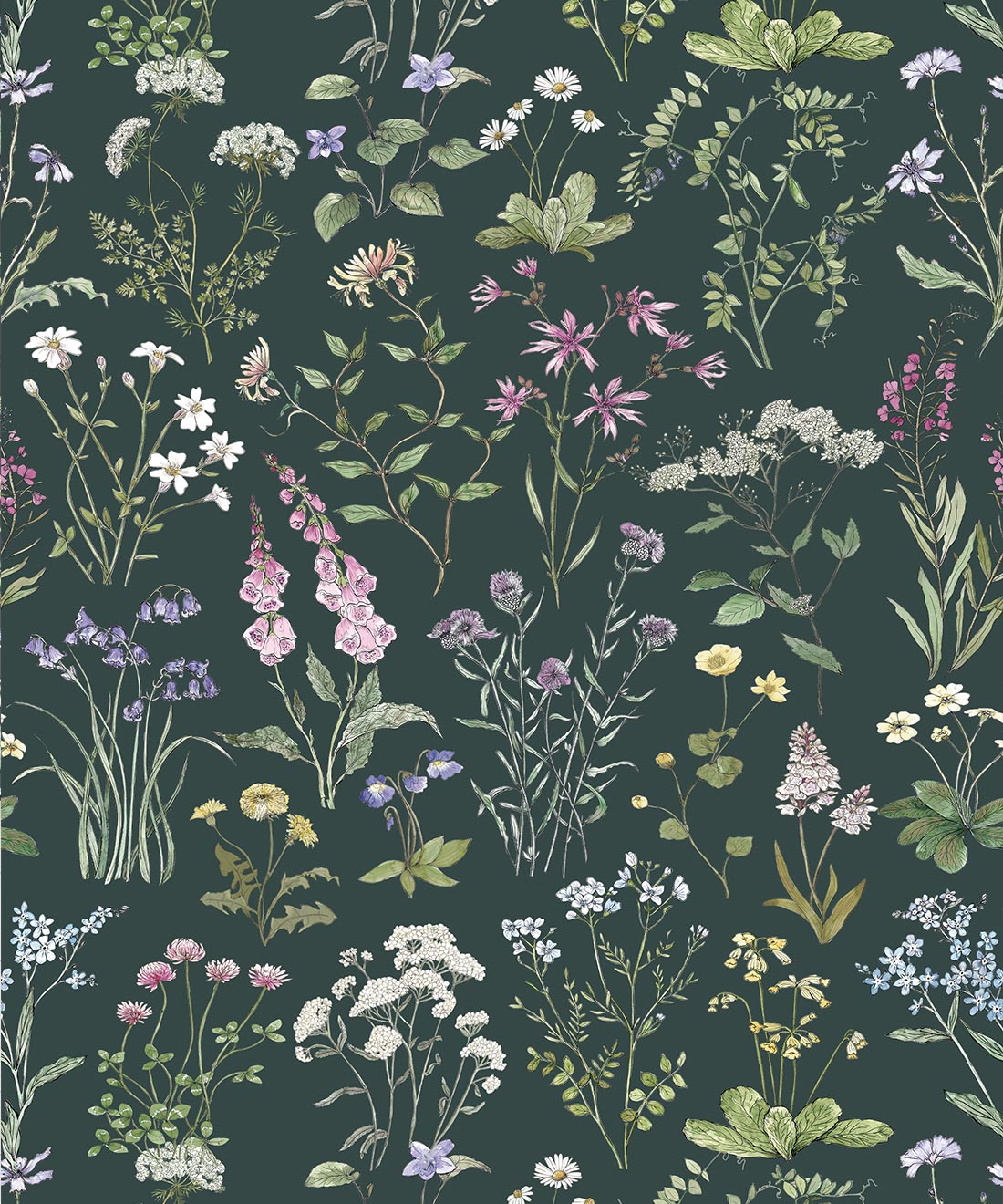 Outdoor afternoons and the essence of summer are perfectly captured in the Wild Meadow botanical wallpaper. This design captures the untamed beauty of a sun-kissed meadow in full bloom, bringing the whimsical charm of the season into any space. Each delicately illustrated flower, from the simple daisies to the graceful bluebells and towering foxgloves, sweet honeysuckle and the sun filled dandelions dances across the wallpaper, creating a tapestry of nature’s most exquisite flowers. The lush greenery intertwines with bursts of lively hues, embodying the spirit of a carefree summer day. Each wild flower is meticulously hand painted and creates an atmosphere the celebrates the magic of summer all year round.