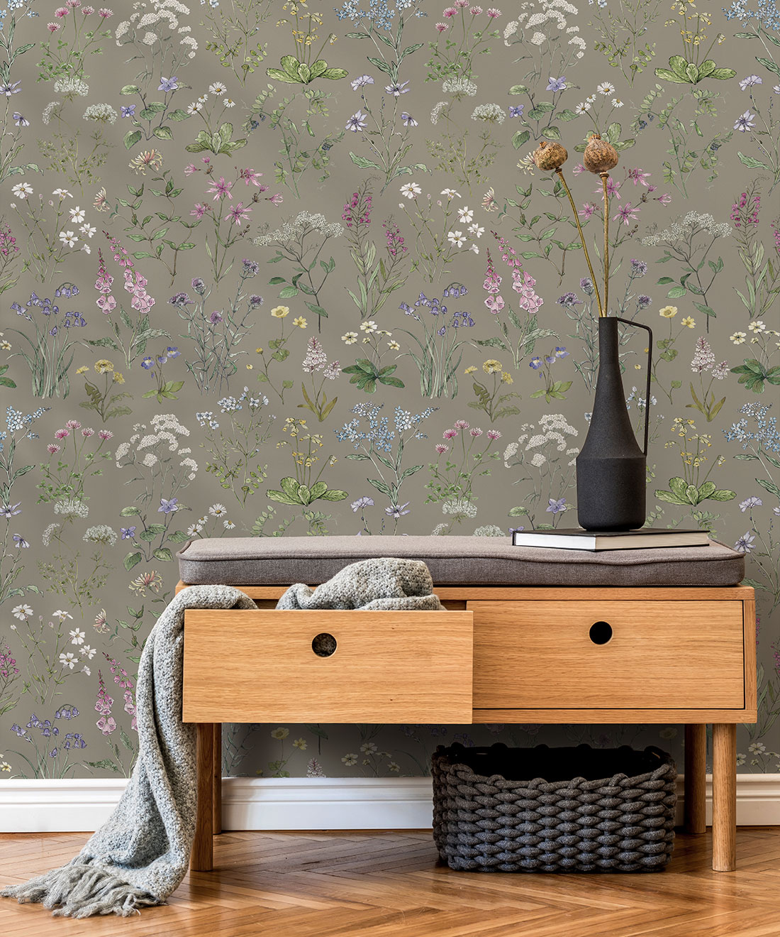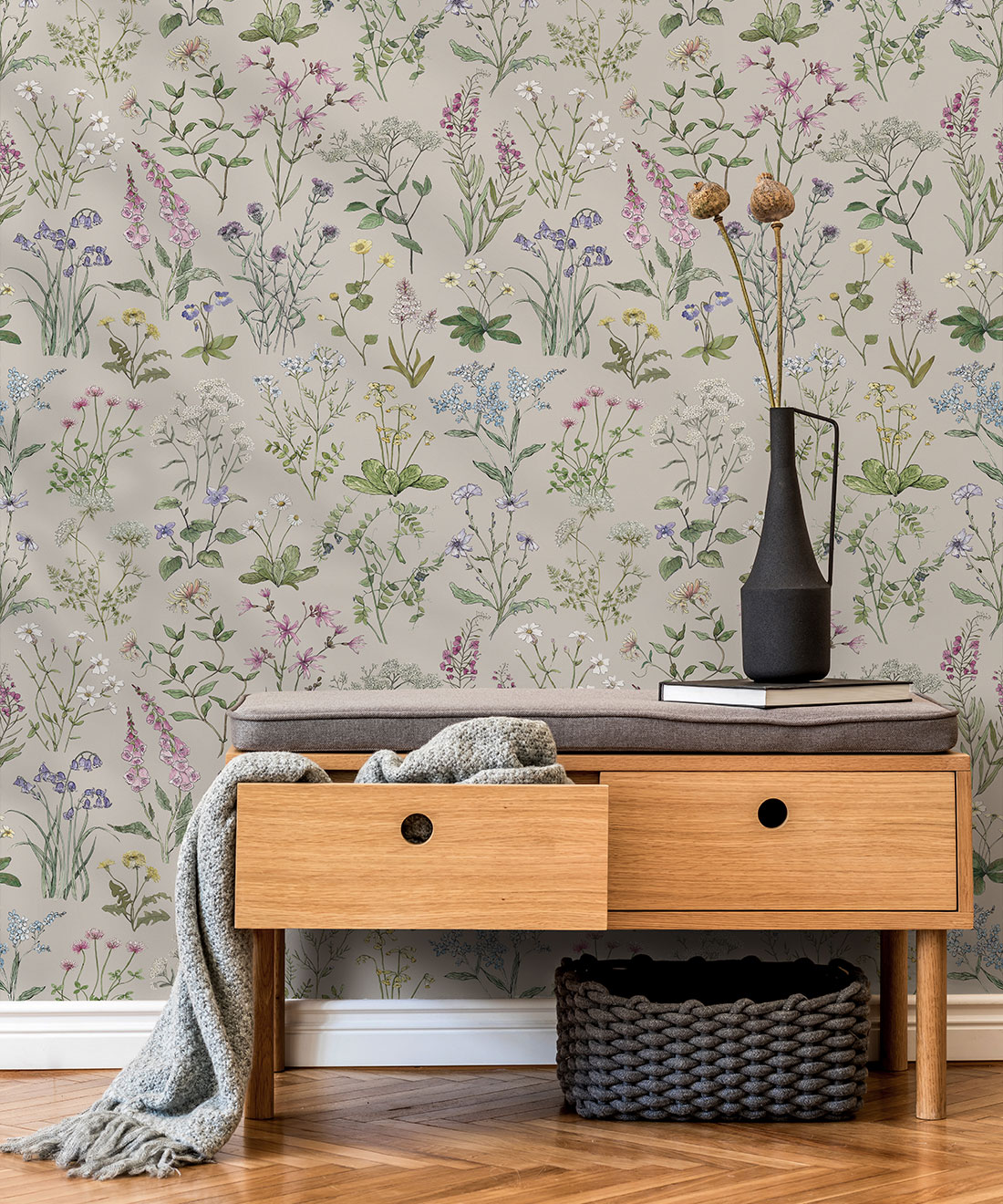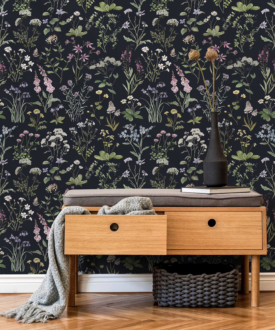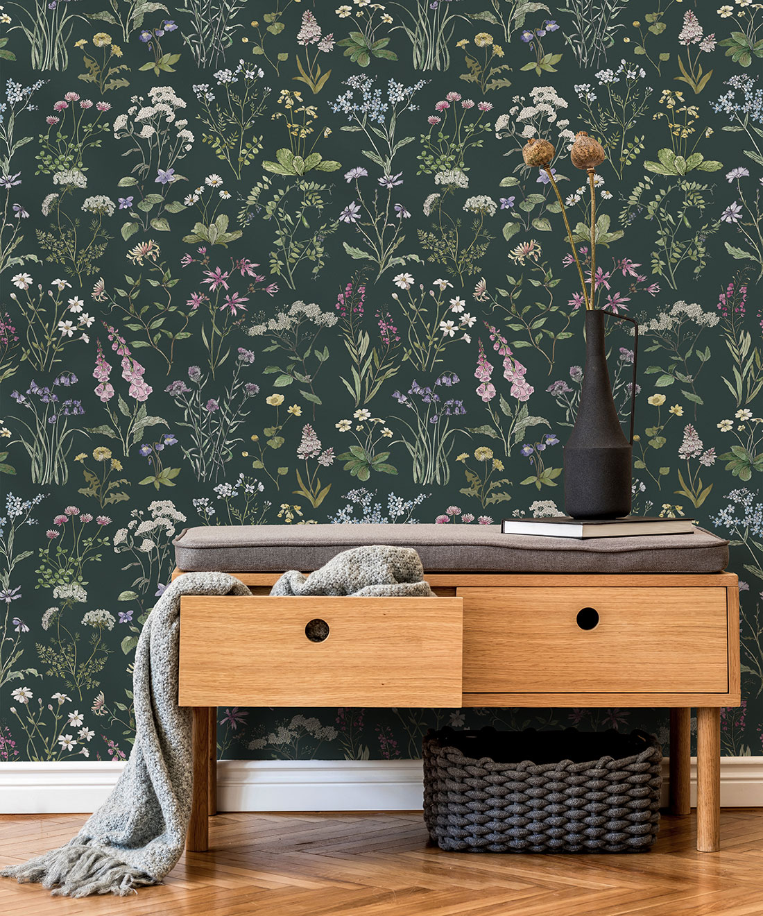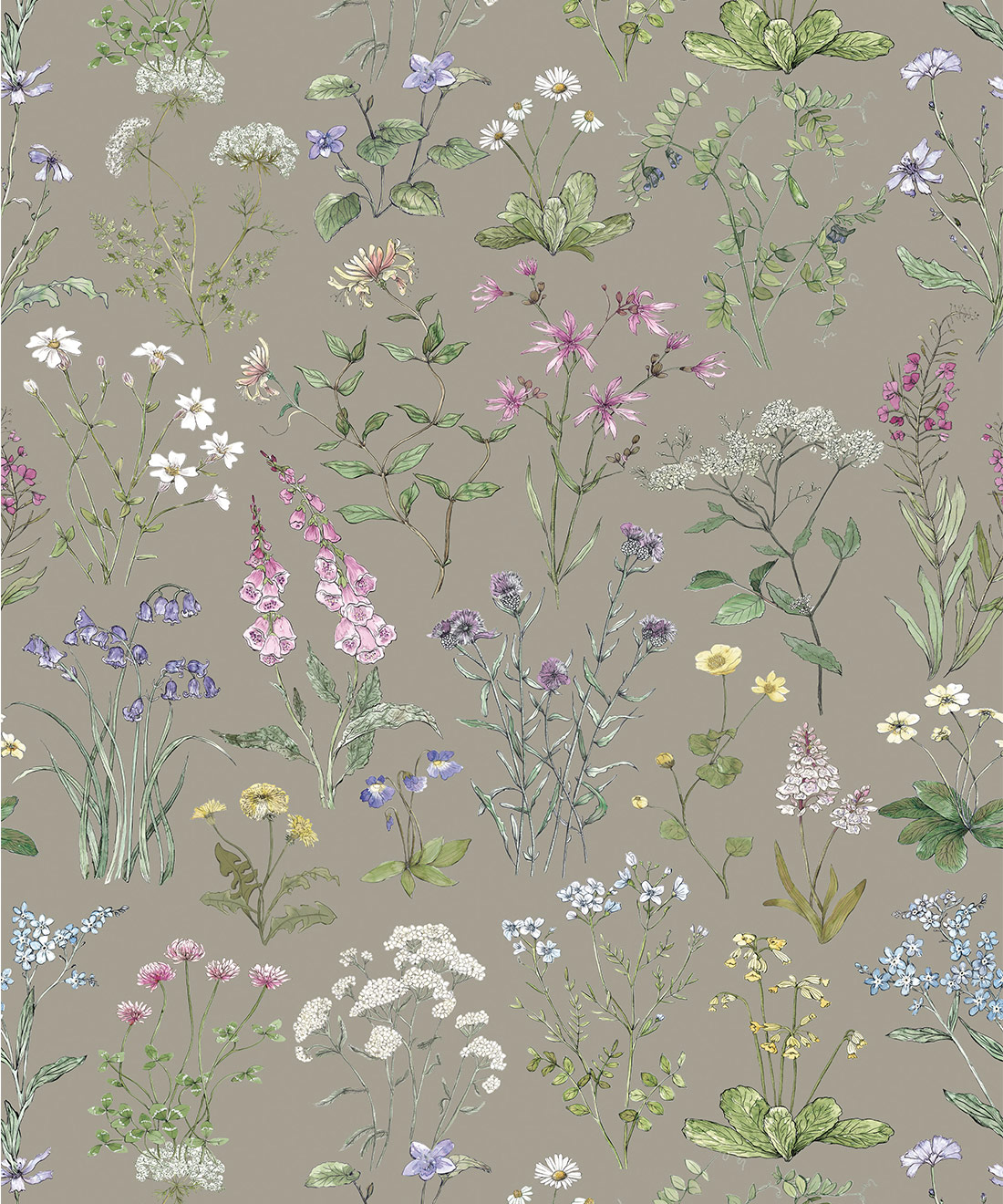 Outdoor afternoons and the essence of summer are perfectly captured in the Wild Meadow botanical wallpaper. This design captures the untamed beauty of a sun-kissed meadow in full bloom, bringing the whimsical charm of the season into any space. Each delicately illustrated flower, from the simple daisies to the graceful bluebells and towering foxgloves, sweet honeysuckle and the sun filled dandelions dances across the wallpaper, creating a tapestry of nature’s most exquisite flowers. The lush greenery intertwines with bursts of lively hues, embodying the spirit of a carefree summer day. Each wild flower is meticulously hand painted and creates an atmosphere the celebrates the magic of summer all year round.