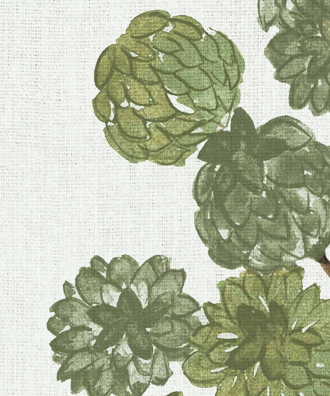 Printed on decorative textile, the design takes on a soft tactile quality that echoes the look of embroidered fabric. This layered finish brings richness and depth to the wall while celebrating the decorative traditions of heritage craft.