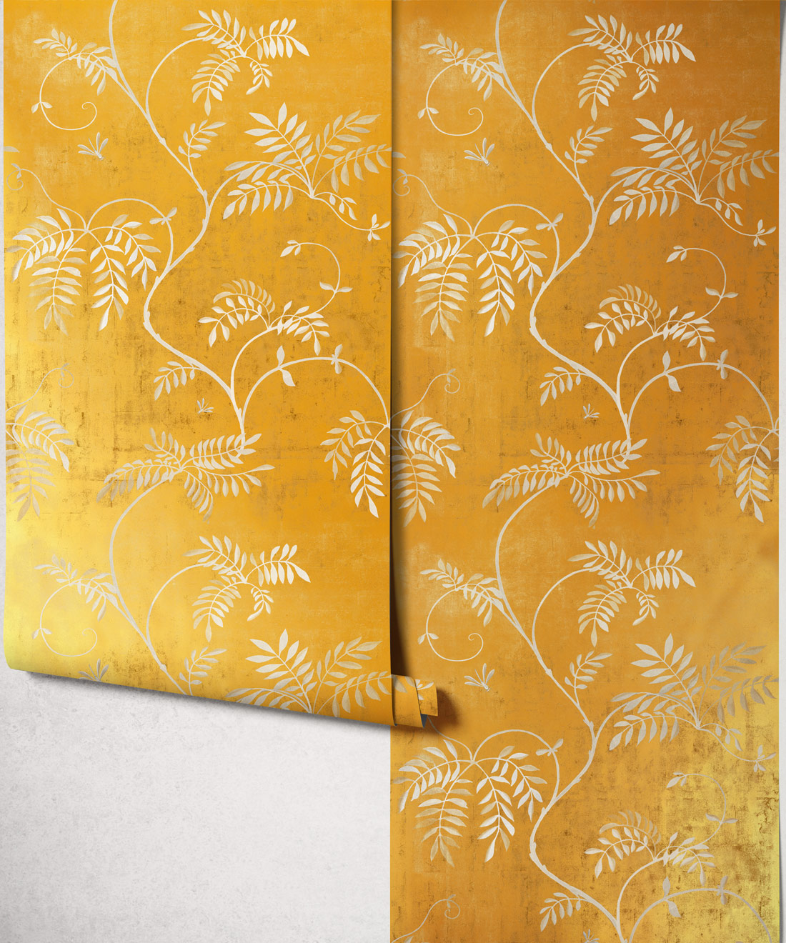 A love letter to a classic floral favourite, Wisteria Vine celebrates the understated beauty of nature and the timeless allure of traditional chinoiserie. Inspired by designer Bethany Linz’s wisteria vine that flourished without flowering, this design captures the graceful flow of its leaves and branches. Subtle gold metallic accents bring warmth and depth, creating a calm and elegant backdrop for interiors that balance tradition and modernity.