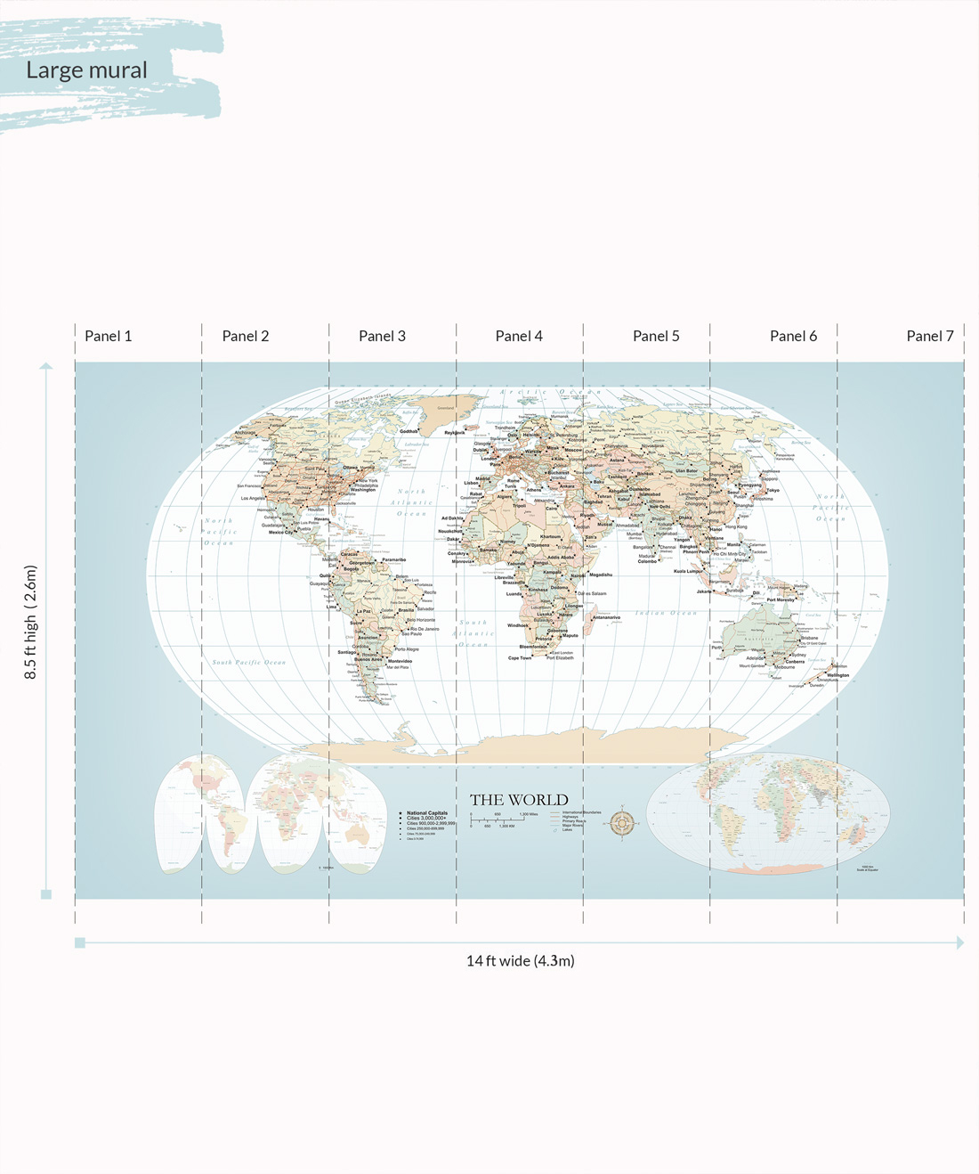 It’s a big wide world out there! This world map mural is a must have for any budding explorer or traveler wishing to mark on a map the destinations they have traveled or those they are yet to see. Perfect for a home office, commercial office or a kids playroom. What better way to explore the world around you.